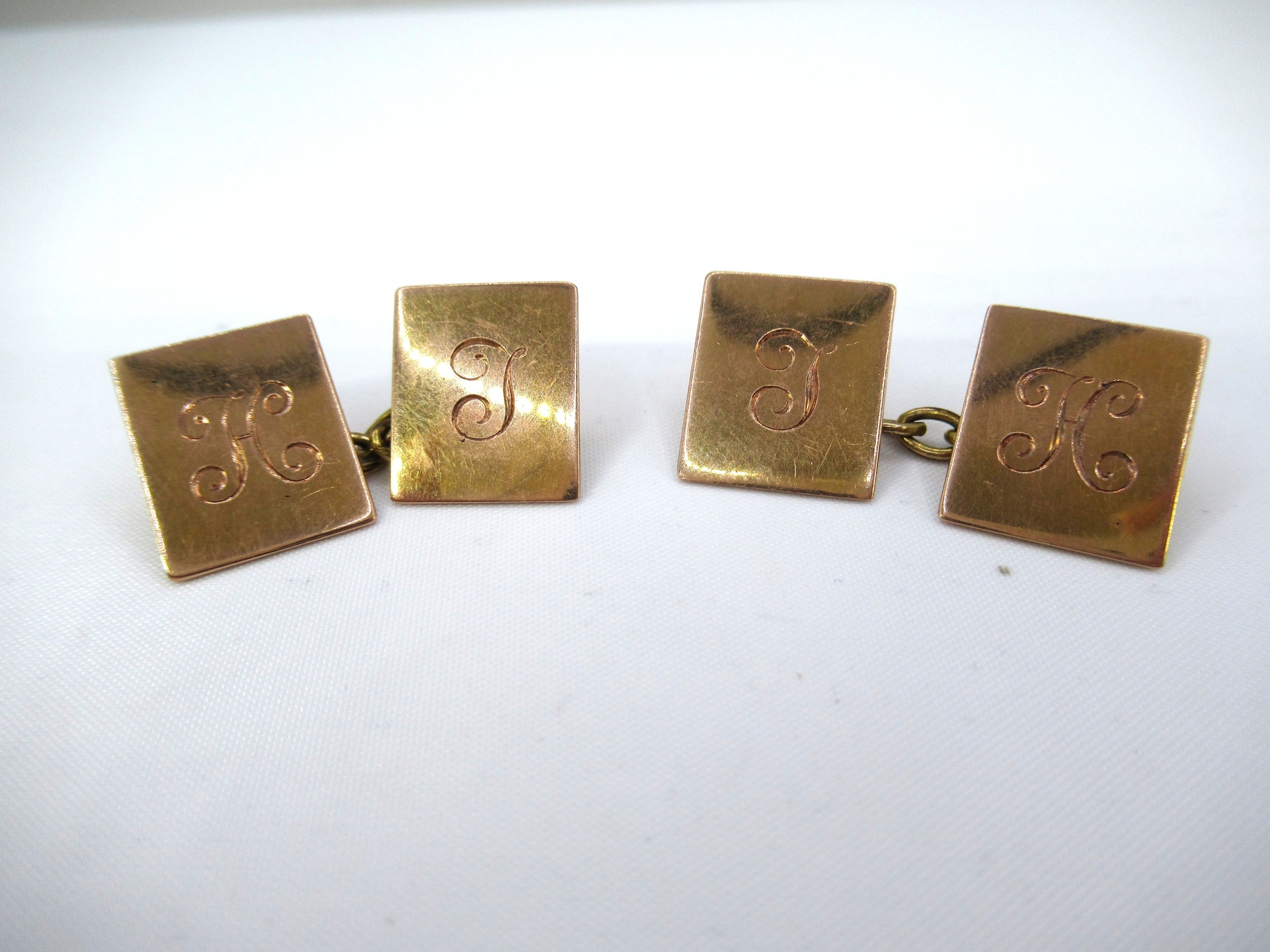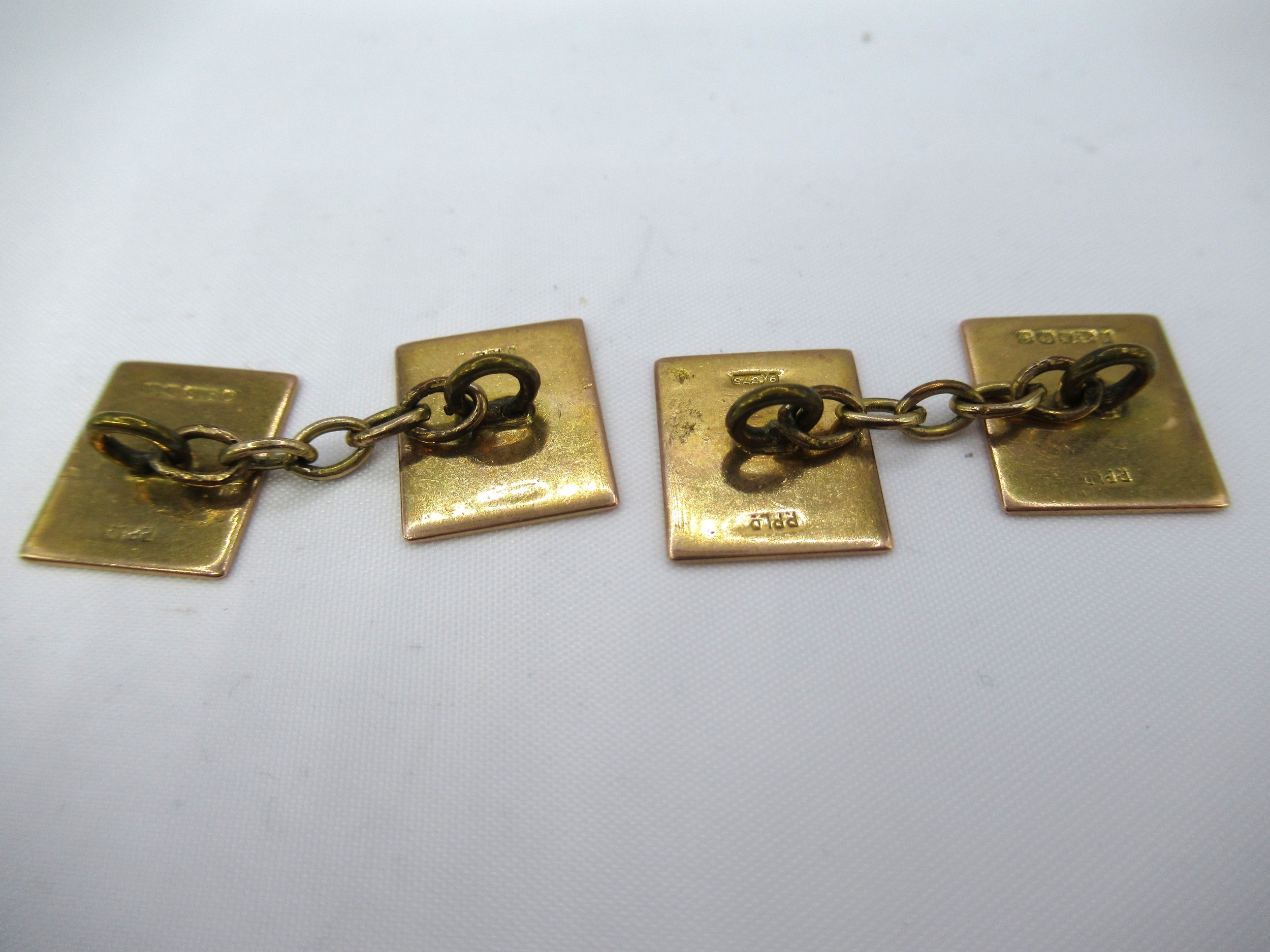 Pair of square 9ct gold engraved cufflinks, 6.5g