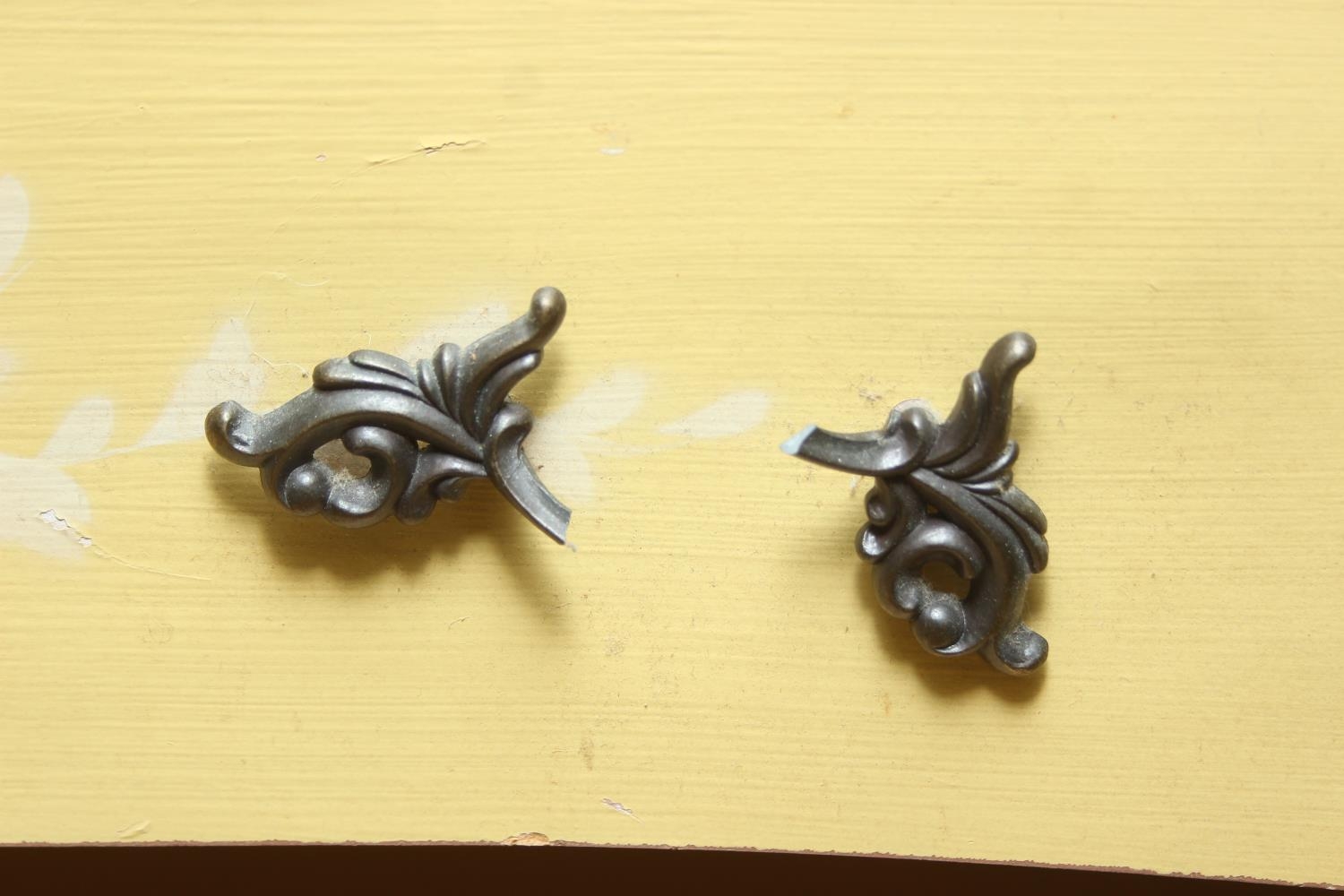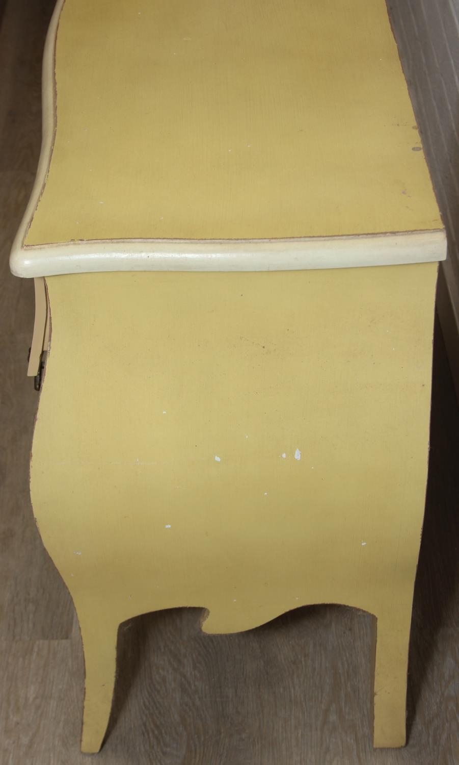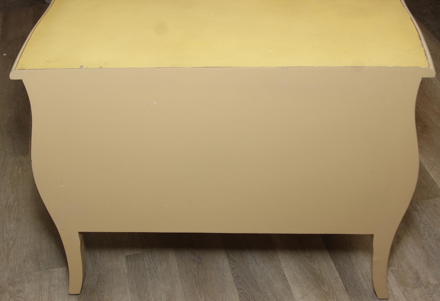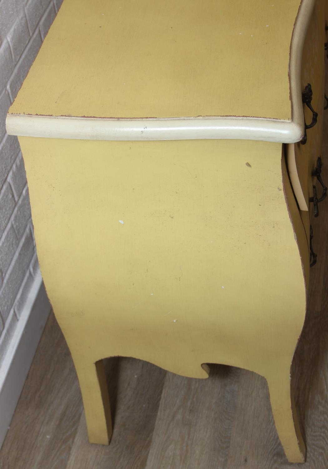 A vintage French style yellow painted three drawer chest of drawers with white painted flowers, 90cm x 41cm x 78cm