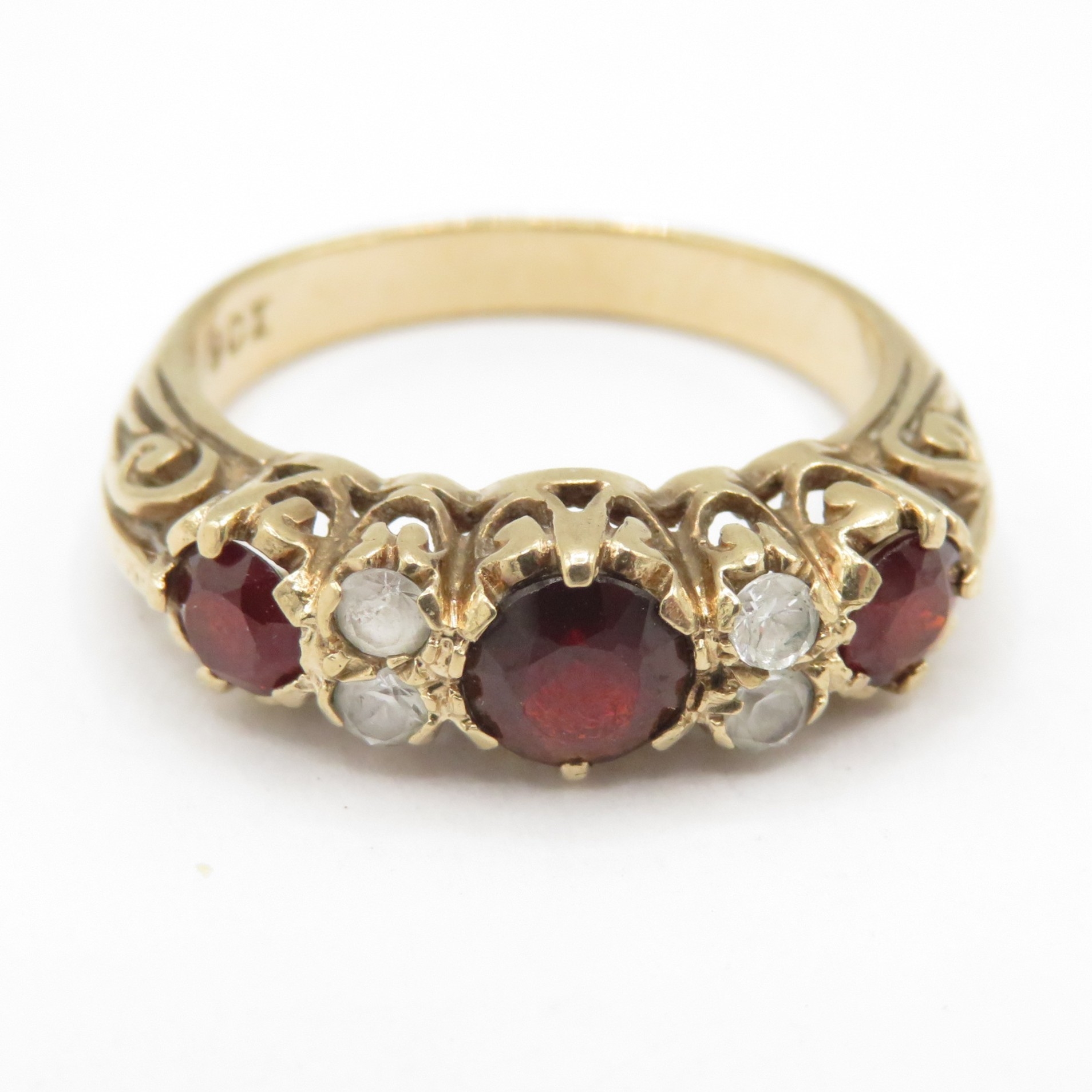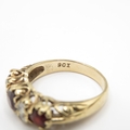 9ct gold garnet and white gemstone boat ring (3.9g) size P