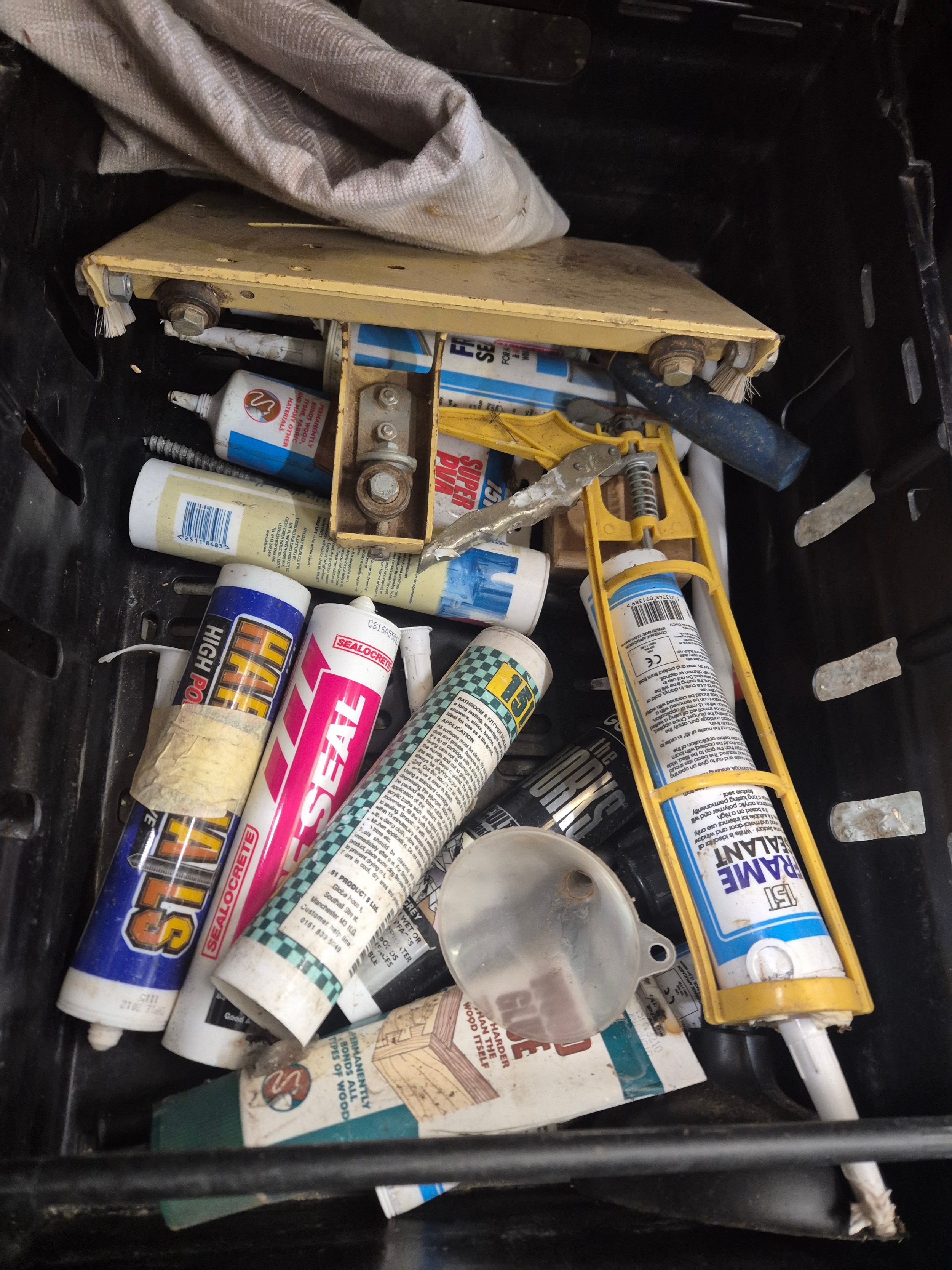 Tray of sealant, adhesive and accessories (crate not included please bring a box)