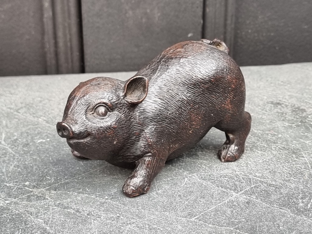 A bronze piglet, 12cm long.
