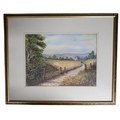 A lovely 20th Century Watercolour with Birds in full Flight by Joan Holt, depiction "Path through a Corn Field" signed LR.
