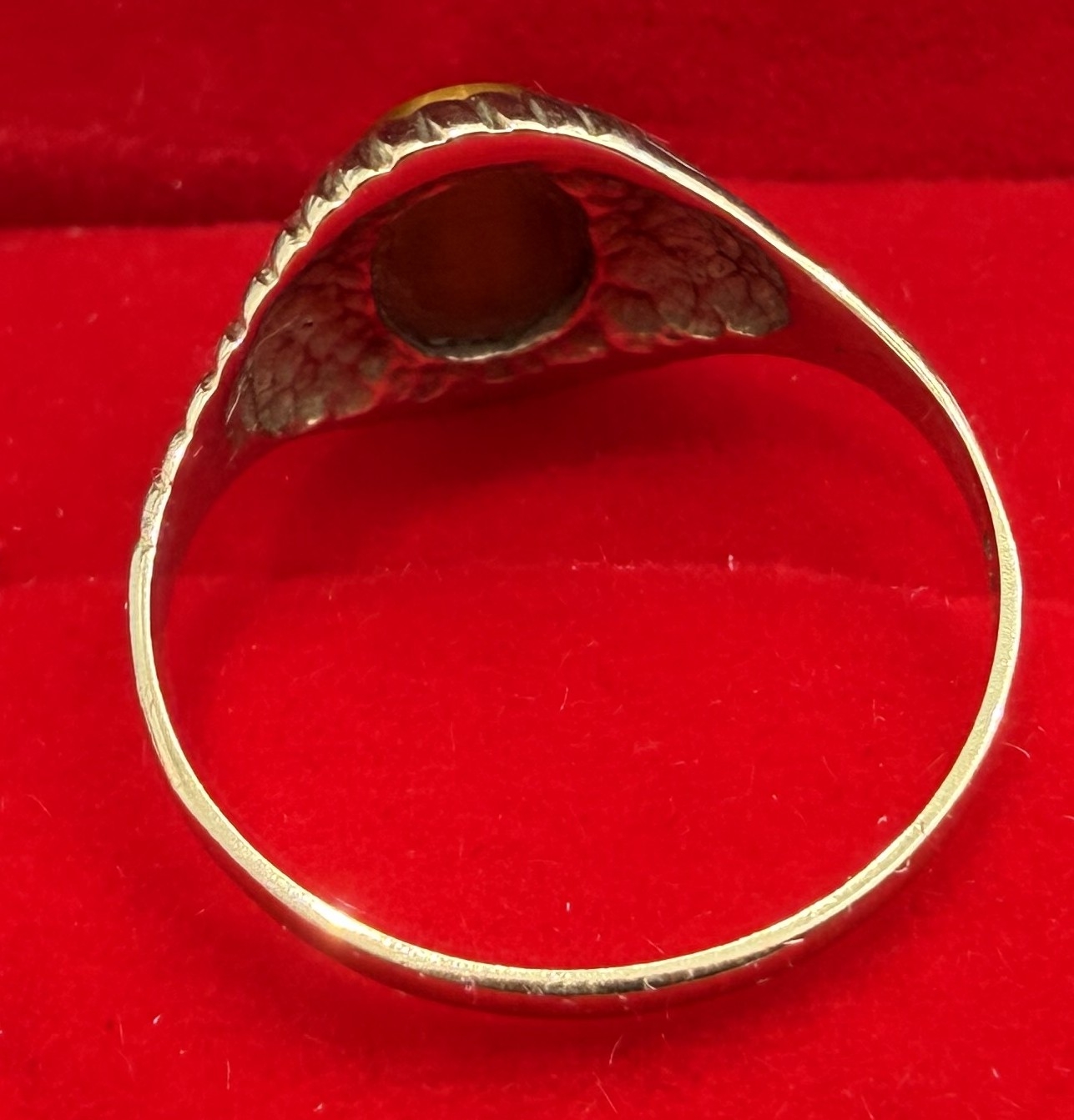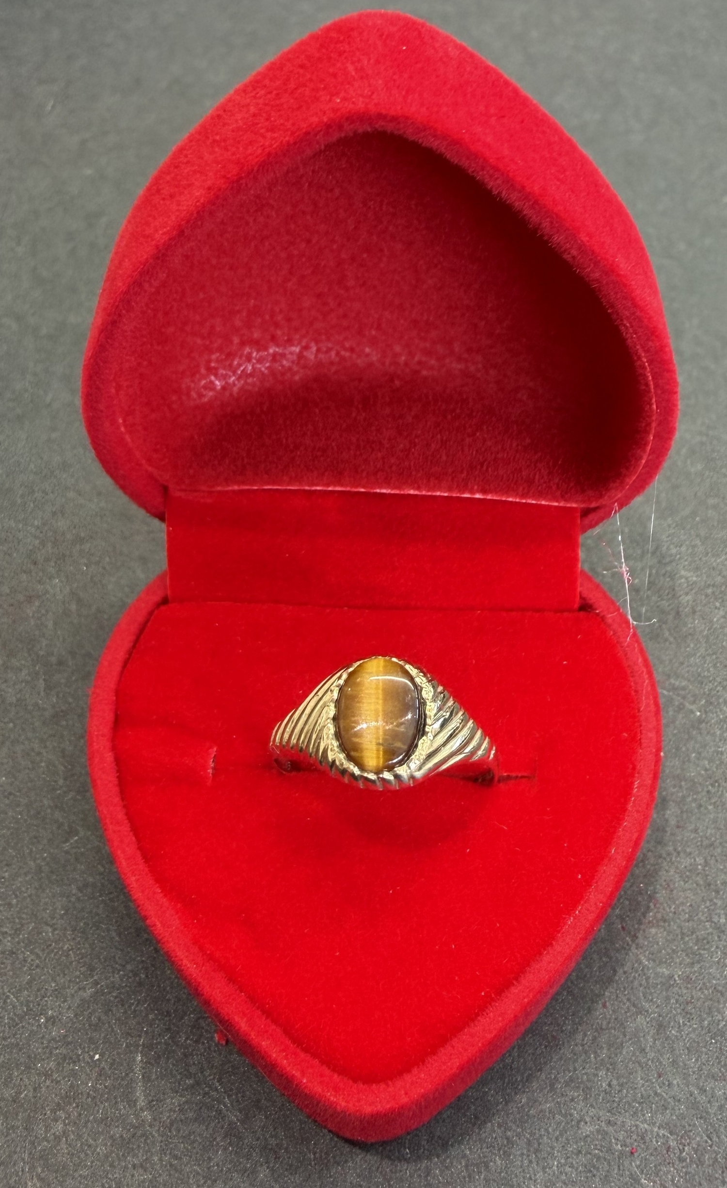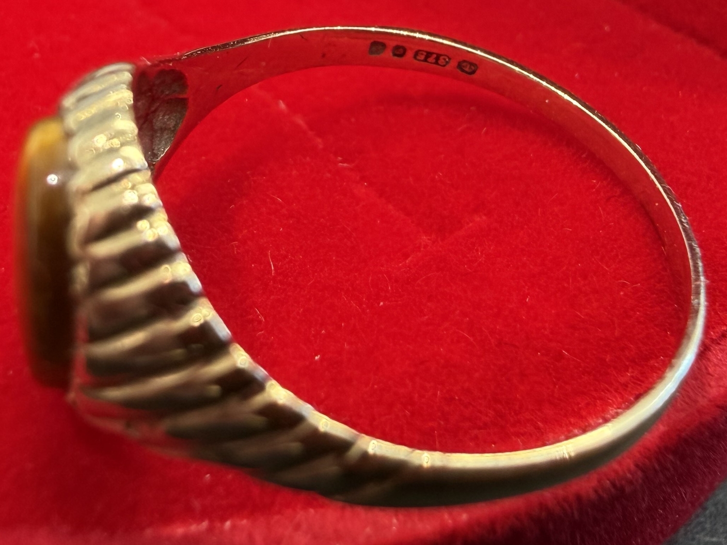 Jewellery: Small 9ct Gold clear English hallmark with single brown "tigers eye" stone 1.36g Size K-L PLEASE MAKE SURE YOU READ TERMS AND CONDITIONS REGARDS PAYMENT OPTIONS, CARD NOT PRESENT TRANSACTIONS NOT ACCEPTED ON GOLD JEWELLERY OR WATCHES.