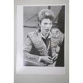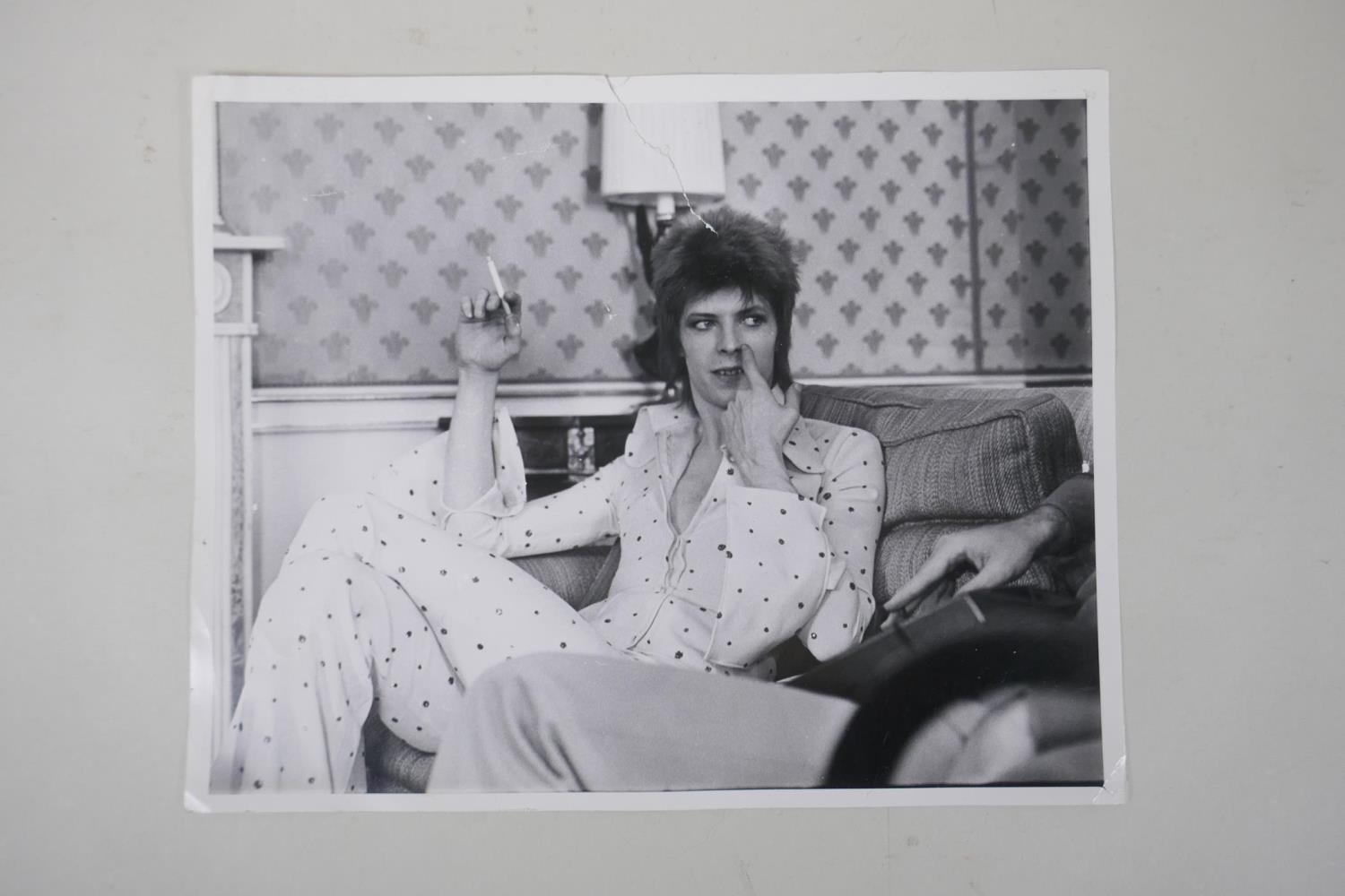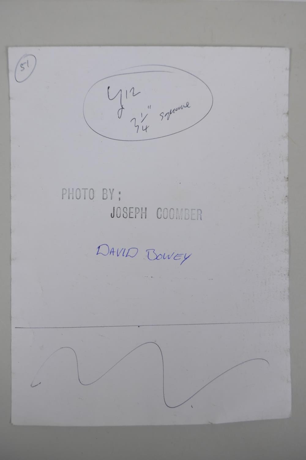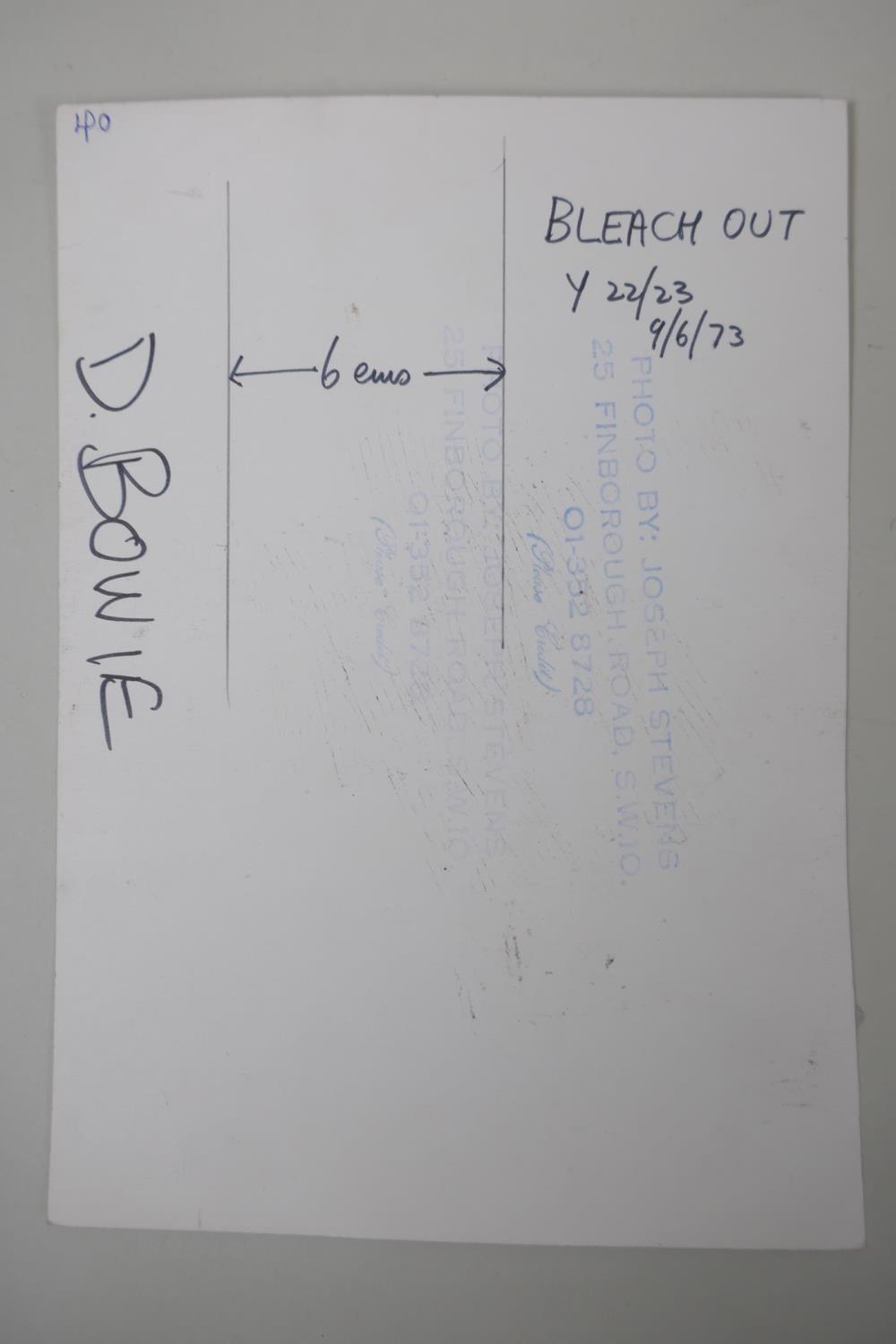 Three 1970s black and white press photographs of David Bowie, with photographer's stamps verso for Joseph Coomber and Joseph Stevens, and a David Bowie RCA Records publicity photo, largest 24 x 19cm