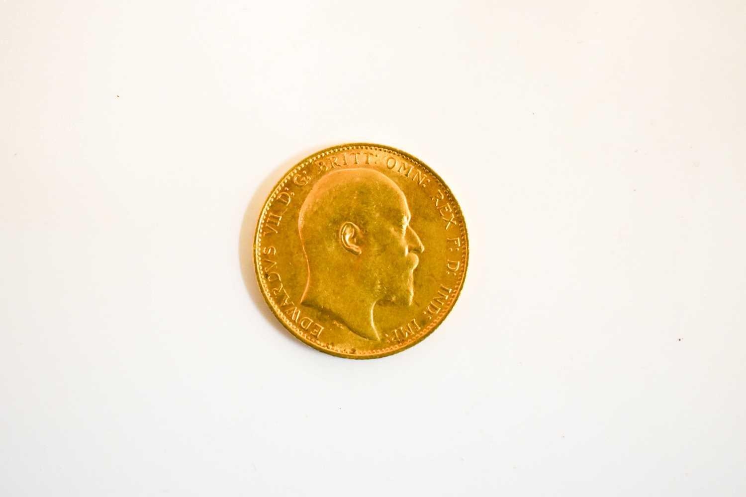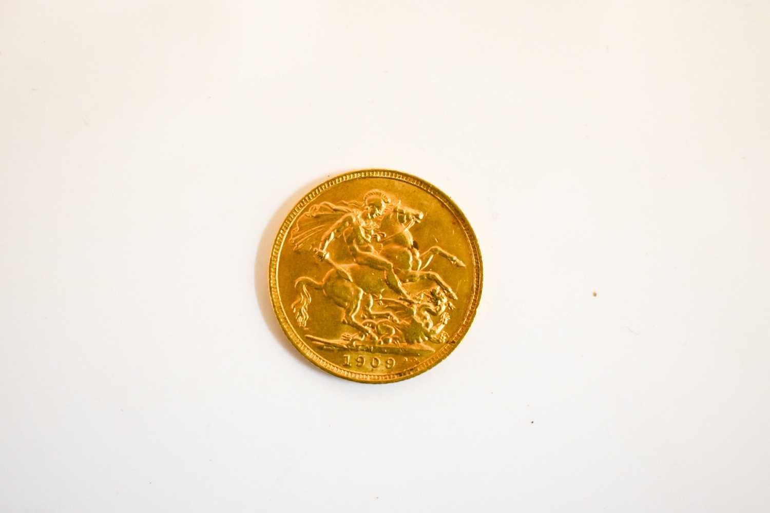 An Edward VII full gold sovereign dated 1909 and with Melbourne mint mark.
