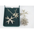 A group of silver jewellery including filigree brooch, star form filigree necklace pendant, and a pair of marcasite set brooches.