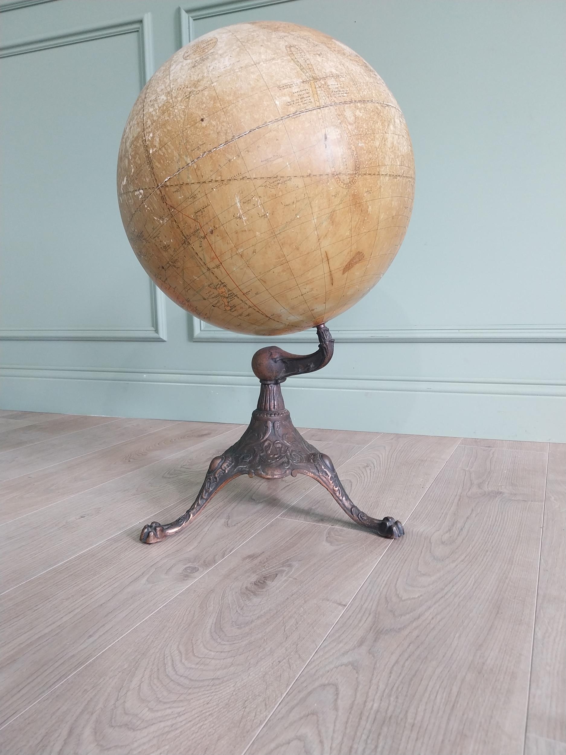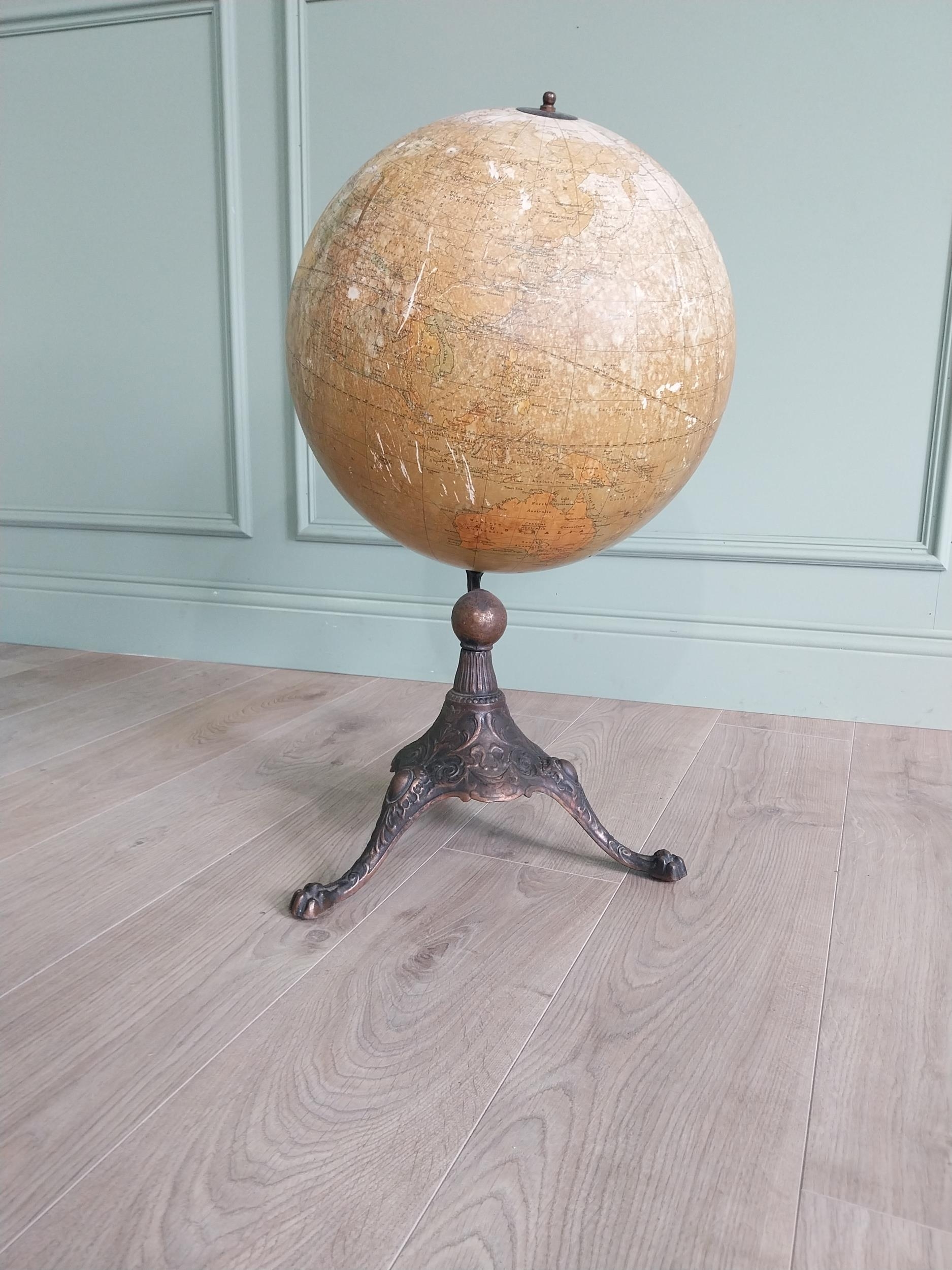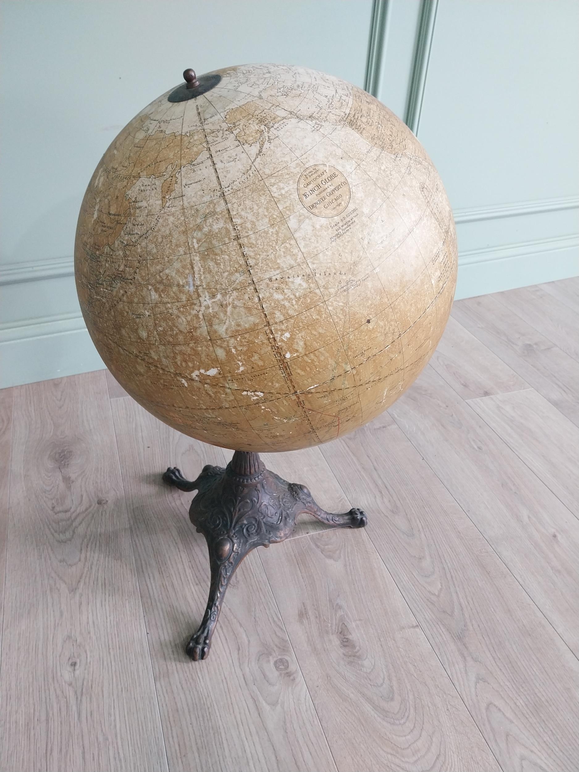 Early 20th C. world globe on decorative cast iron stand {72 cm H x 40 cm Dia.}.