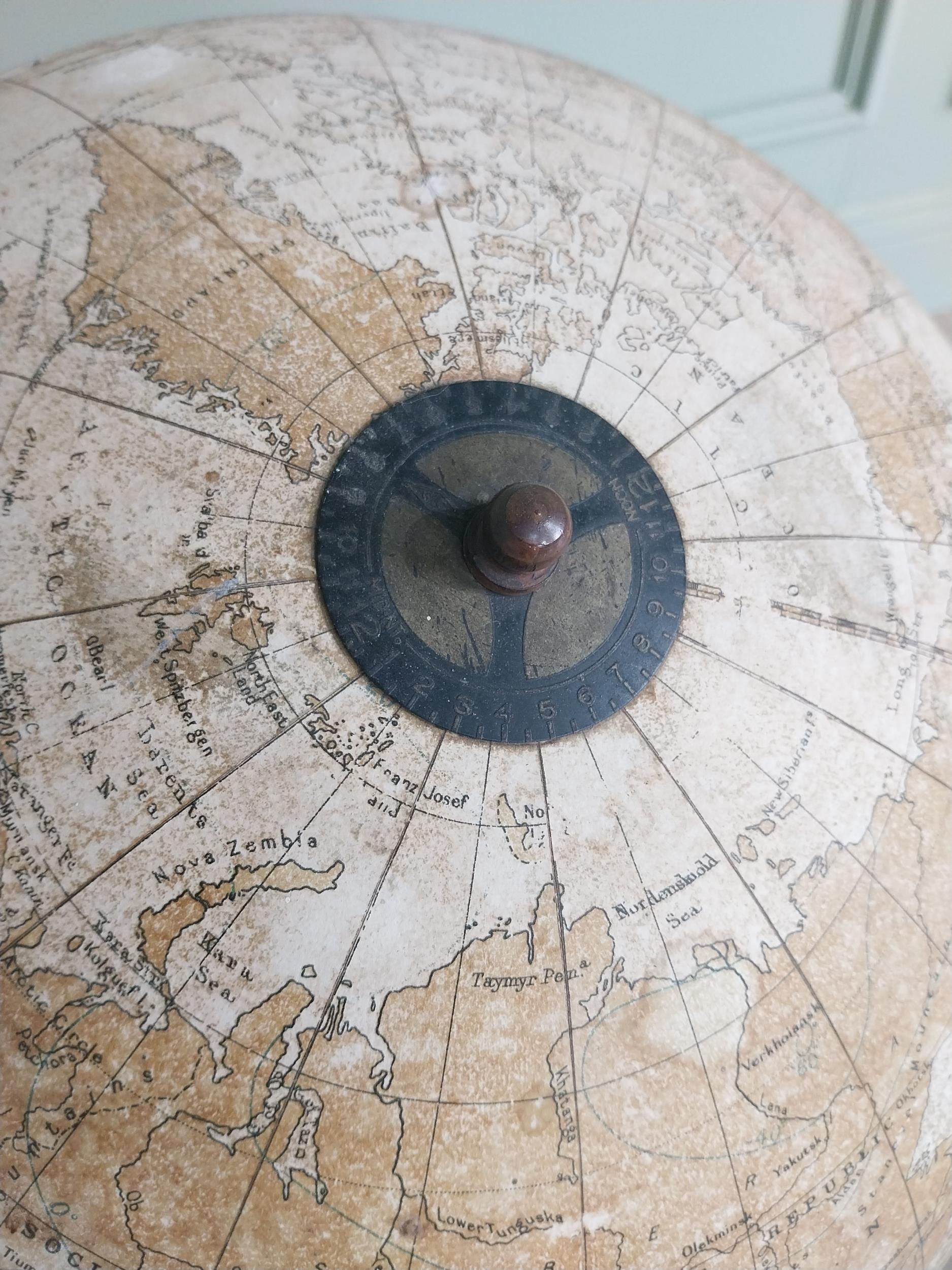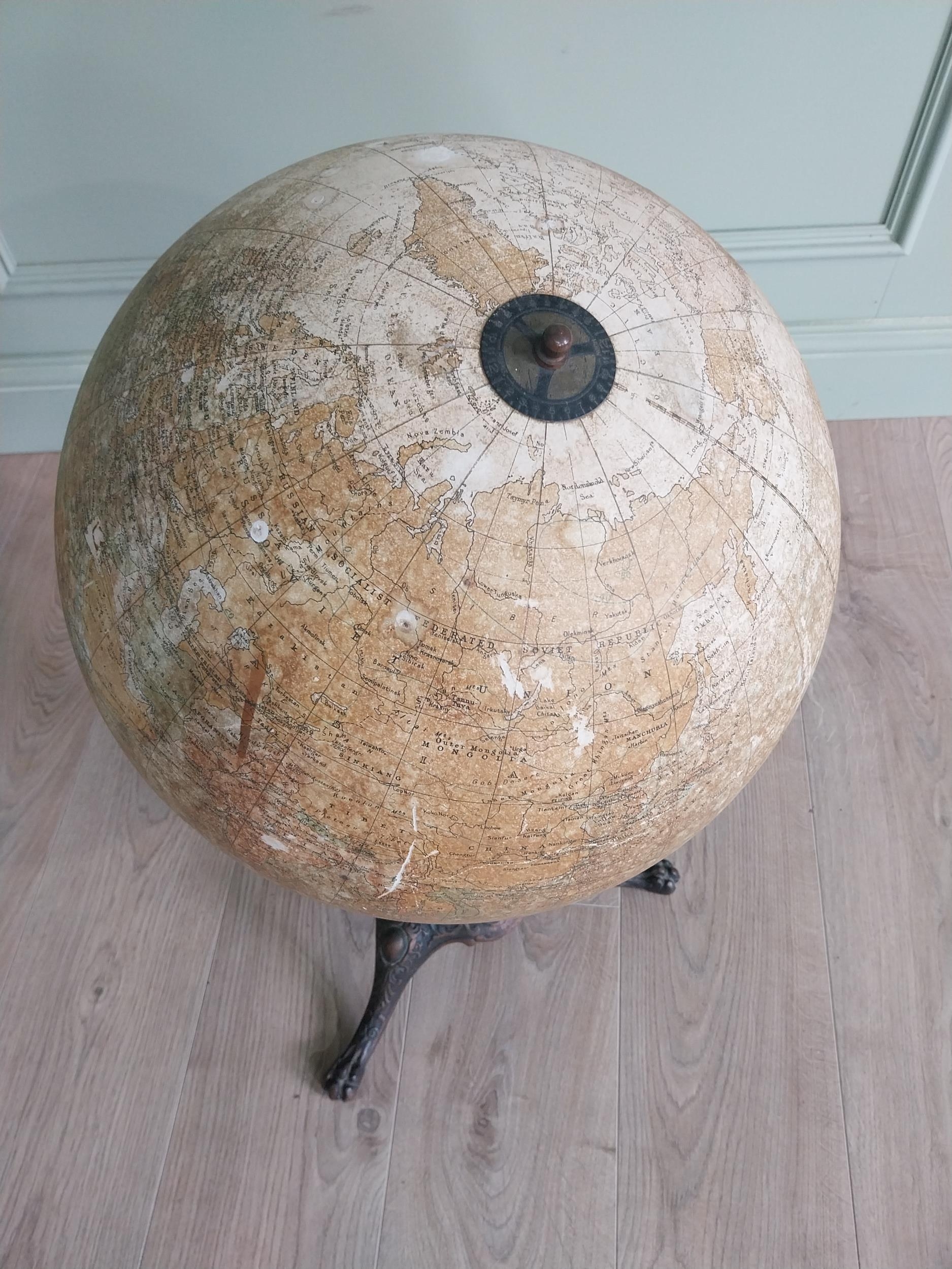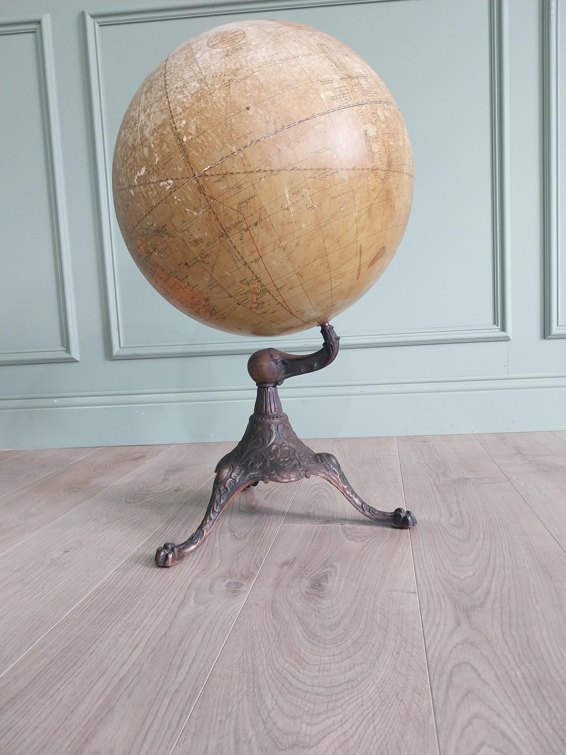 Early 20th C. world globe on decorative cast iron stand {72 cm H x 40 cm Dia.}.
