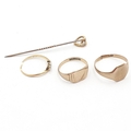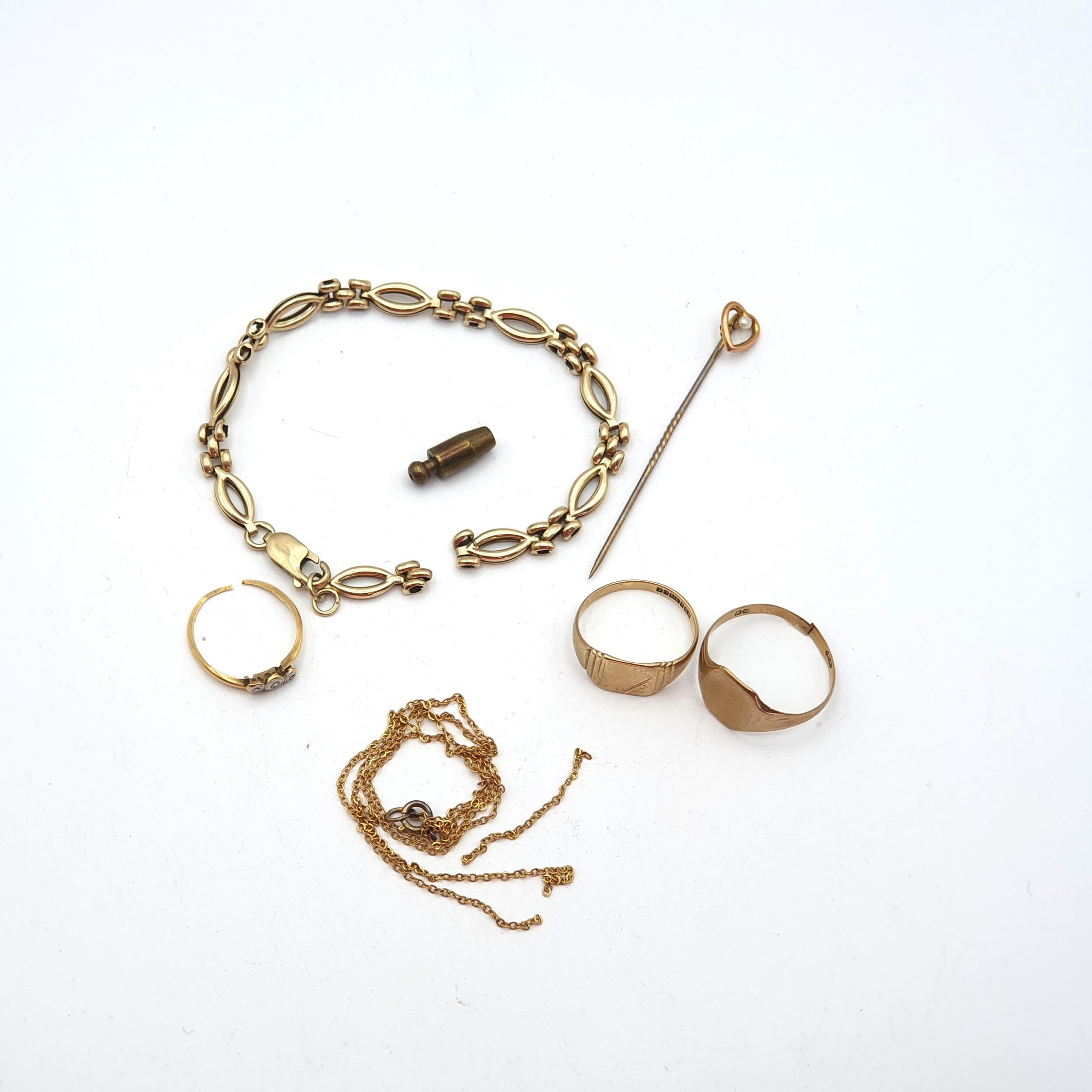 A collection of 9ct gold Jewellery, mostly a/f, approx 14gms (excluding stick pin clasp)
