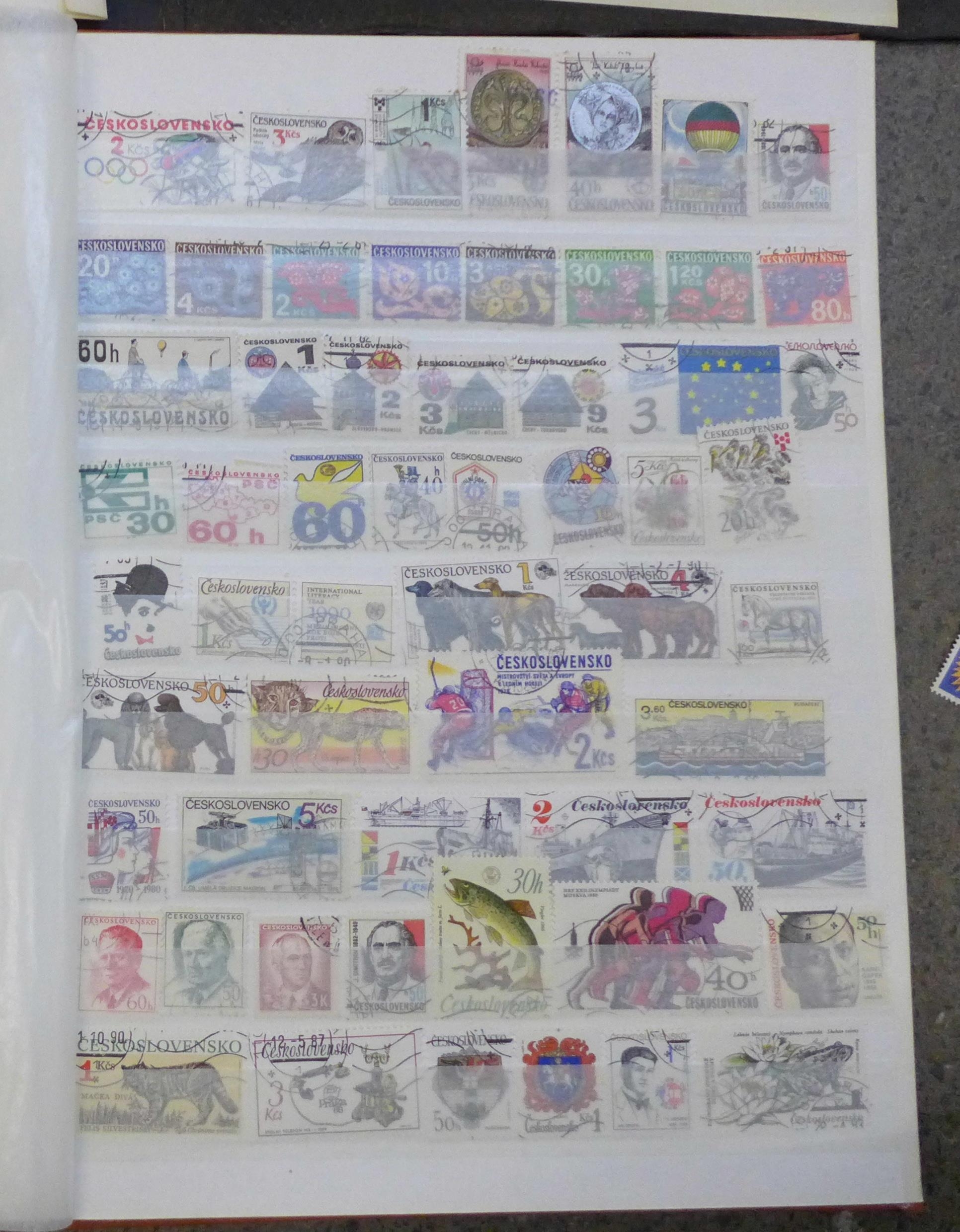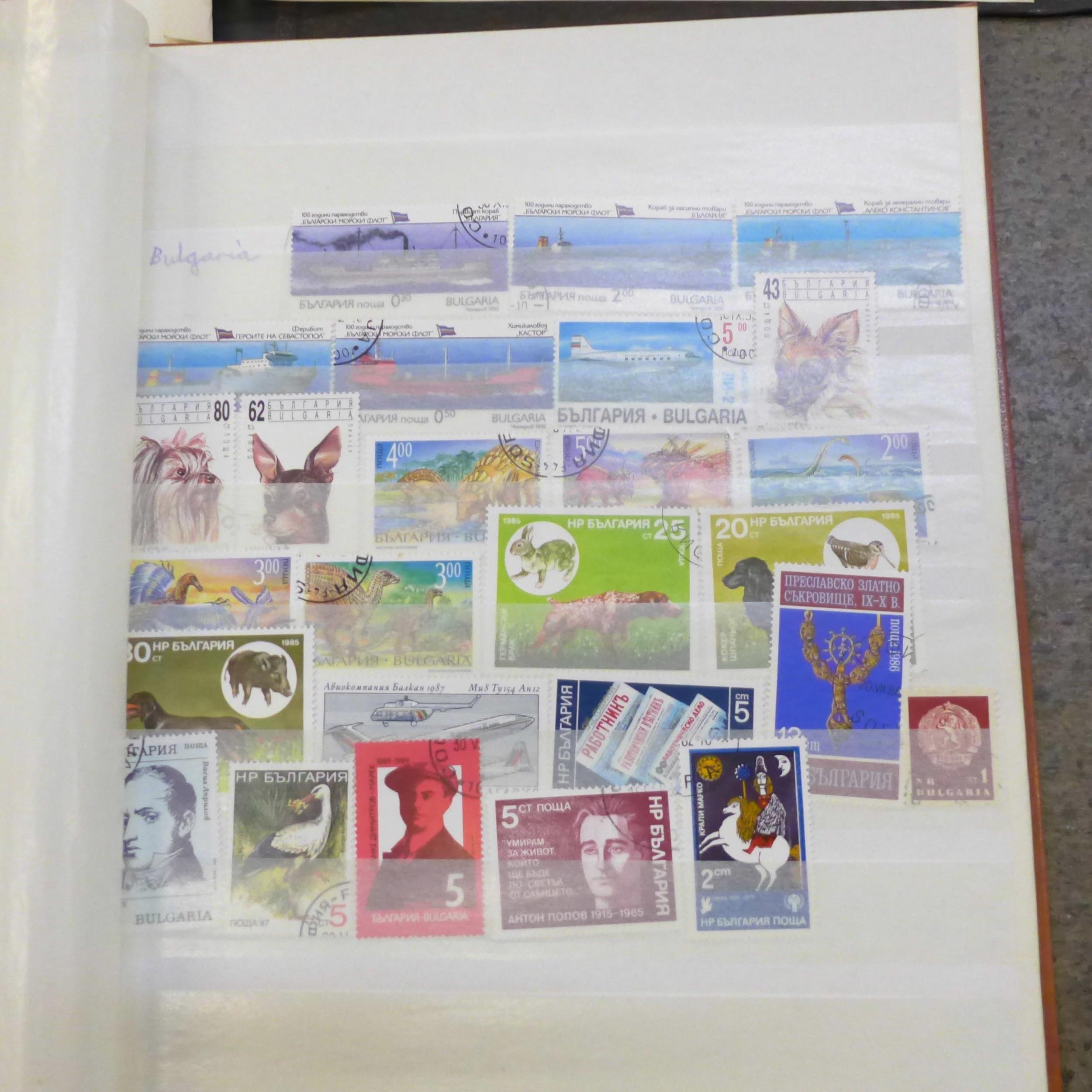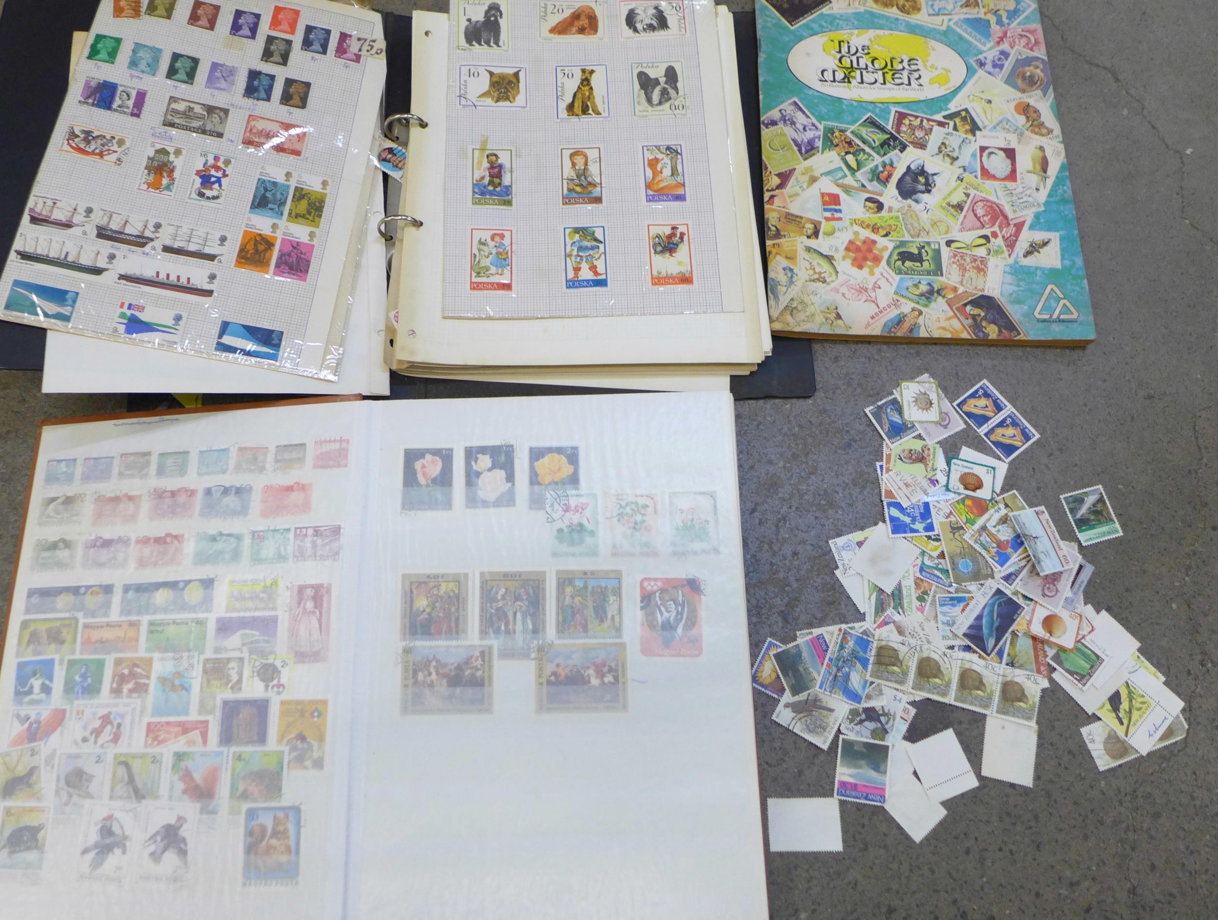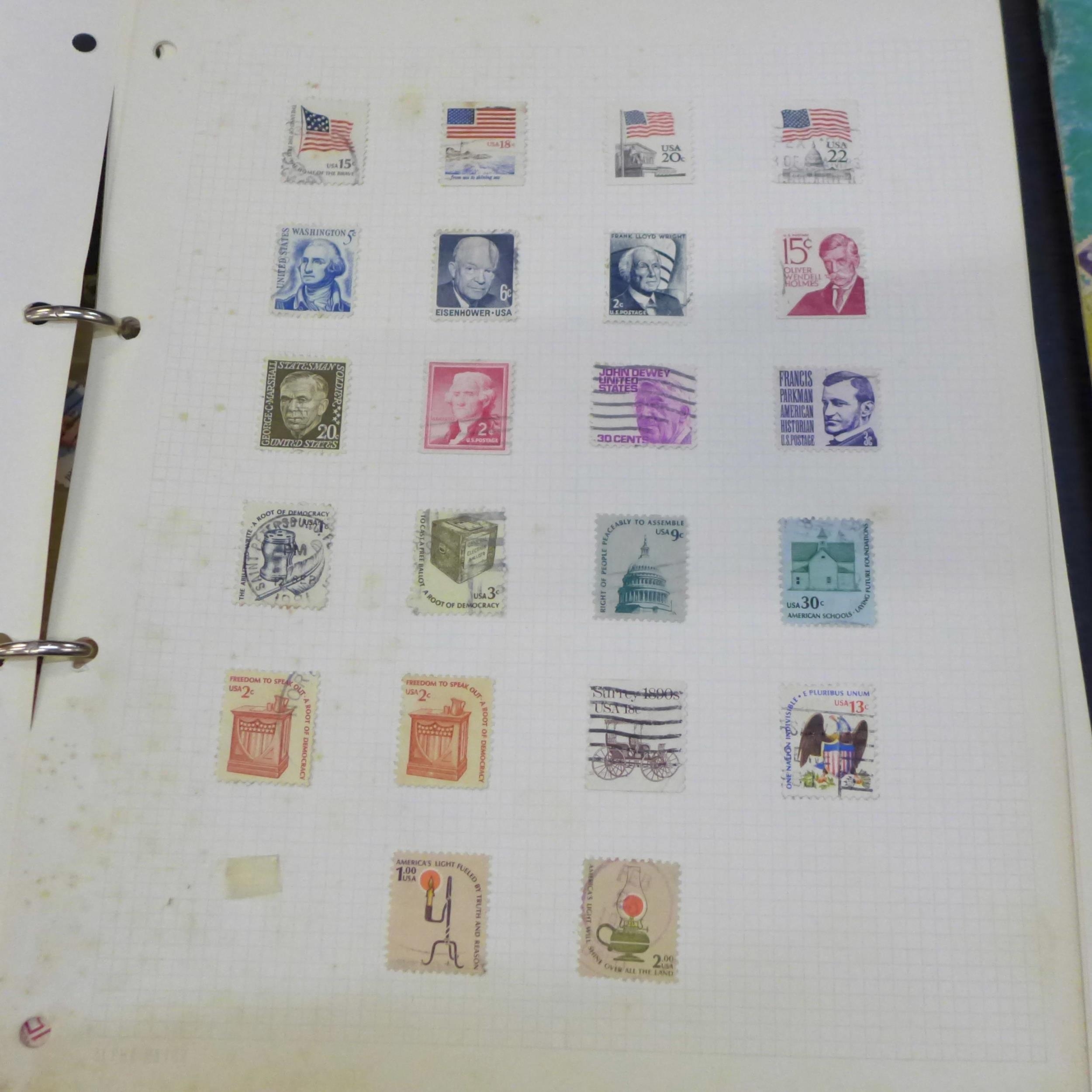A collection of worldwide stamps including France, United States of America, Canada, and an album of stamps