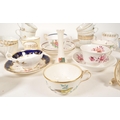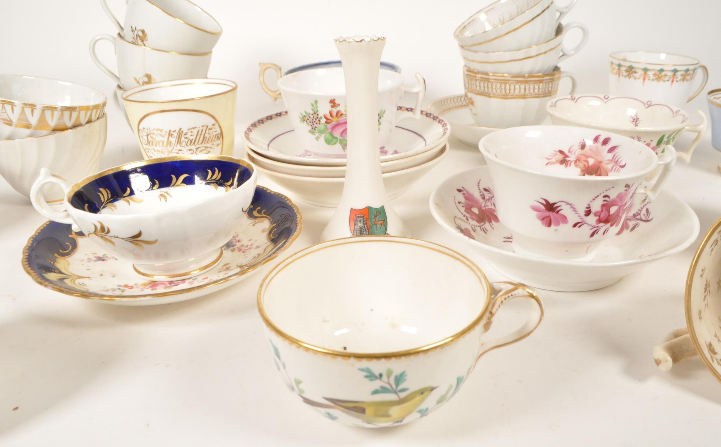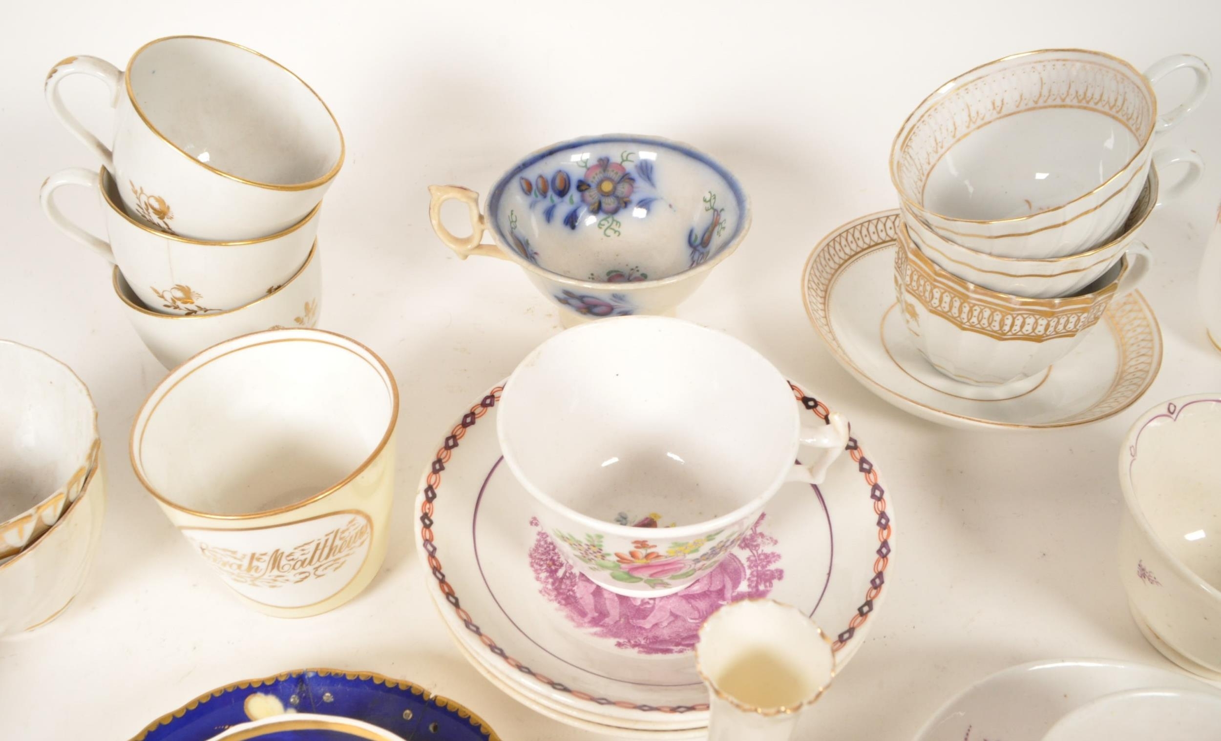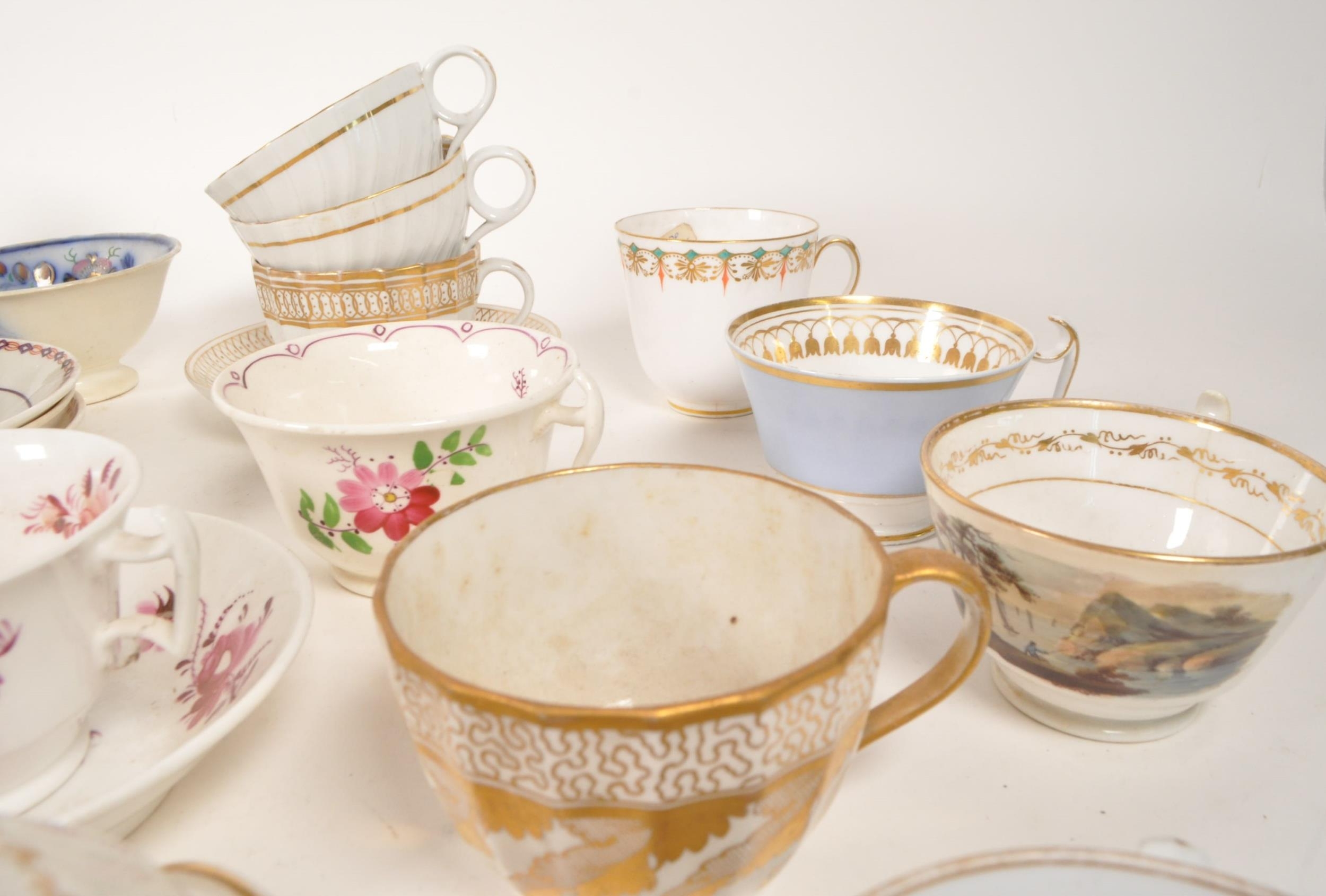 Large collection of 19th / 20th century porcelain china tea cups. Examples including a Davenport Longport coffee cup, Spode 2197 tea cup, John Rose Coalport gilded tea cup, a Sarah Matthews tea cups, and more.