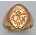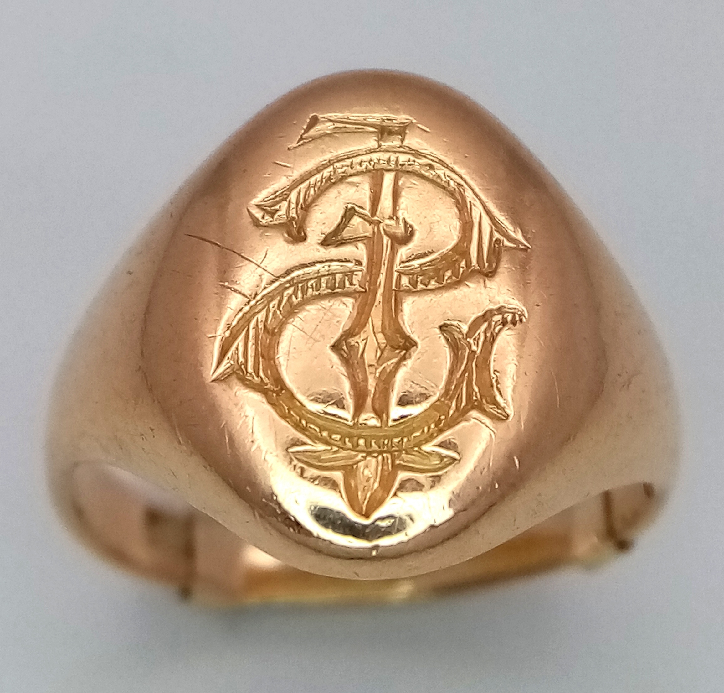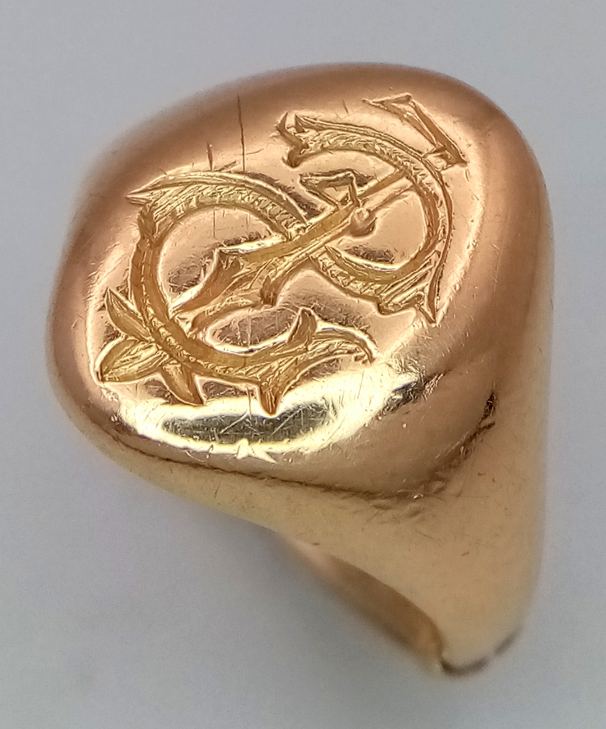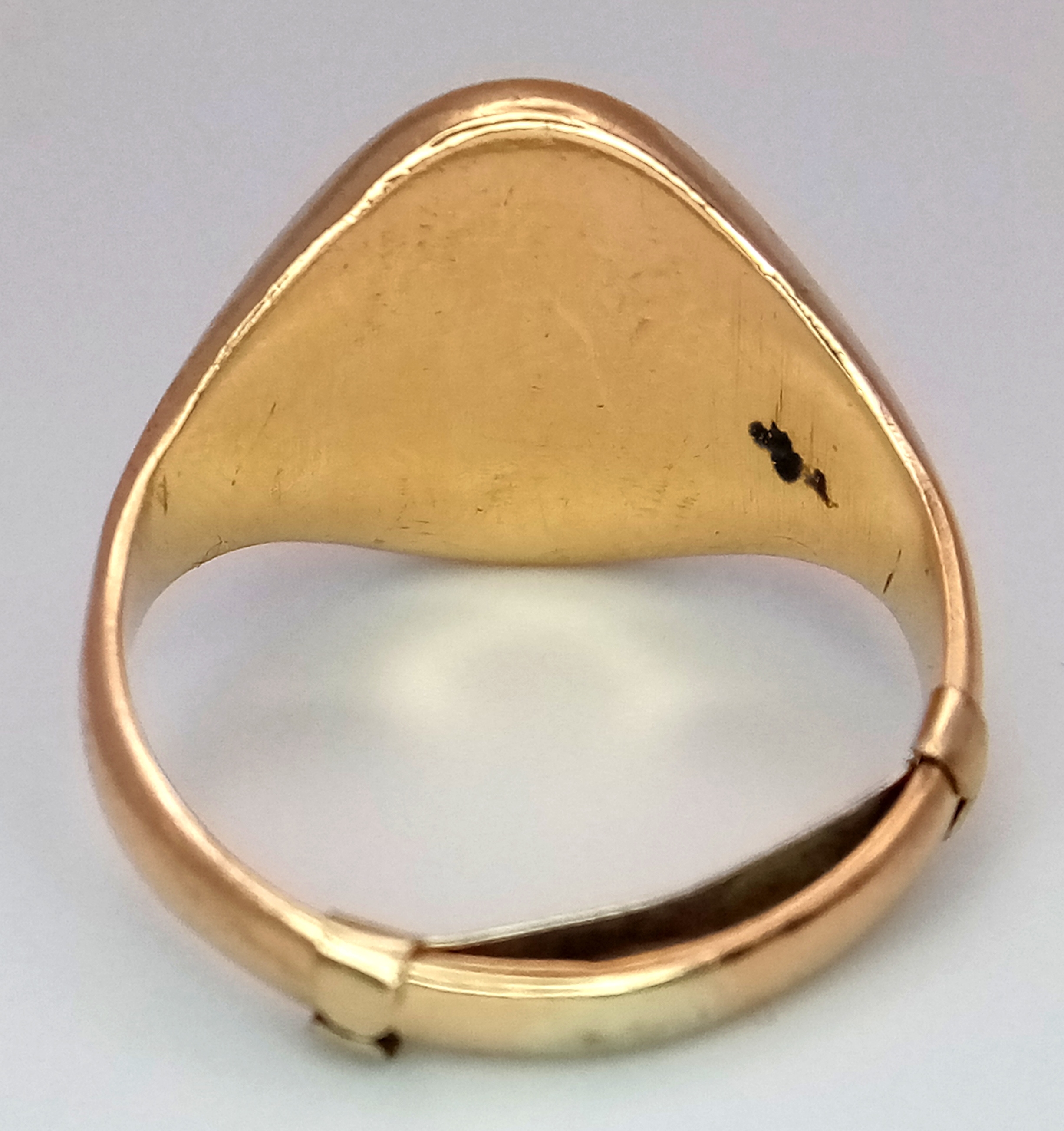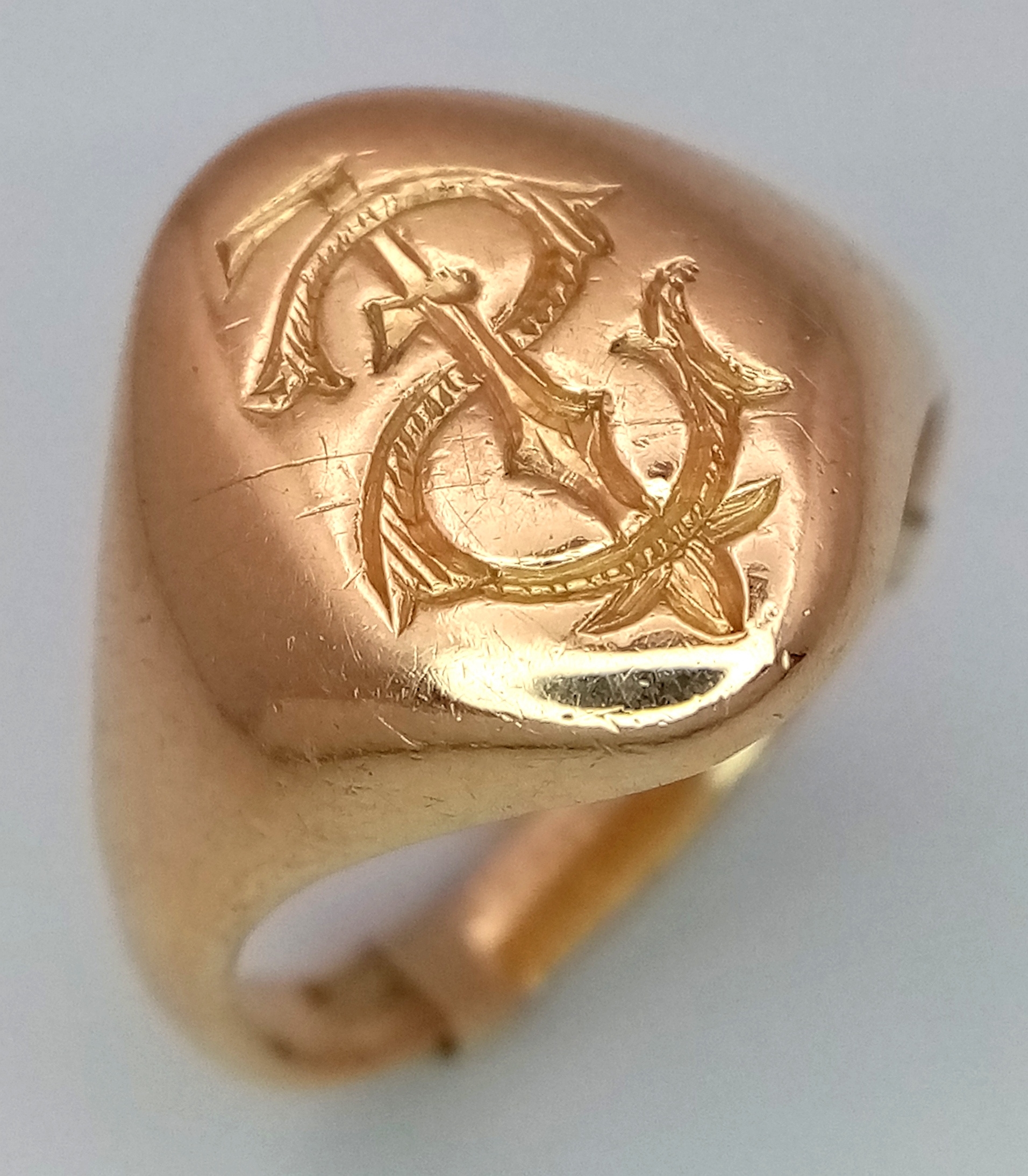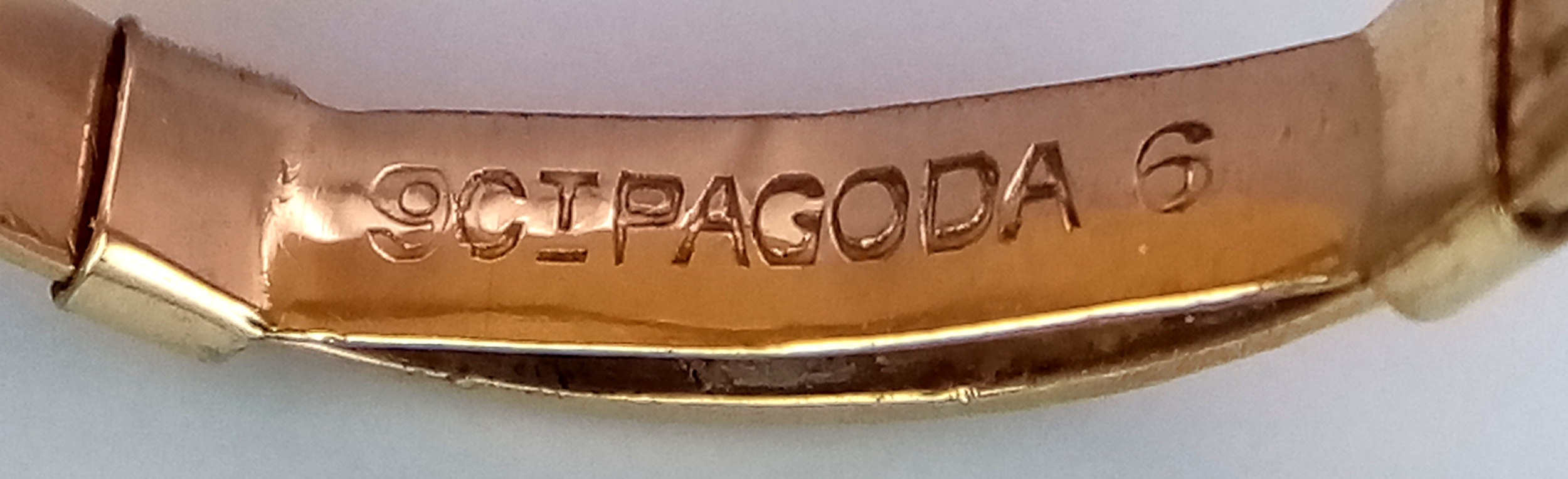 A 9K Yellow Gold Pagoda Signet Ring. Size M. 9.5g.