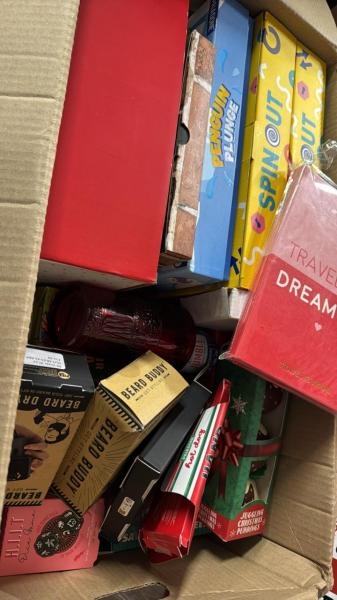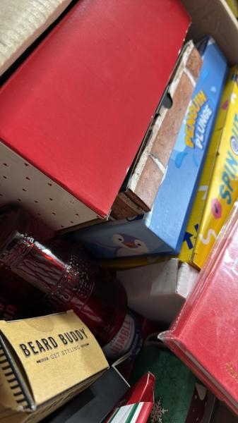BOX OF MIXED GIFTWARE INCL. PENGUIN PLUNGE AND SPINOUT GAMES AND MUCH MORE / PLEASE NOTE: ANY PURCHASES LEFT AFTER 5 WORKING DAYS MAY BE RE-SOLD TO COVER STORAGE & ADMIN