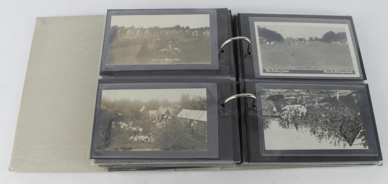 Norfolk, Hemsby: Holiday camps in Hemsby. Collection in an album. Most are older cards with RP views of chalets, events etc etc. Comprehensive (approx 72 cards)