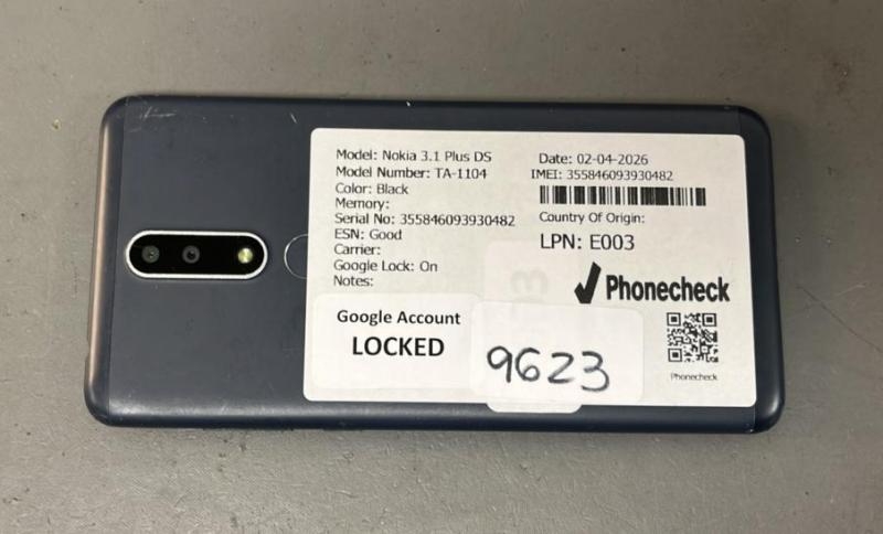 NOKIA 3.1 PLUS DS/ TA-1104/ BLACK/ GOOGLE LOCKED/ IMEI: 355846093930482- SCREEN DAMAGED