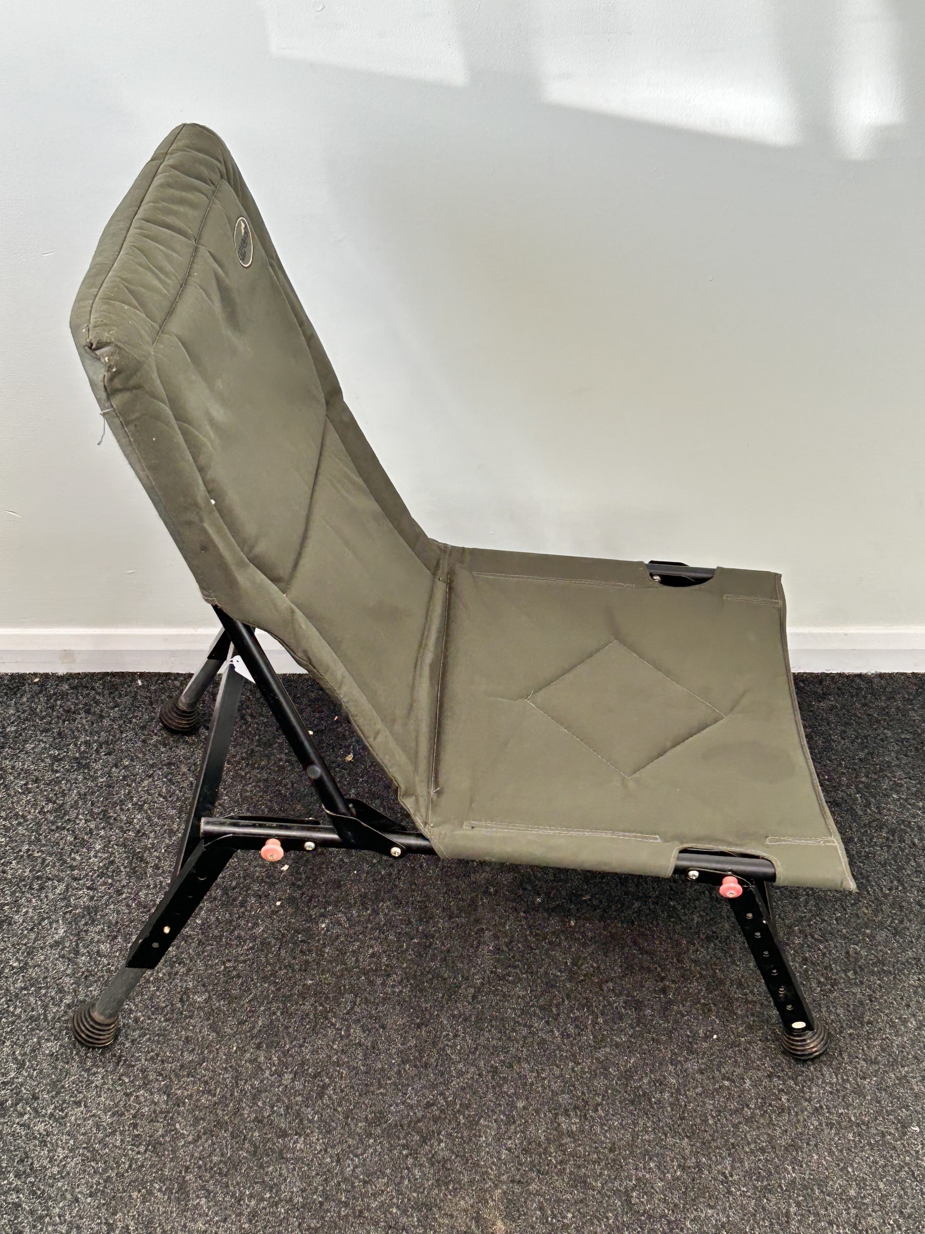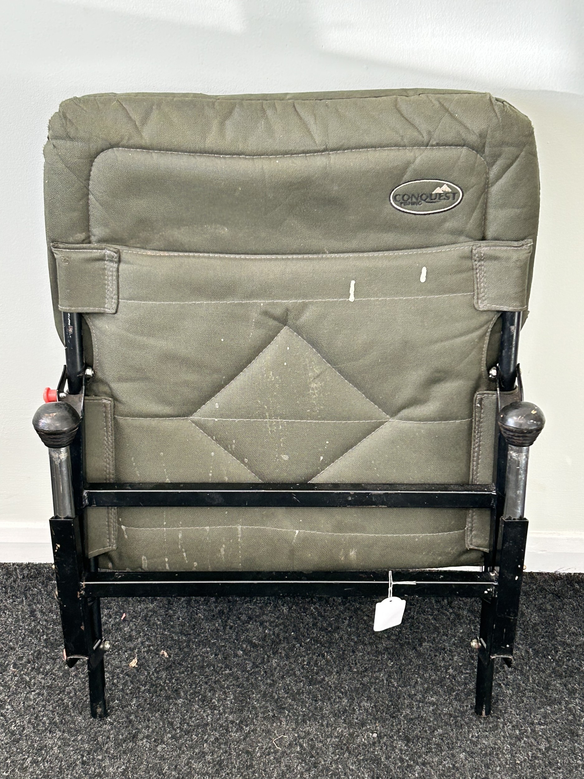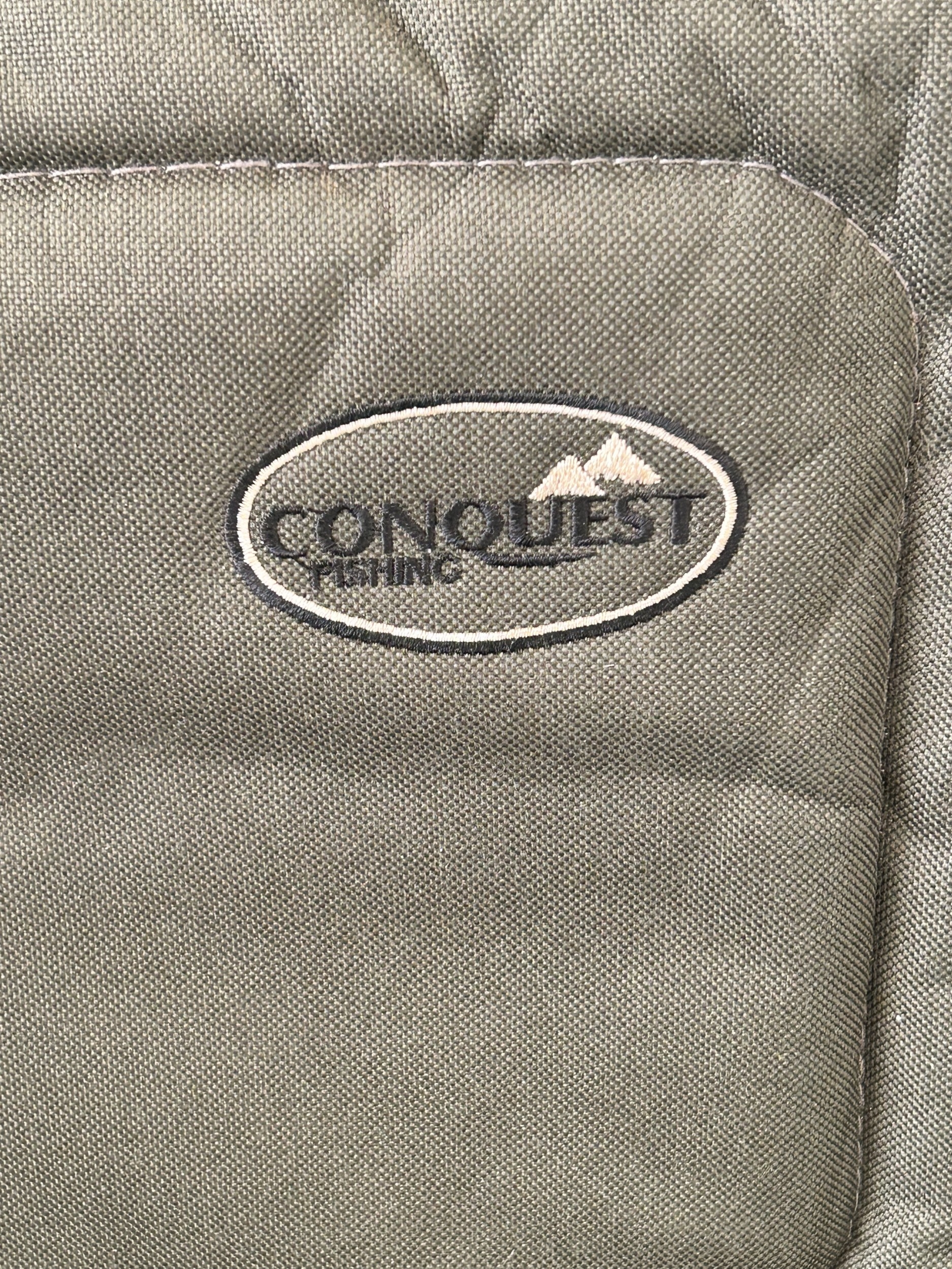 A Conquest green canvas fishing seat (with wear, but complete)