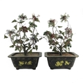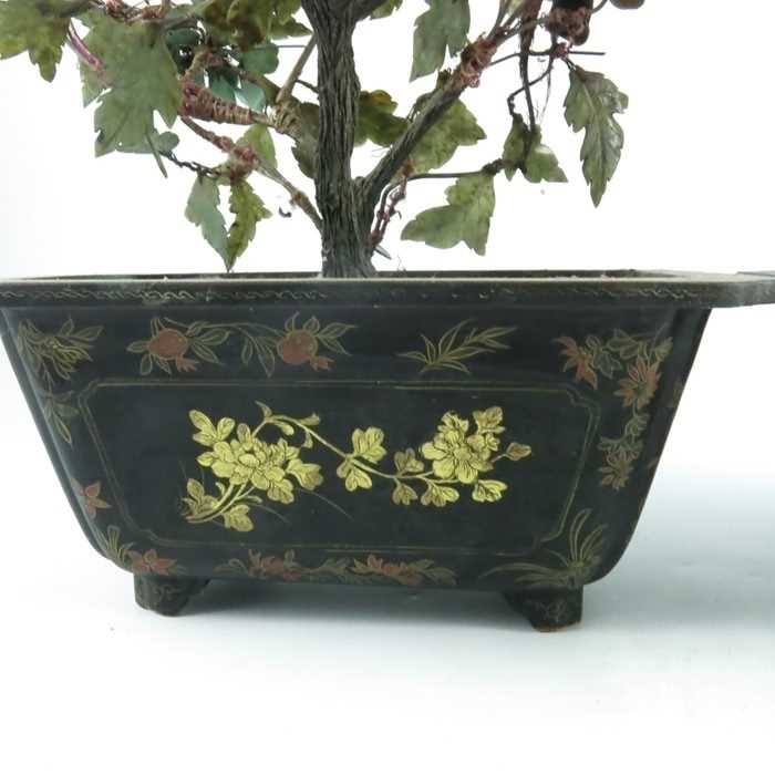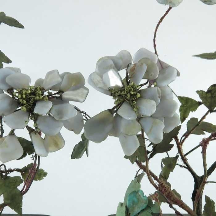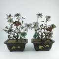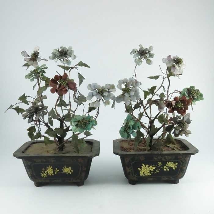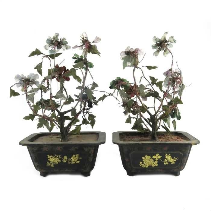 A pair of Chinese hardstone trees, early 20th century, hardstone flowering branches, in wooden rectangular jardinieres, 34cm high