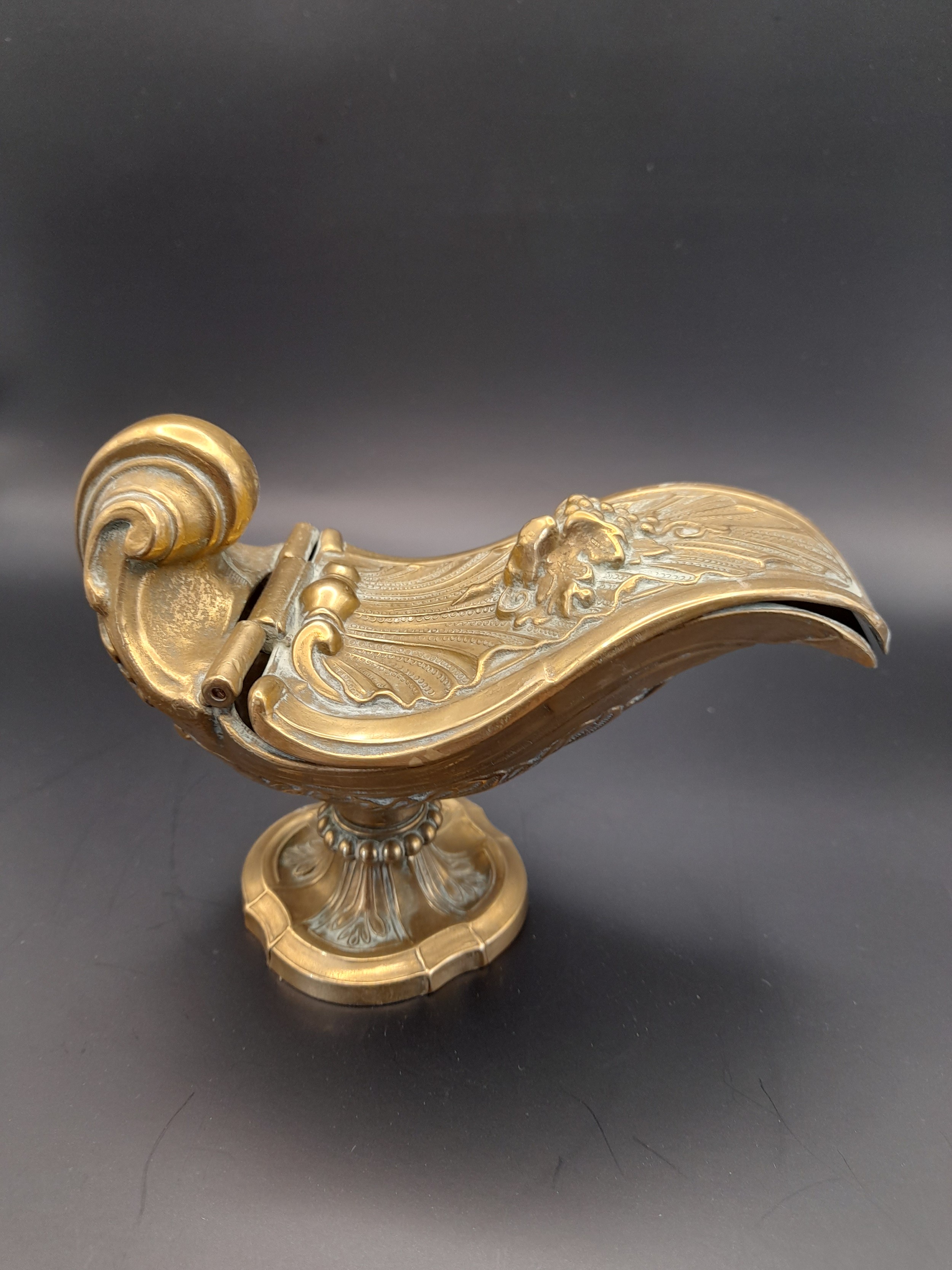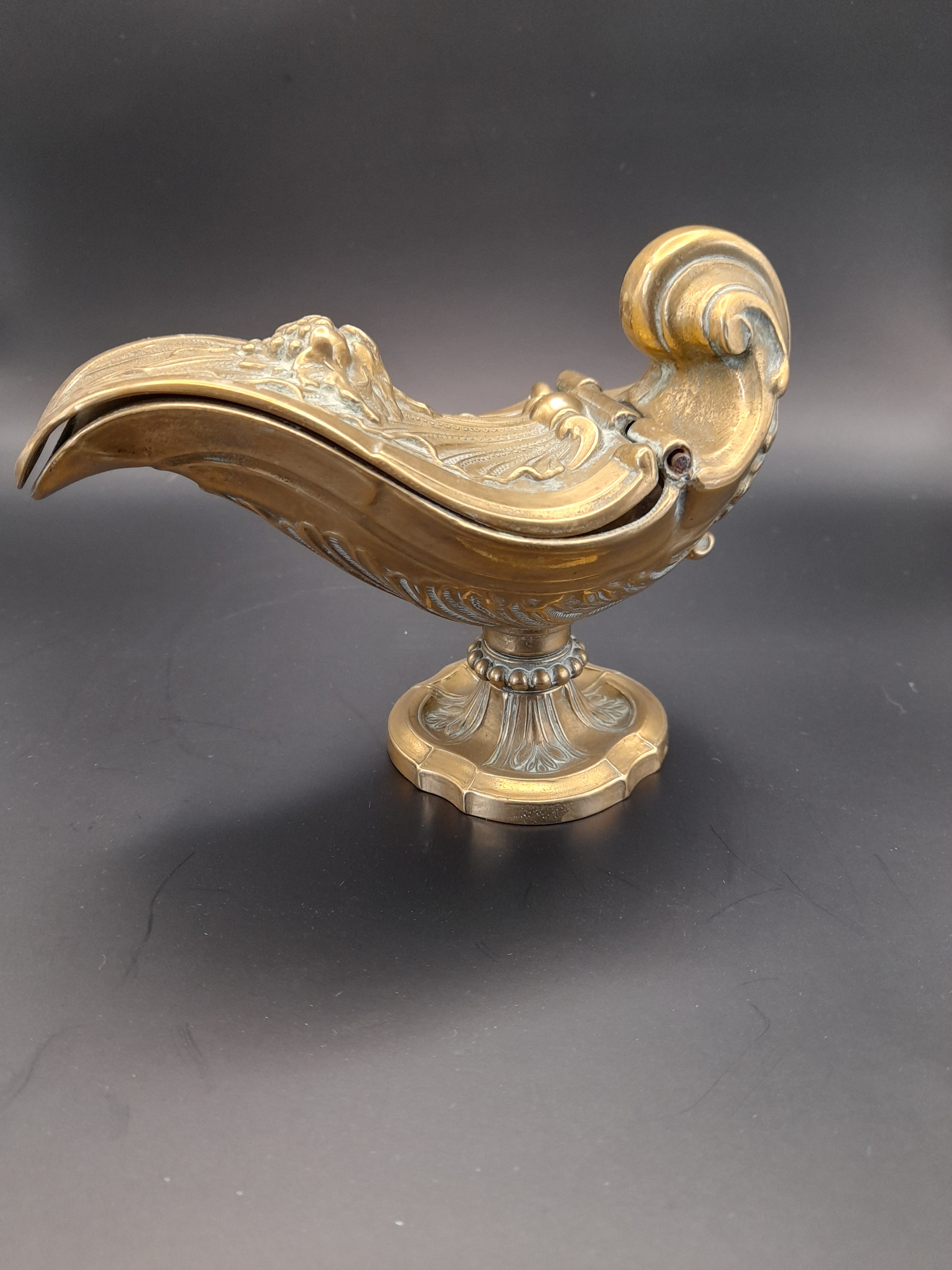 Brass Religious incense boat. 9cm high x 15cm long
