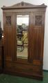 Victorian Walnut Single Door Wardrobe with bevelled glass rectangular mirror plate, single drawer under, with detachable cornice