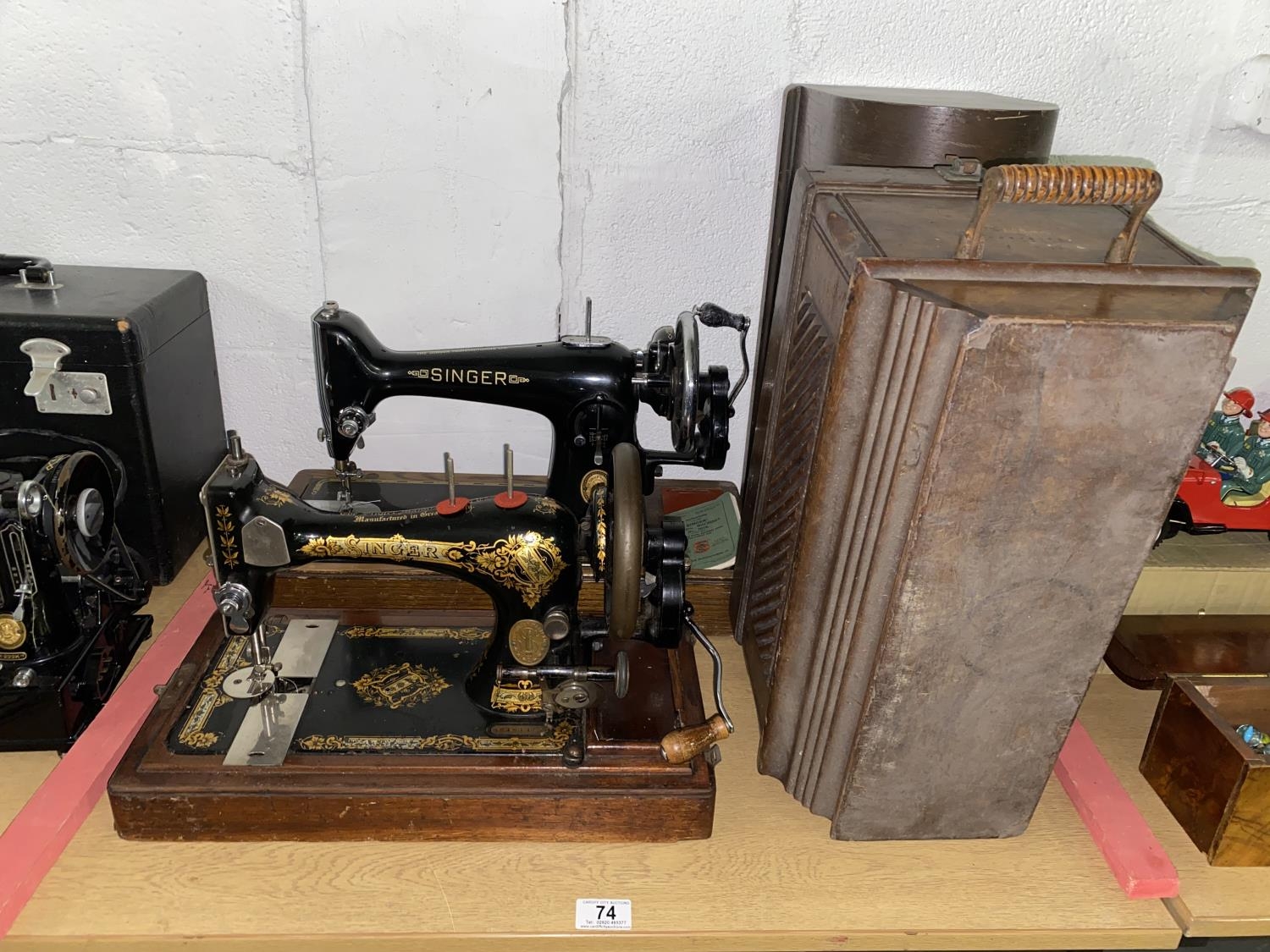 Two Singer hand crank sewing machines- A201k and another