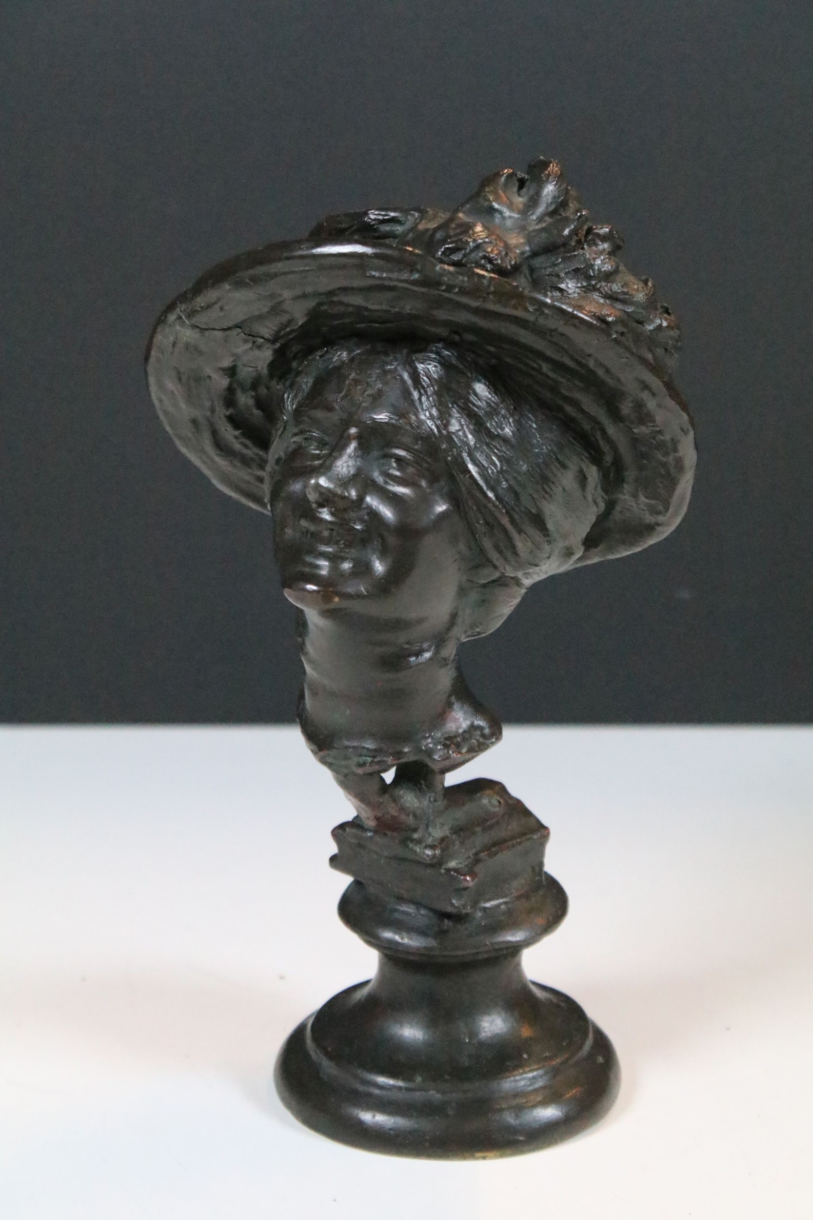 After Giuseppe Renda (Italian, 1859-1939) lady in a bonnet, bronze figure, H 20.5cm