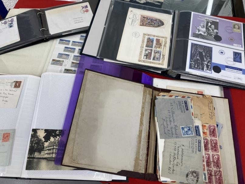 Stamps: Stockbook containing more than a thousand mid to late 20th cent. German stamps, mostly used, an album of World covers, a looseleaf A4 album of Commonwealth commemorative covers and an album of mid 20th cent. postcards.