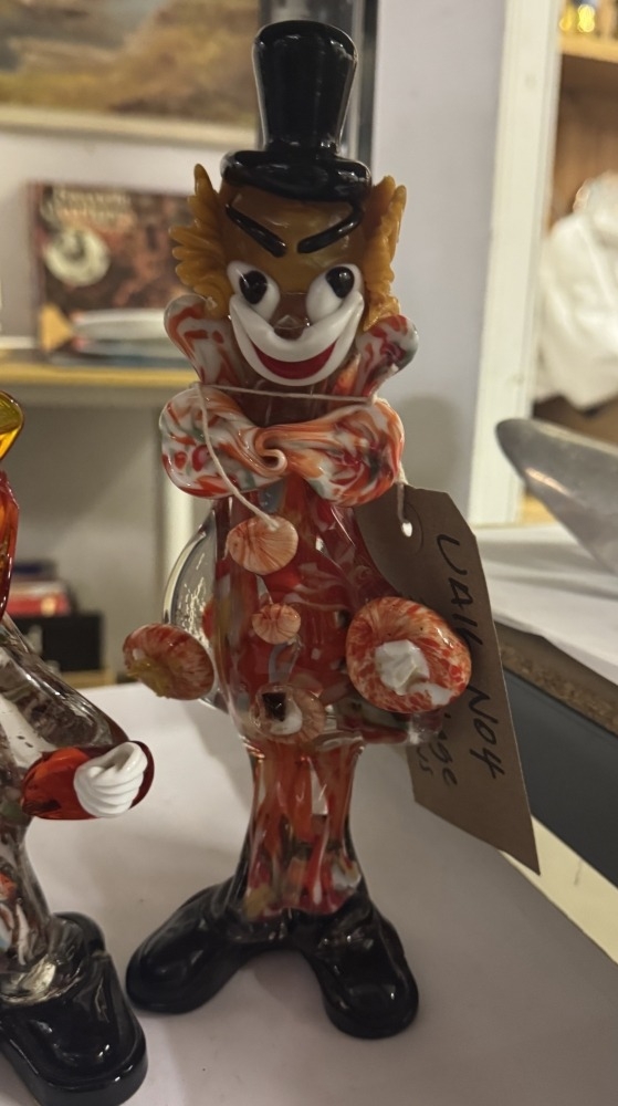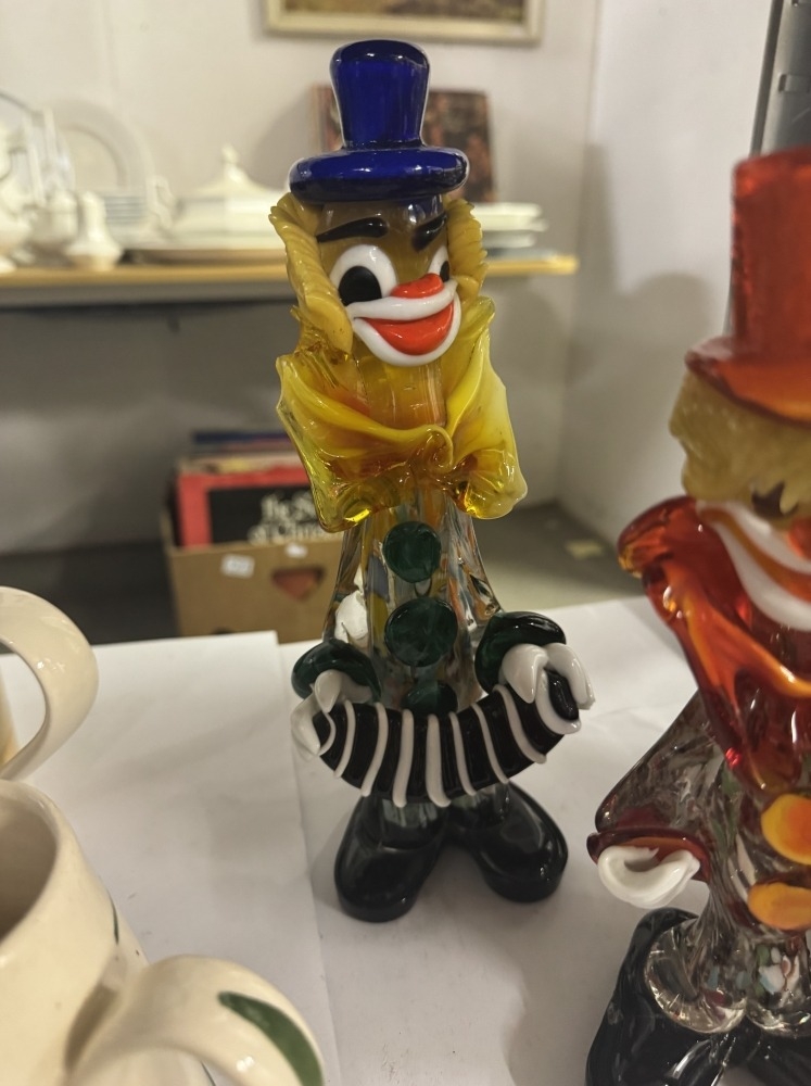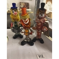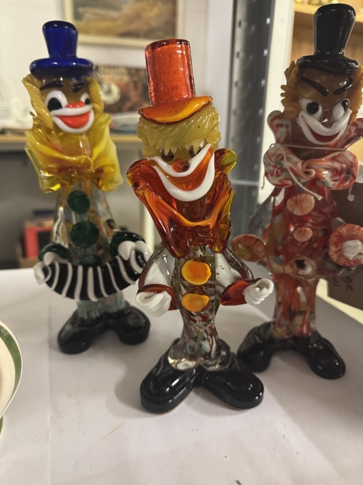 3 Vintage coloured glass clowns A/F