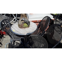 A concrete partially painted garden gnome statue.