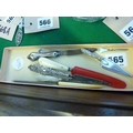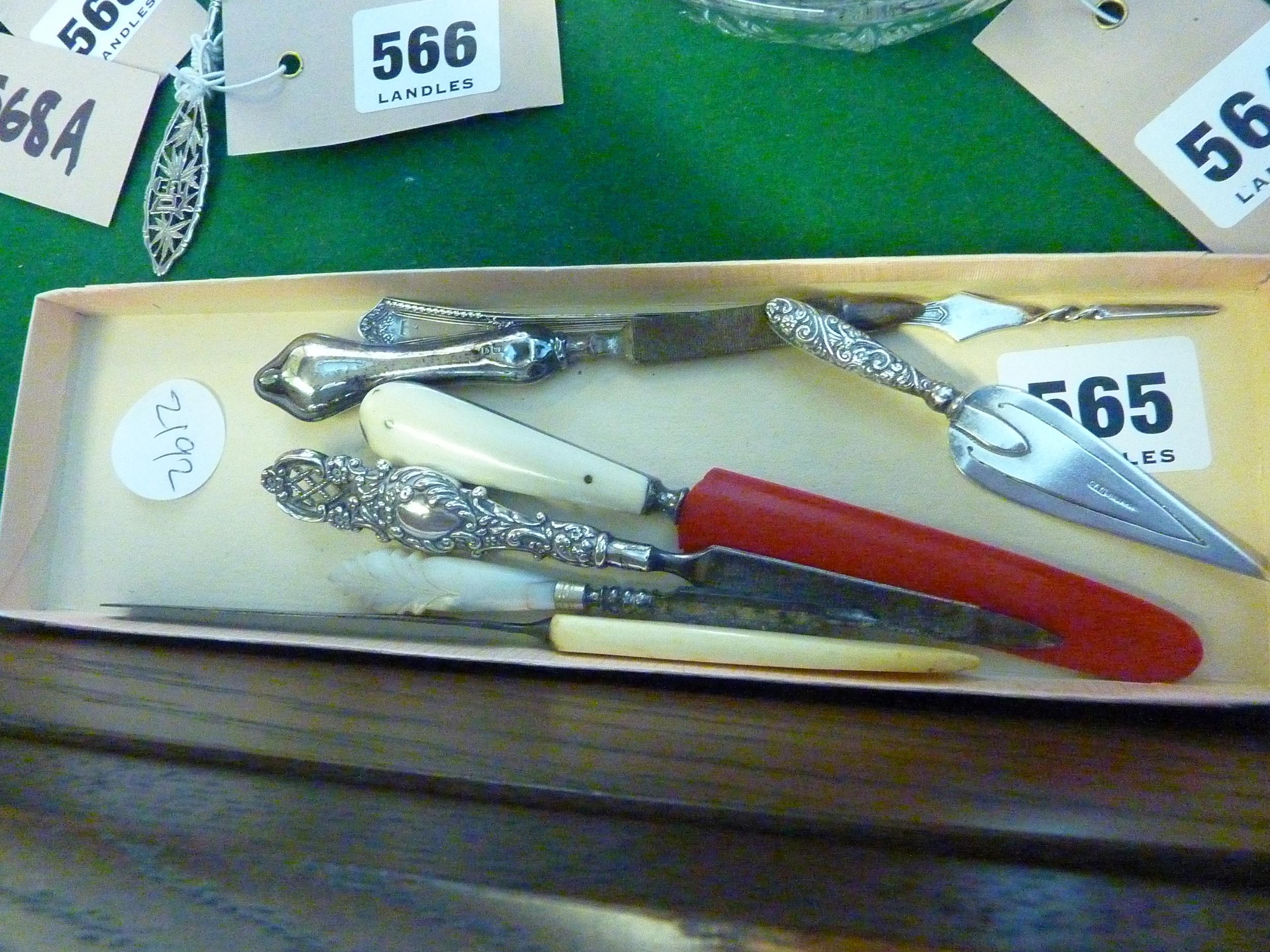 A tray with assorted silver handles and other manicure accessories etc