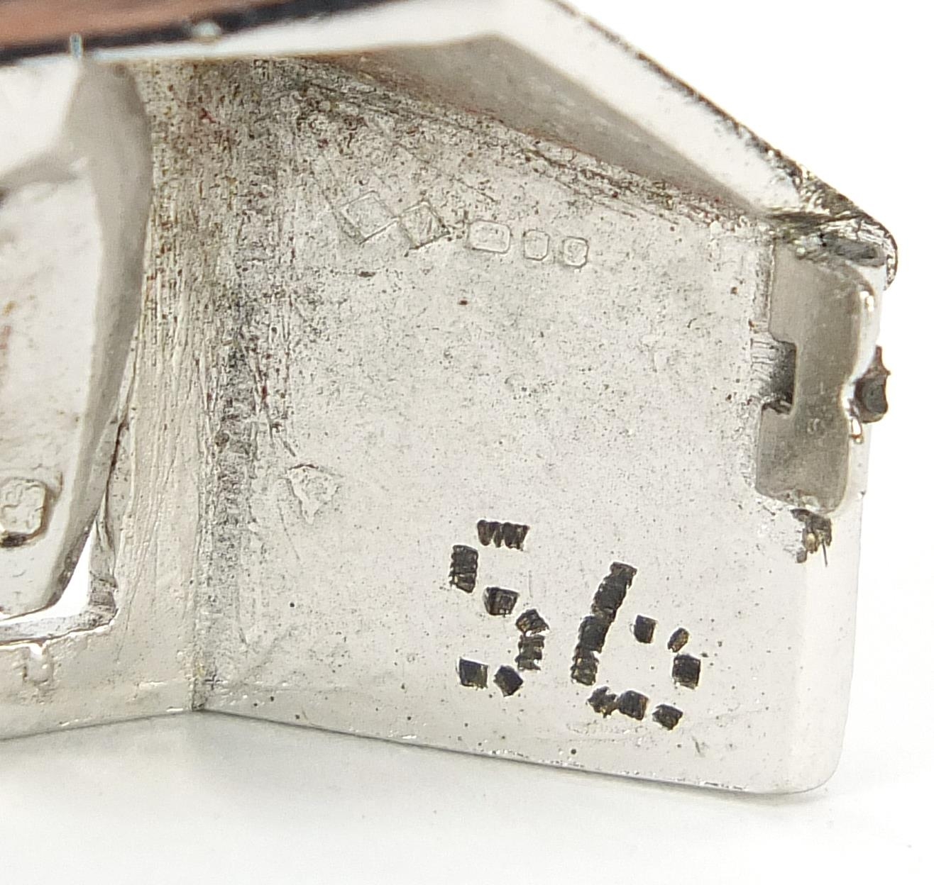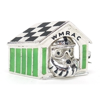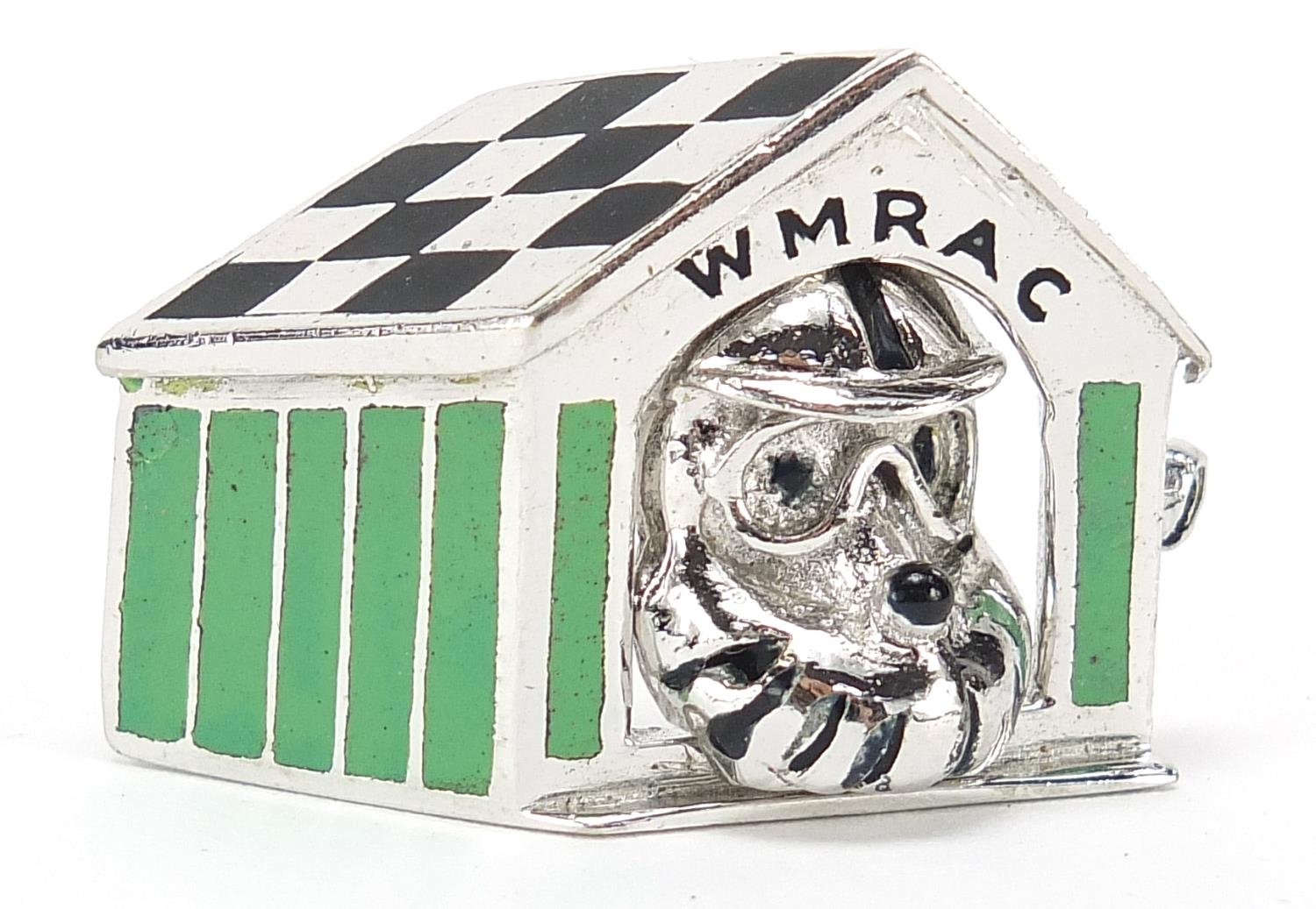 Rare motoring interest silver and enamel lapel badge relating to The Women's Motor Racing Associates club known as the Doghouse Owner's Club, 3.5cm wide, 15.8g