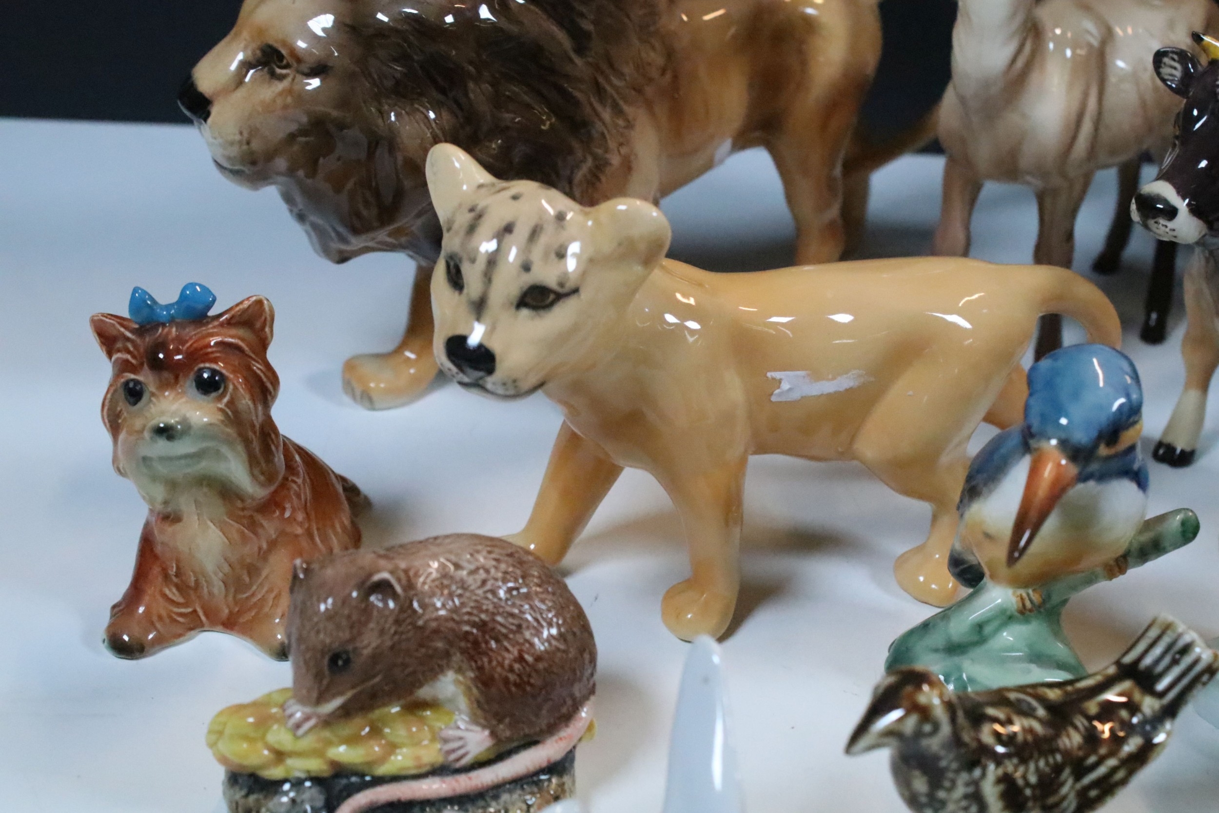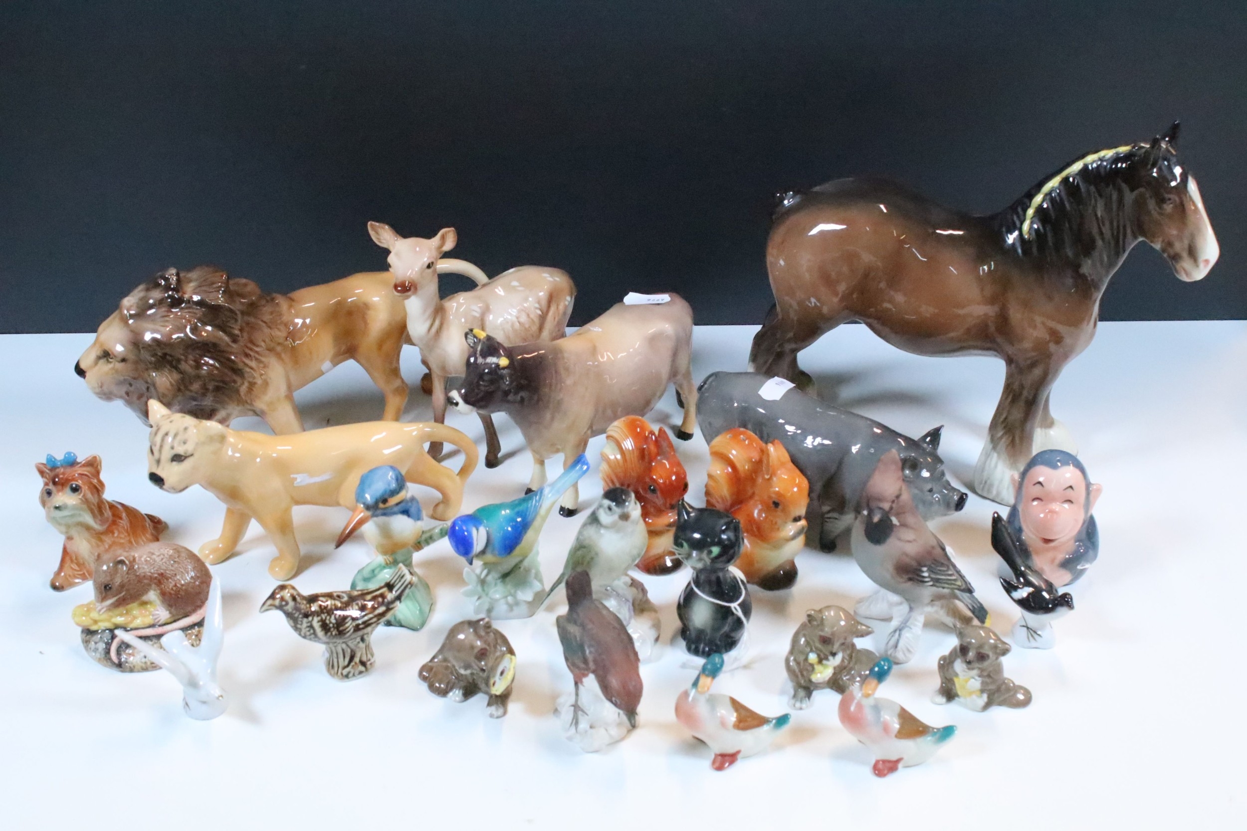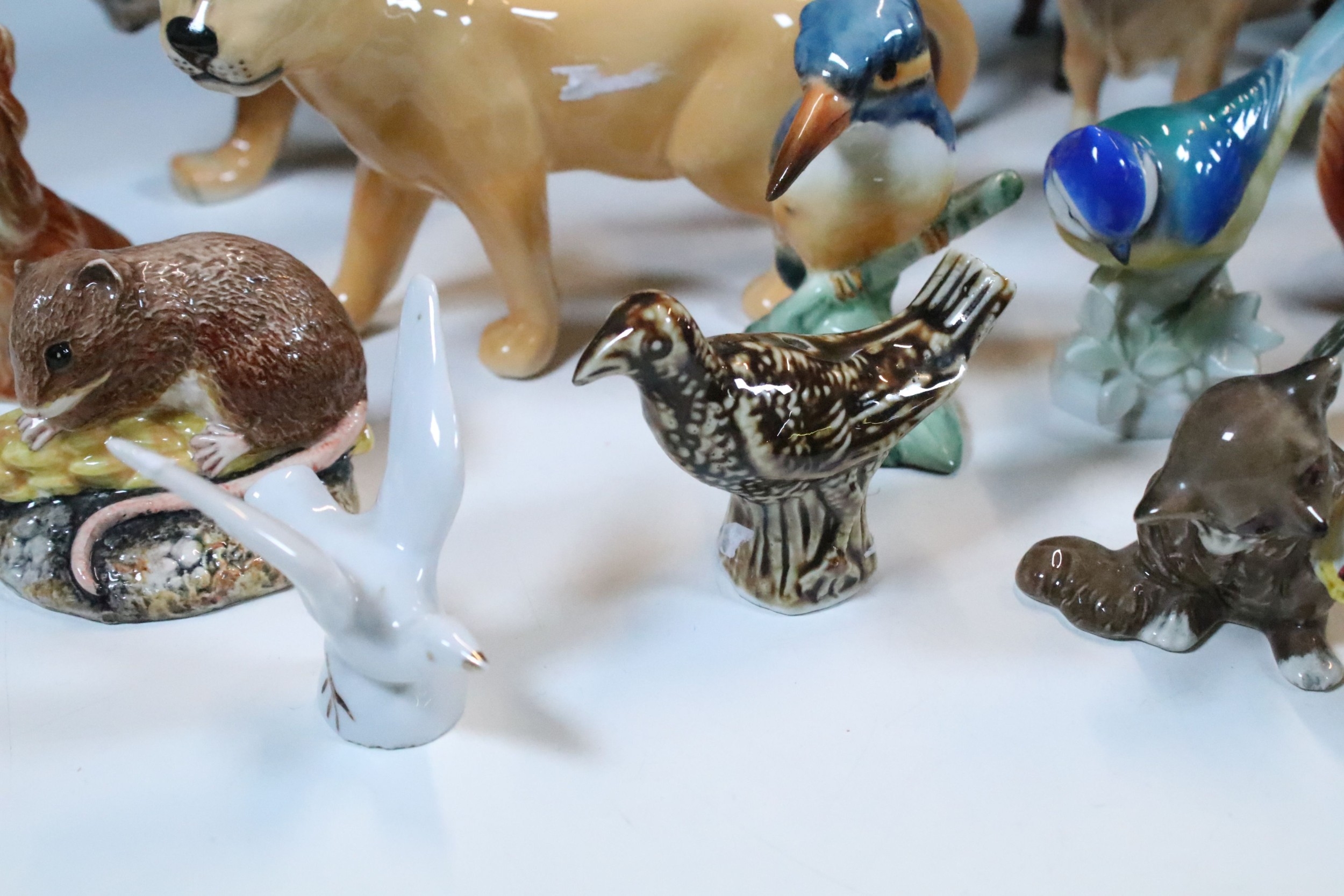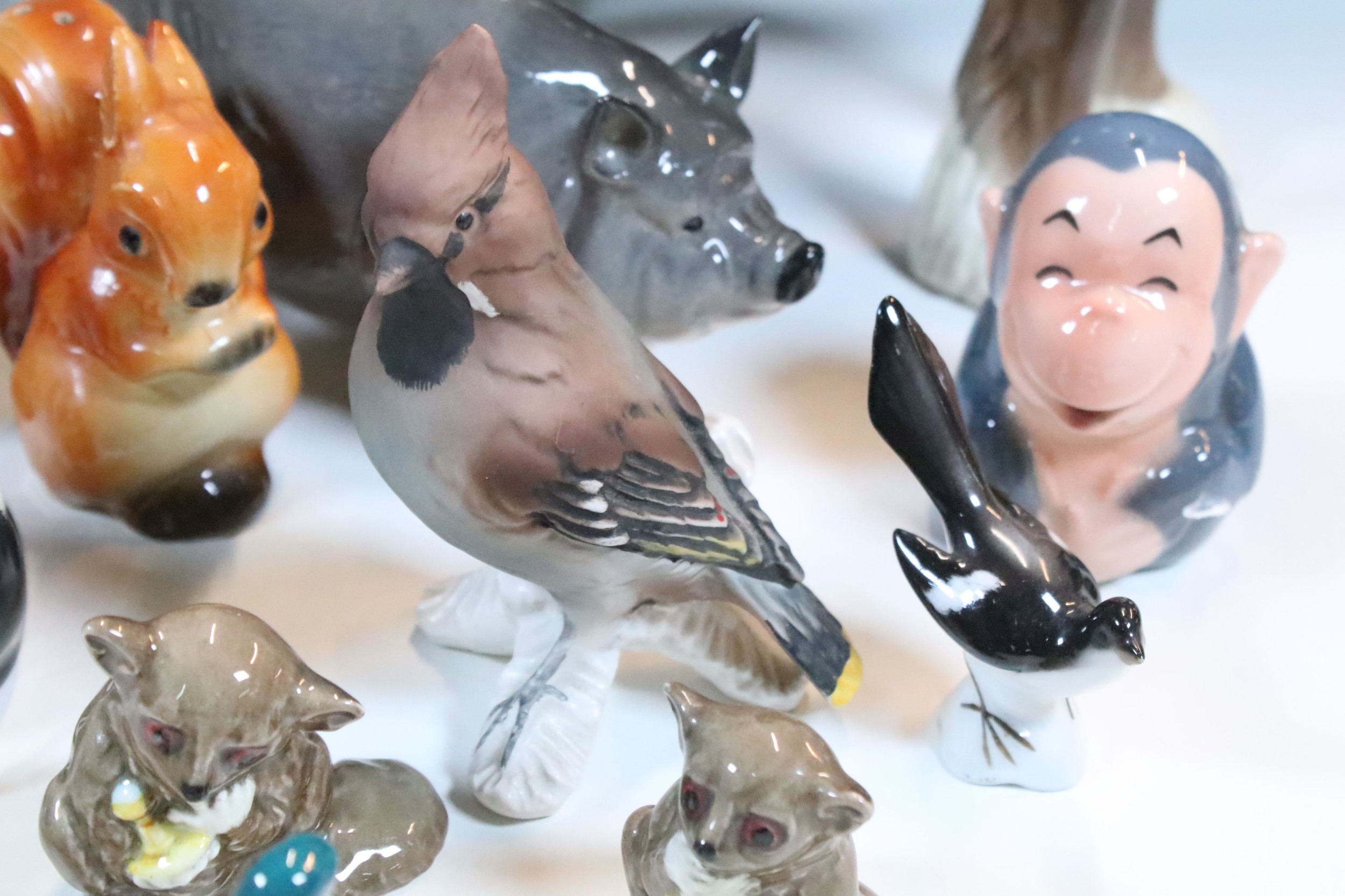 Group of 20th century assorted ceramic animal and bird figurines to include Beswick and Goebel examples (1 box)