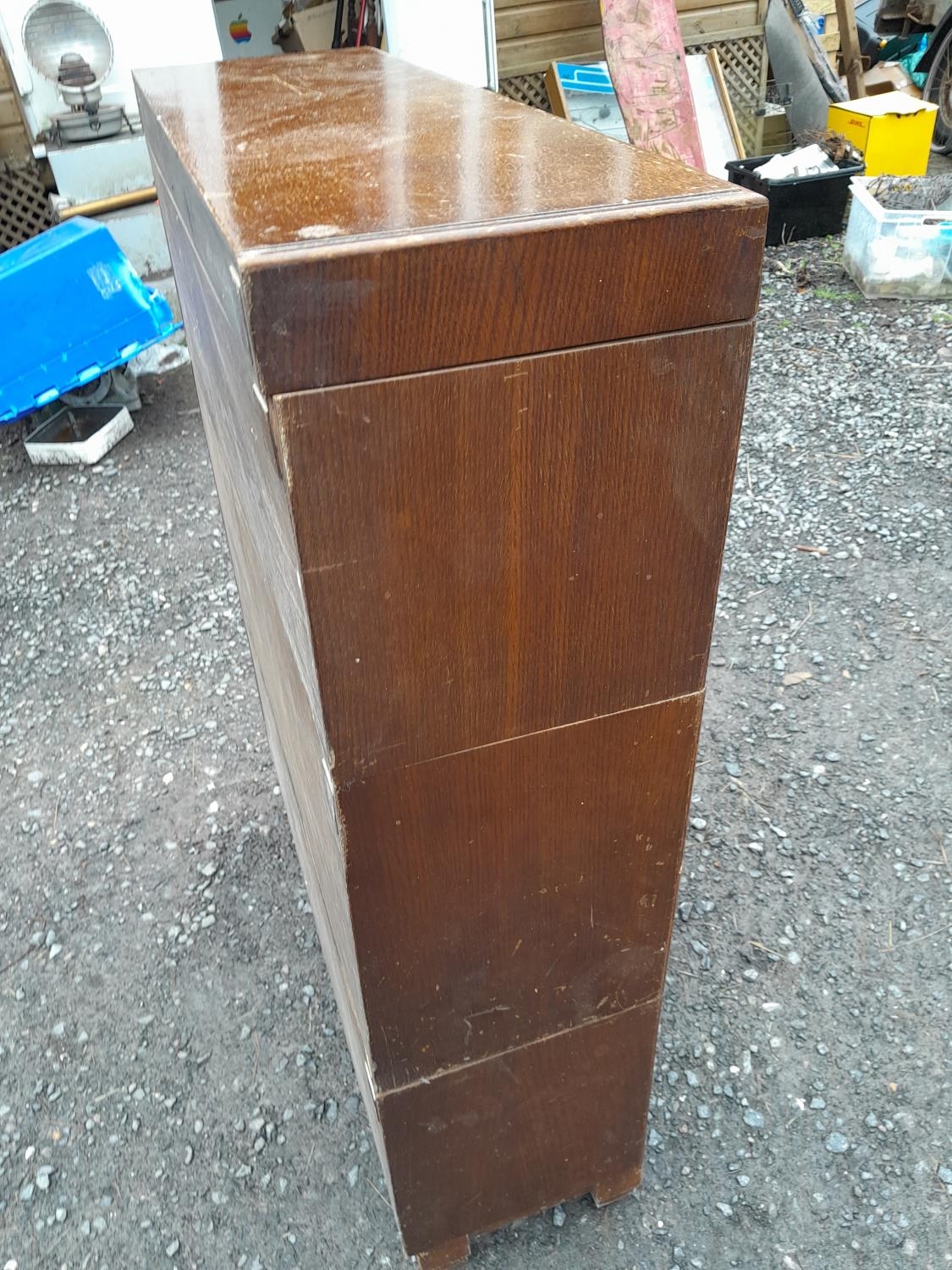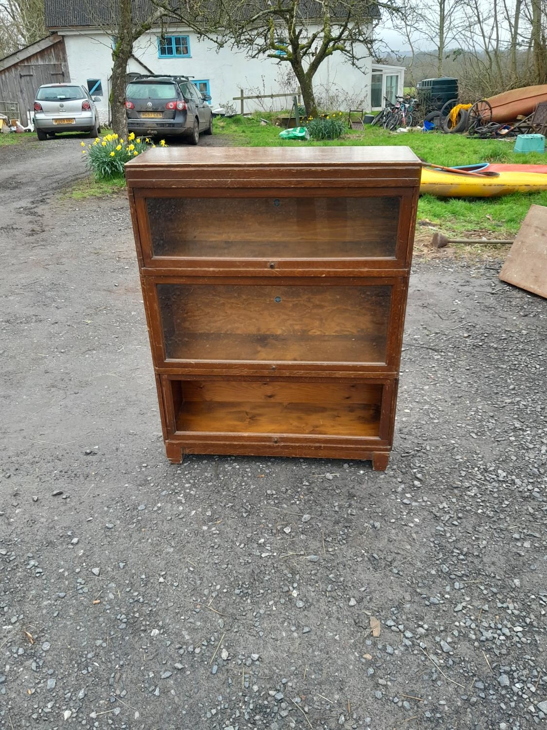 Vintage Globe Wernicke oak three sectional bookcase one glass missing
