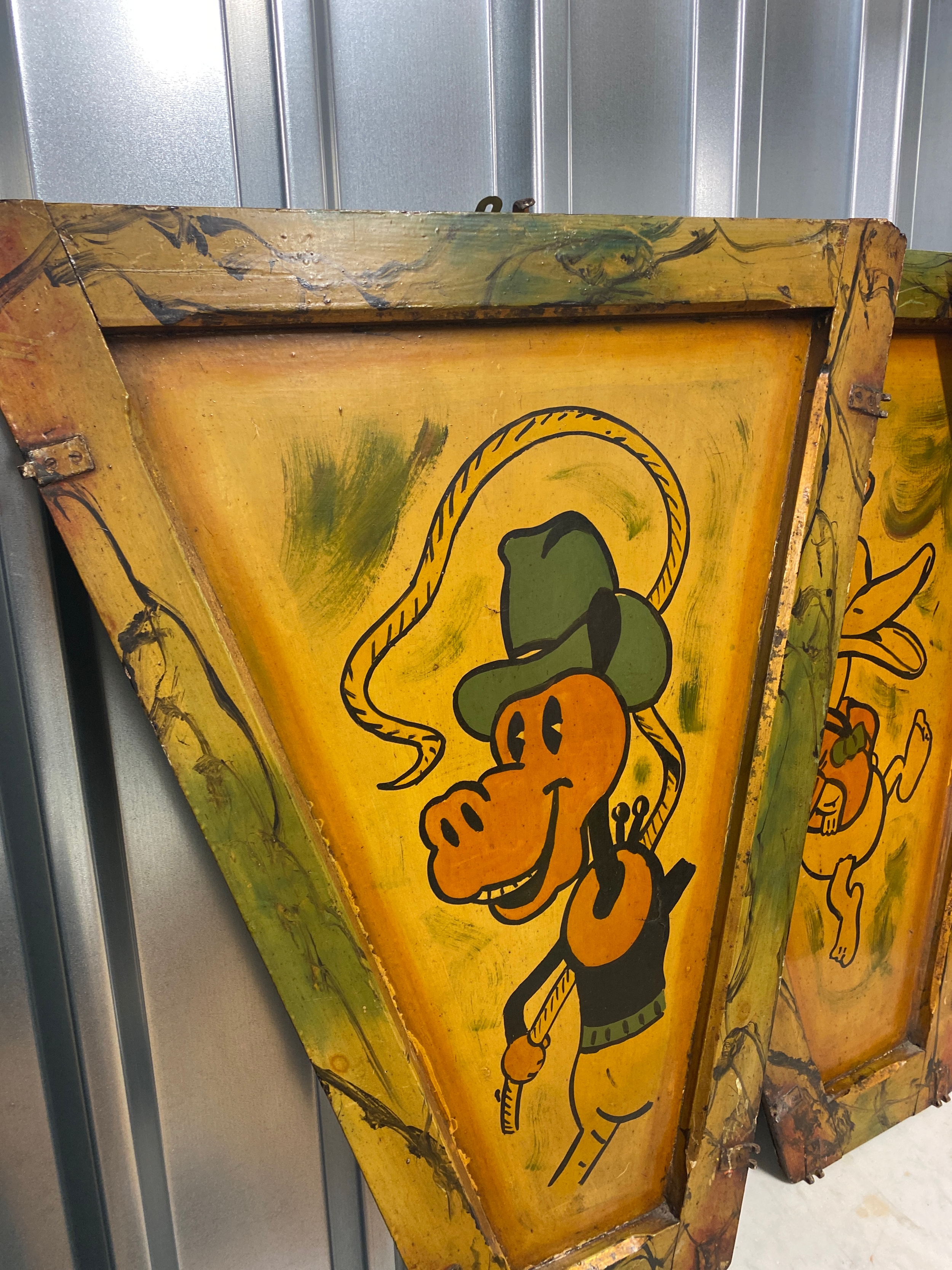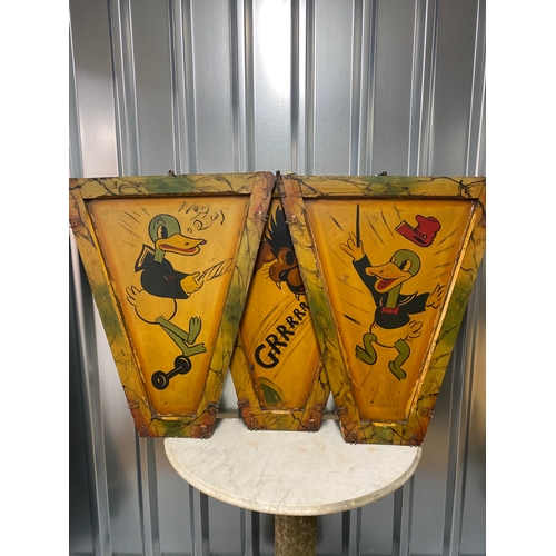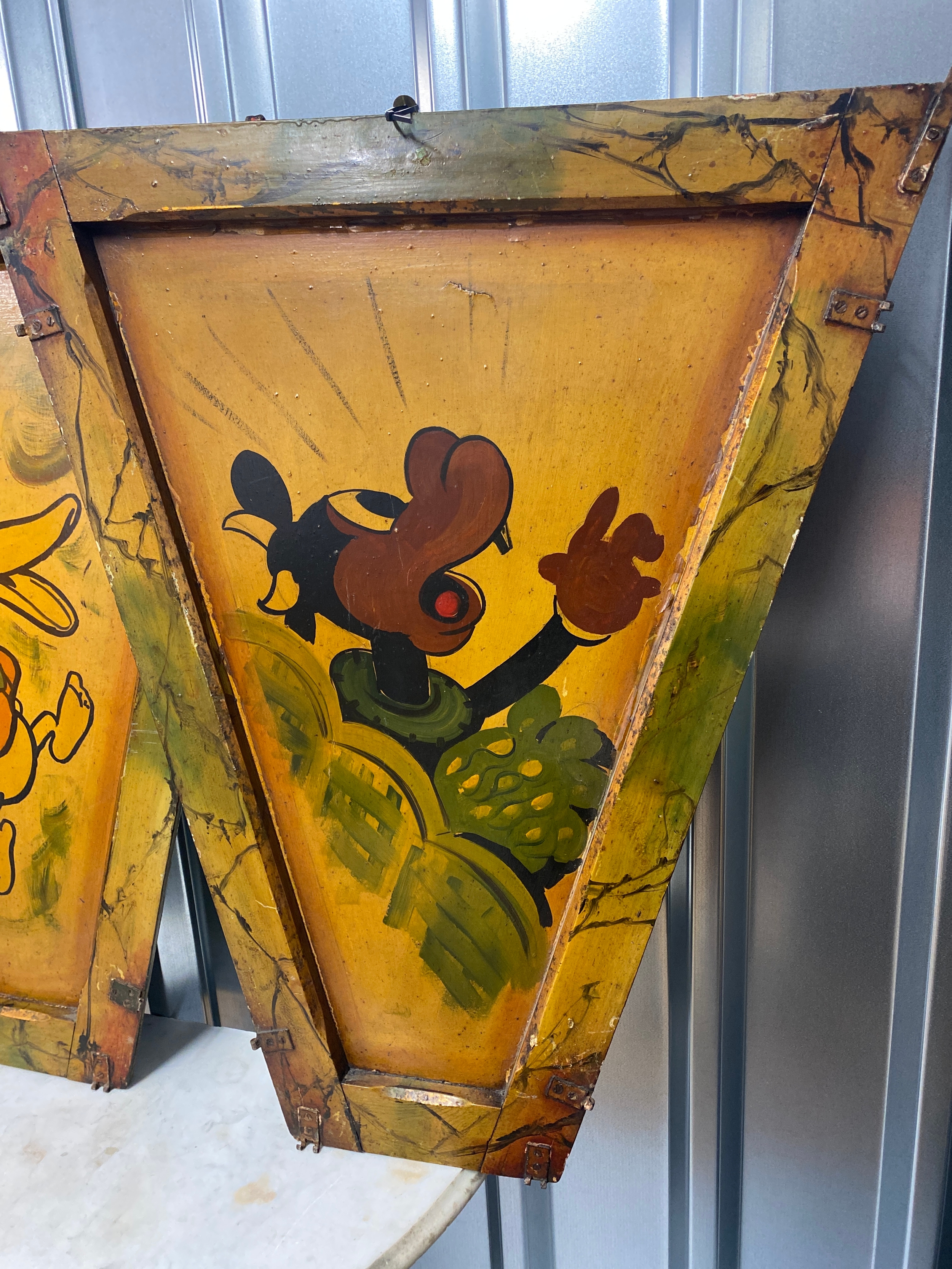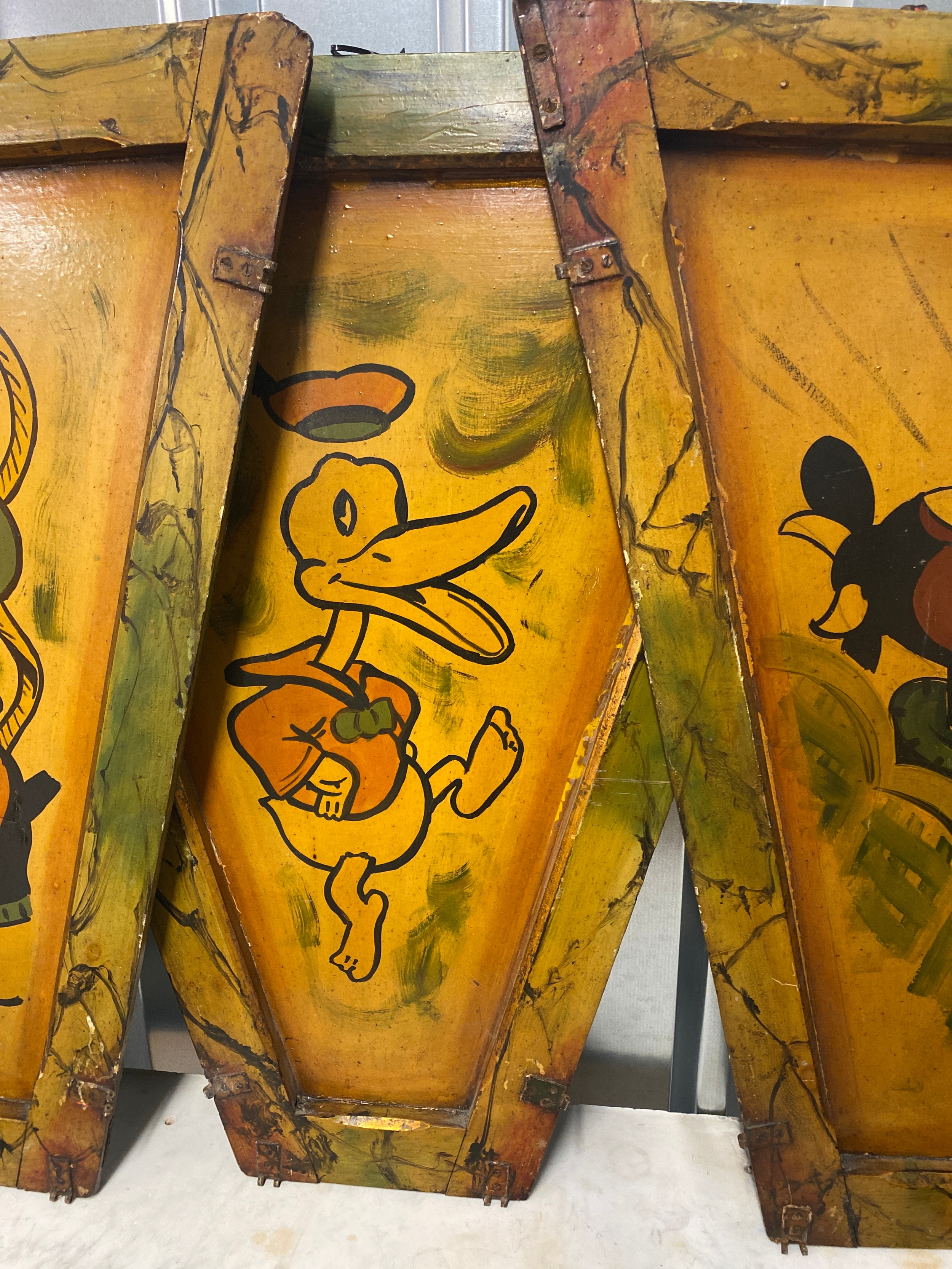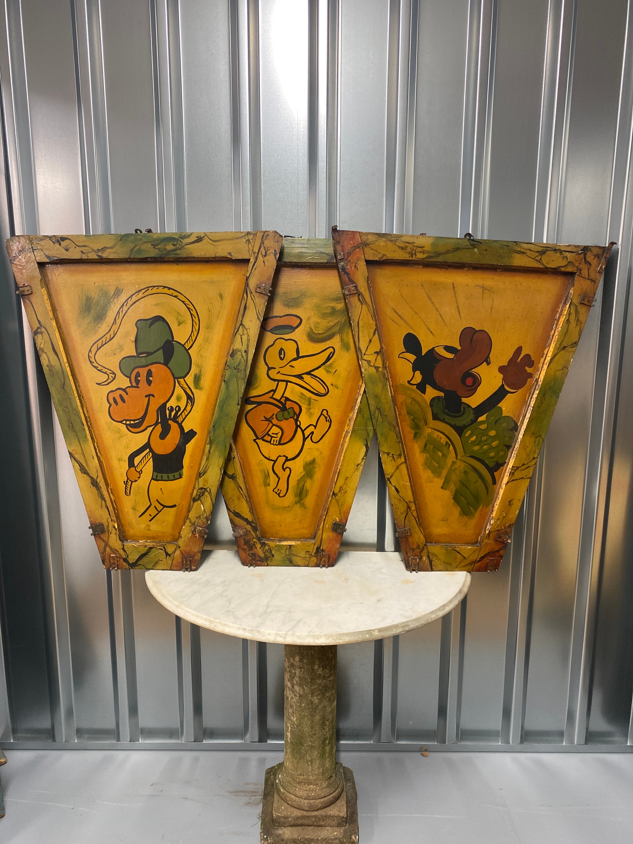 X3 Original circus/ fairground Hand-painted wooden boards featuring Disney characters Goofy, Donald Duck, and Mickey Mouse 35inch