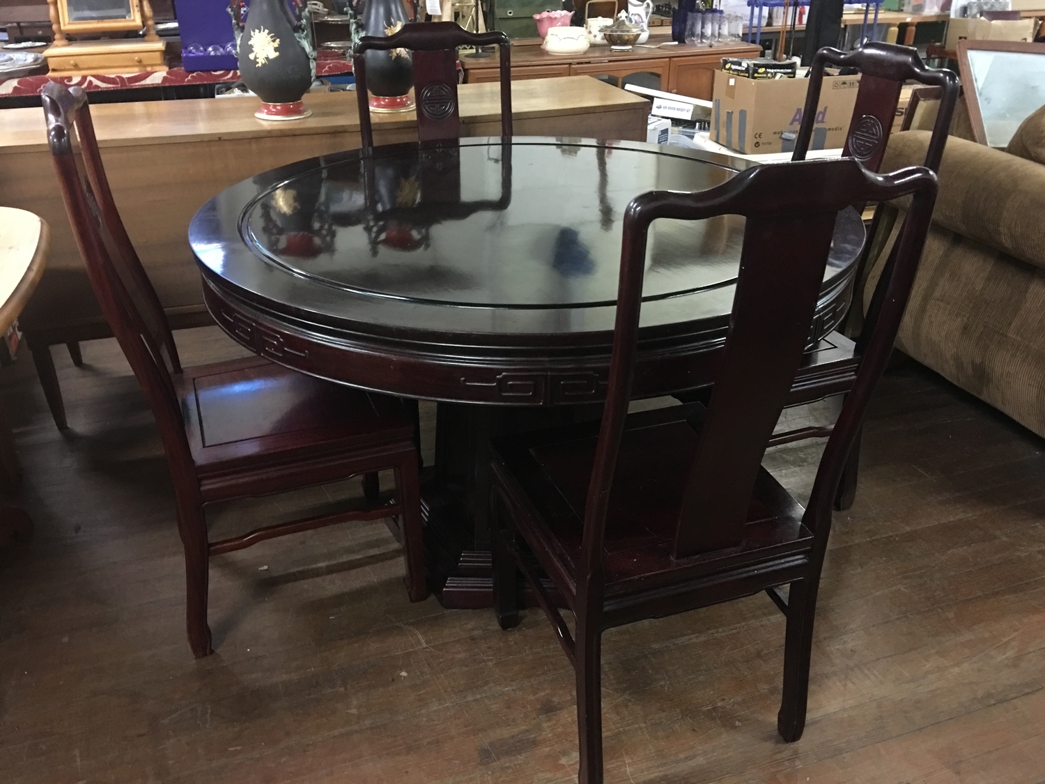 Cherry wood oriental style dinning table and 4 chairs