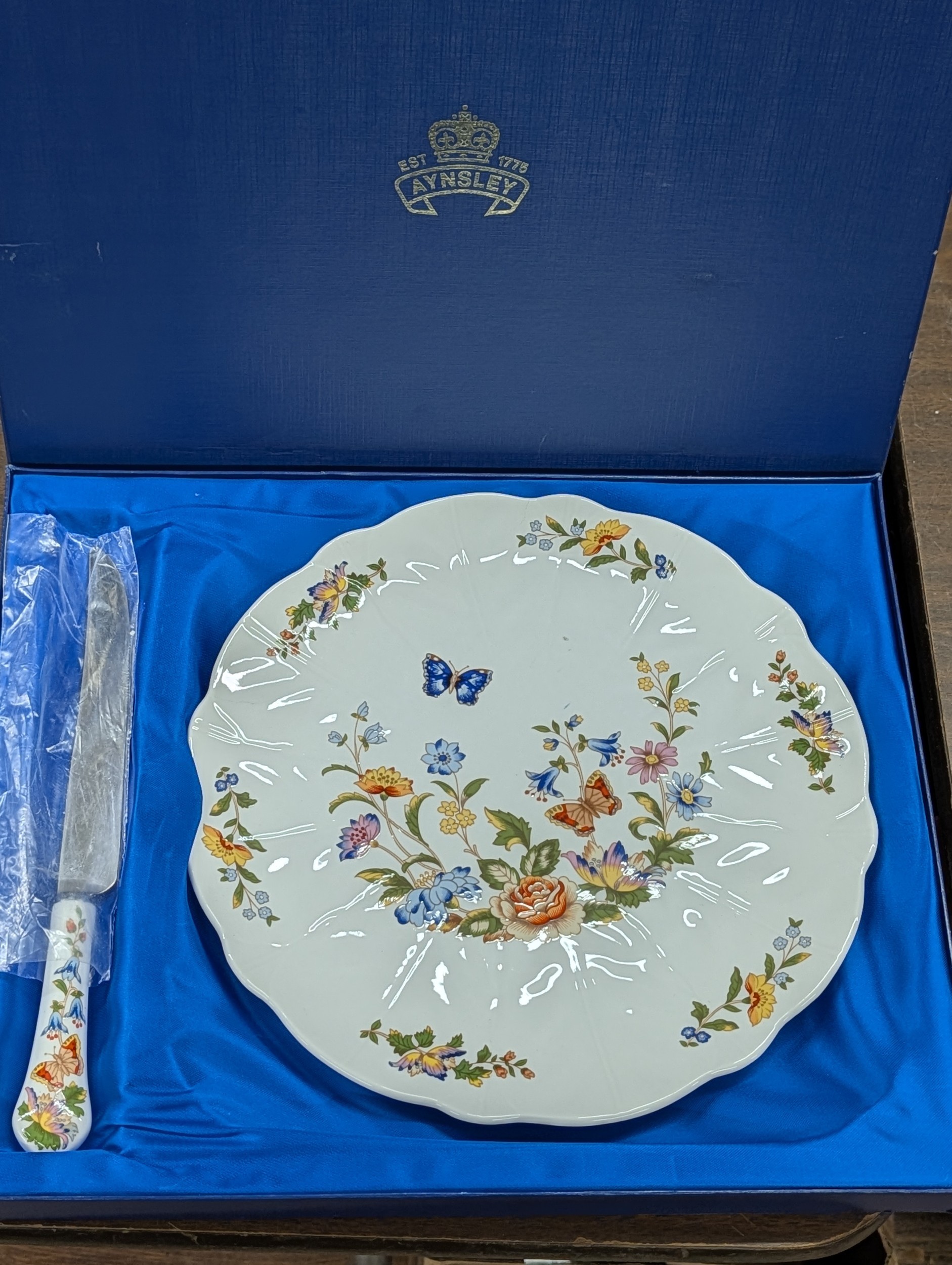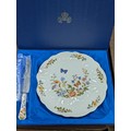 Boxed Aynsley Cottage Garden Pattern Bone China 10.5" Cake Plate and Serving Knife Set