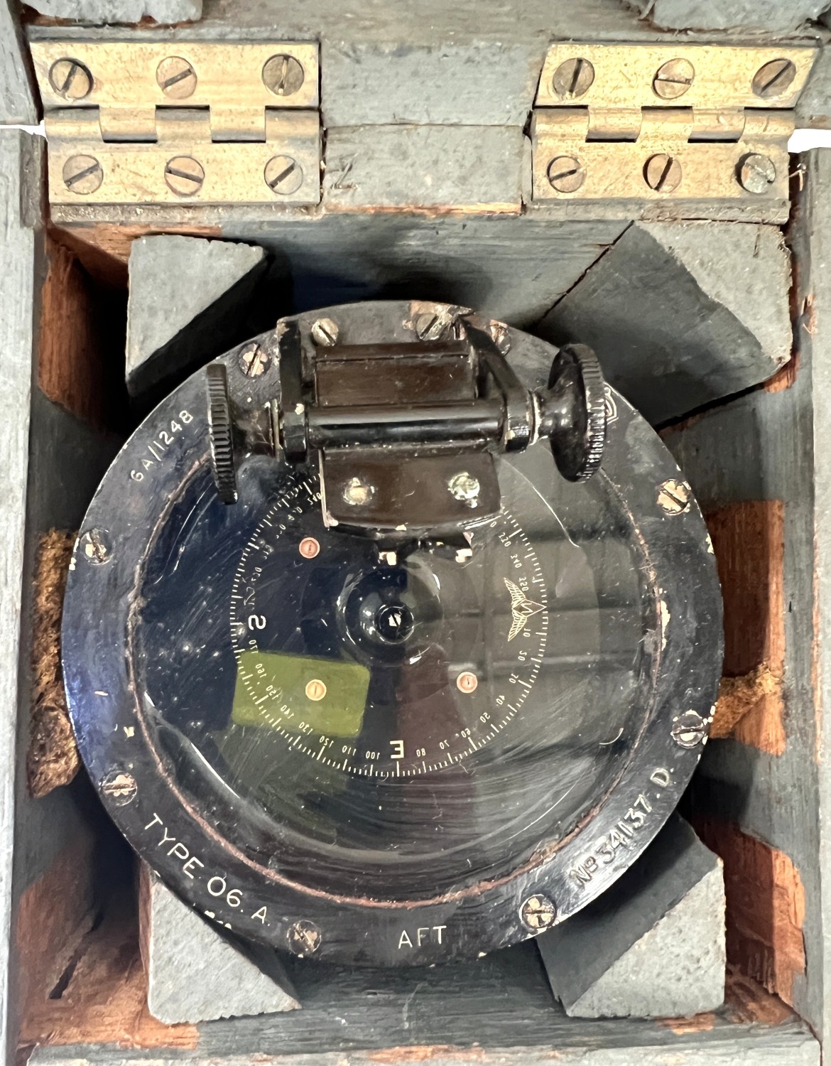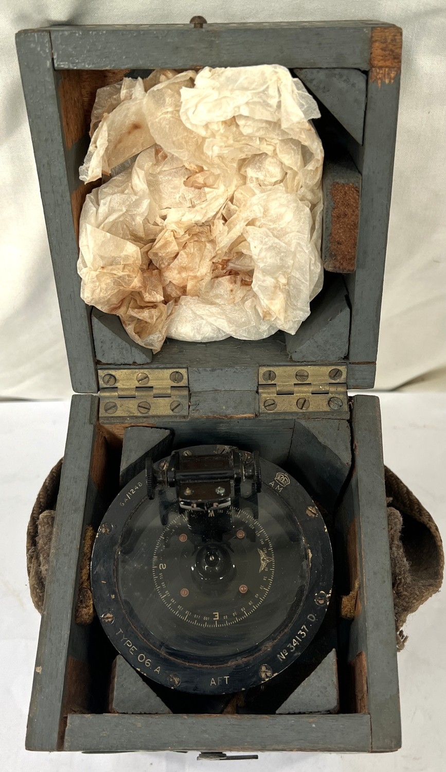 A WWII RAF '06A' hand bearing compass in original box