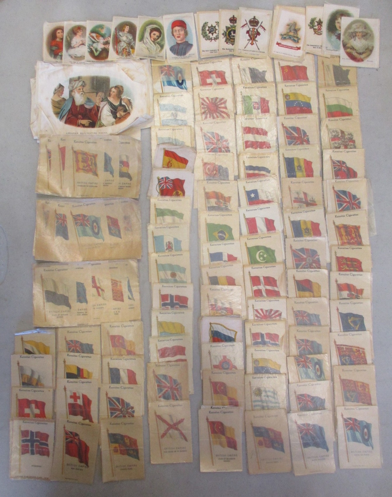 J. Wix. Loose collection of Kensitas silk cards, generally very good, with ranges of Flags of the British Empire and National Flags, some duplication. Plus smaller selection from B.D.V Cigarettes and others. Qty 100+ (T)