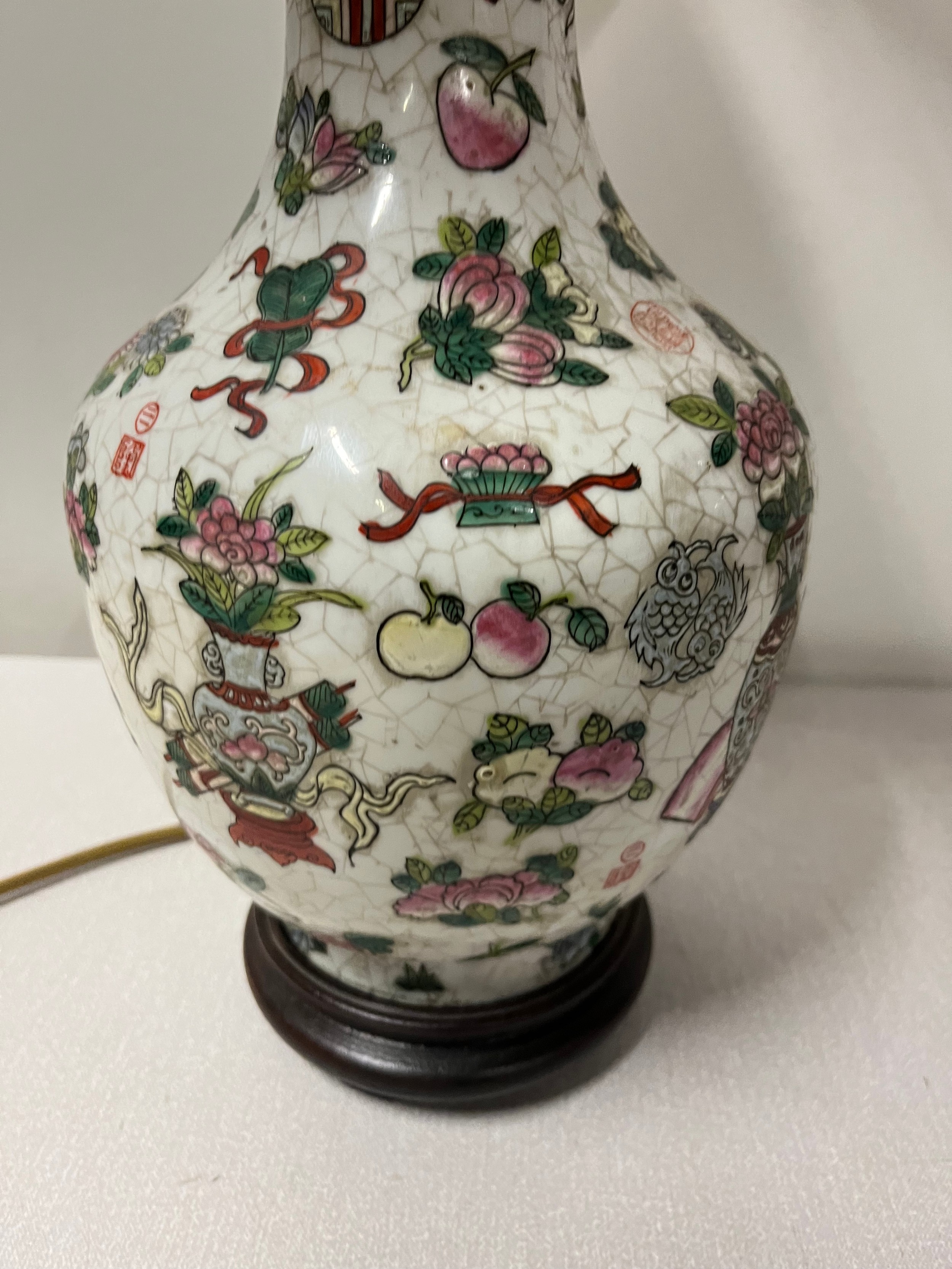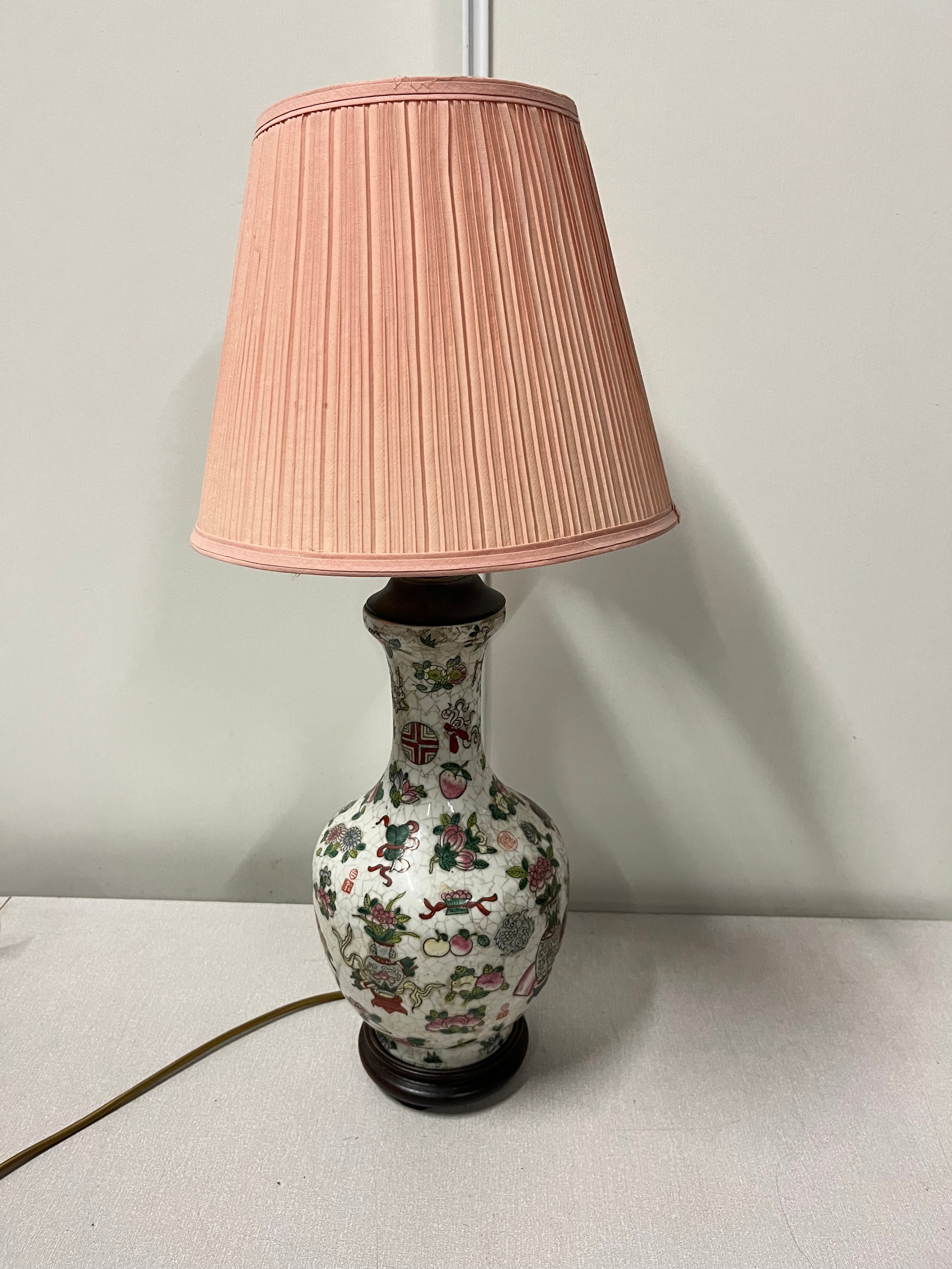 Chinese hand painted table lamp. [66cm high including shade]