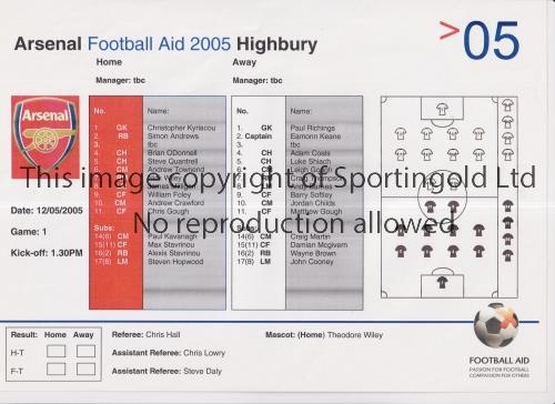 AT ARSENAL / FOOTBALL AID 2005 Single sheet programme for Game 1 12/5/2005. Good
