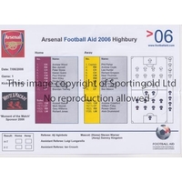 AT ARSENAL / FOOTBALL AID 2005 Single sheet programme ...