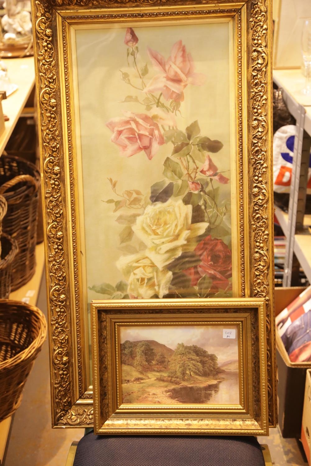 Two vintage type framed and glazed pictures one unsigned oil on canvas still life flowers. This lot is not available for in-house P&P.