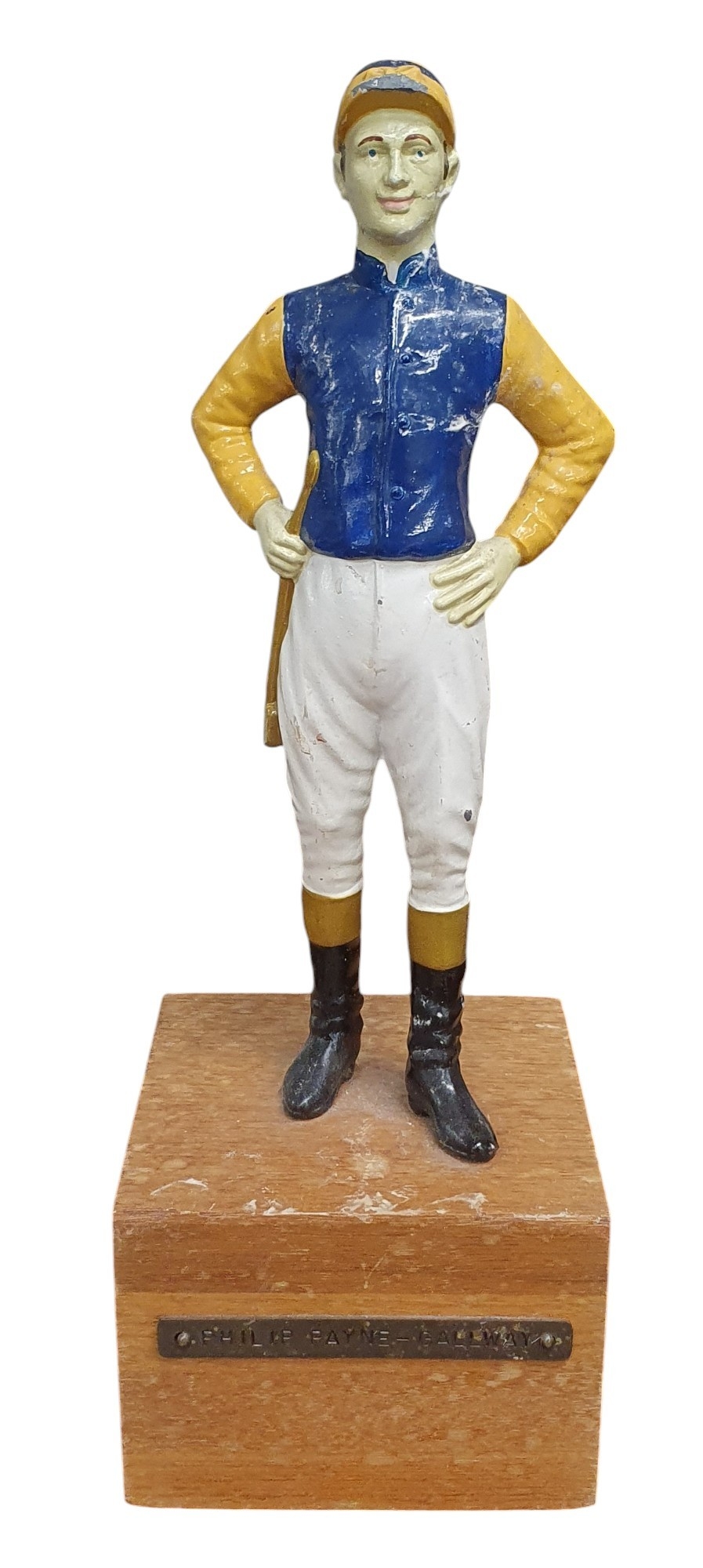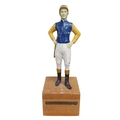 A Metal figure of Jockey Philip Pane Galloway on Timber stand.