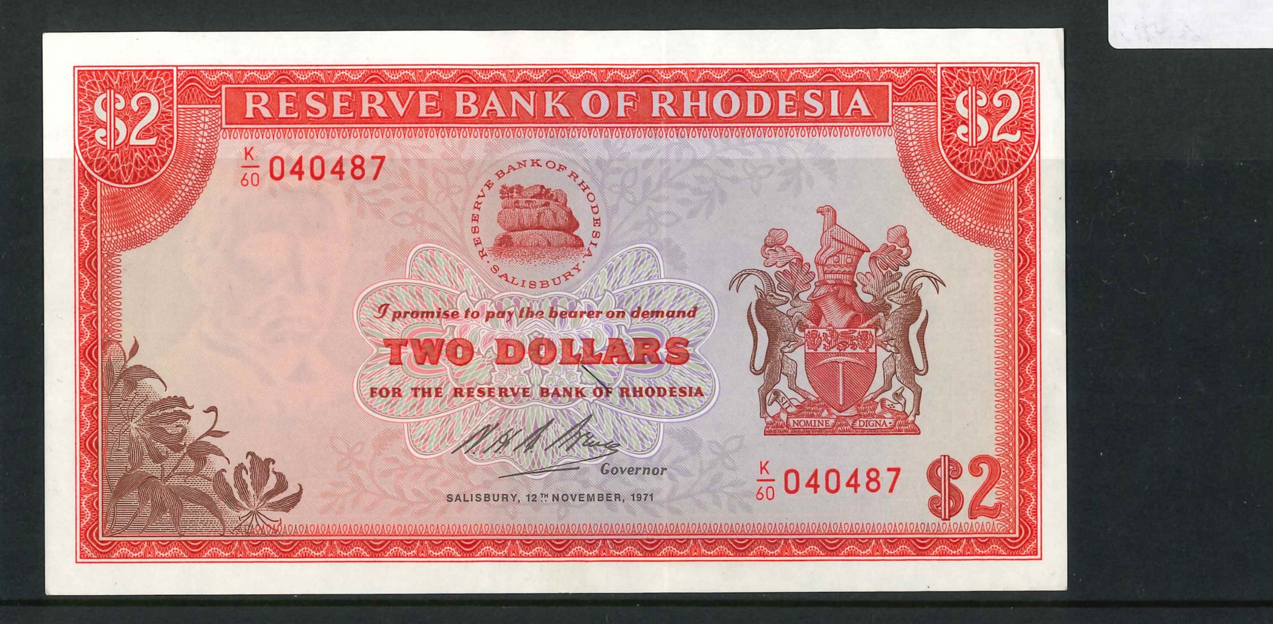 Banknotes; Rhodesia; 1971 (12 Nov.) $2, Krause 31e, VF+.