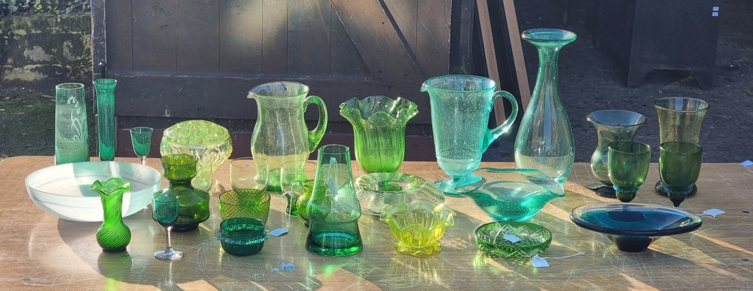 A collection of green glass.