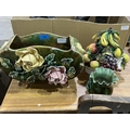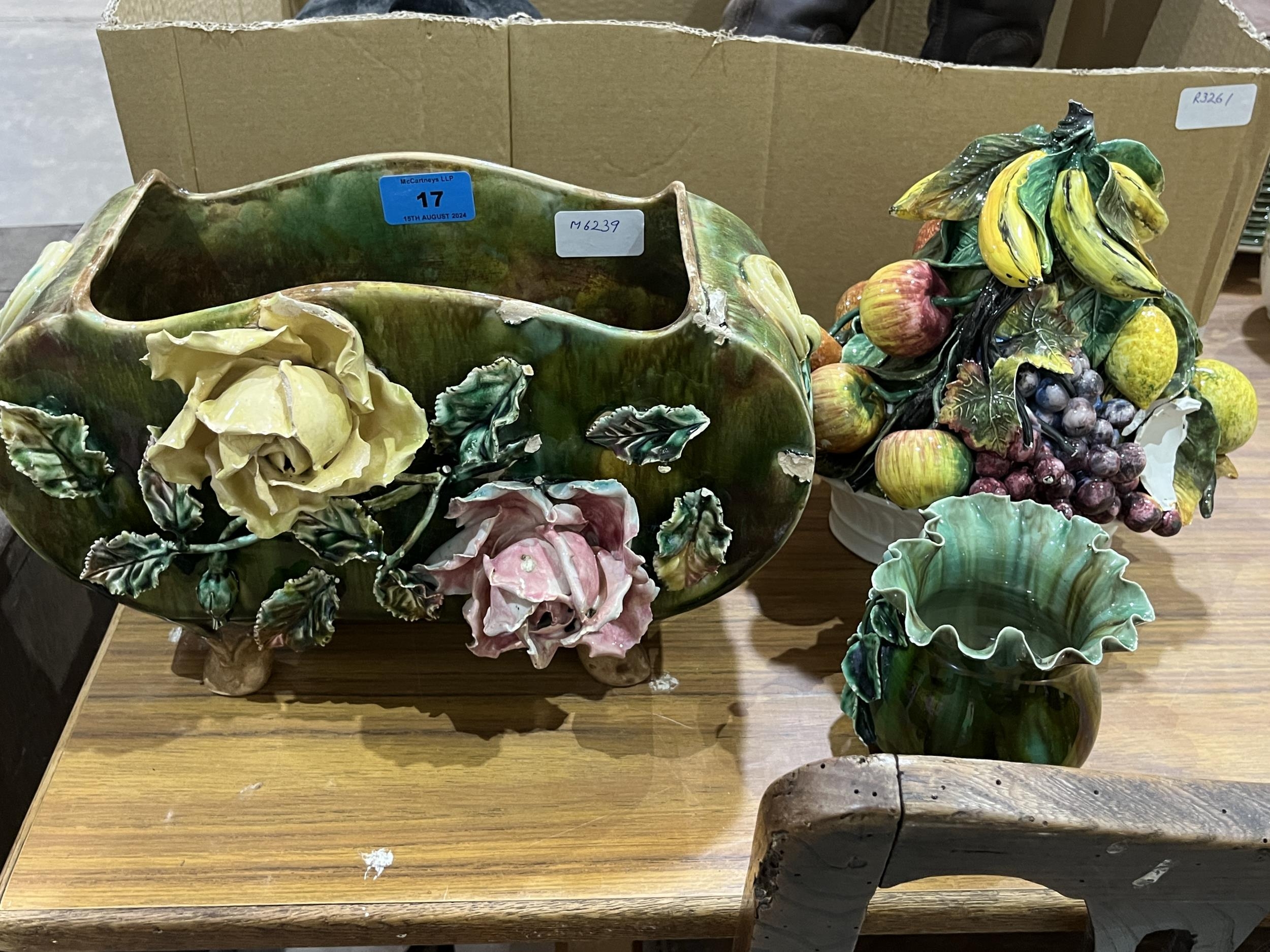 A jardiniere and two other items of majolica.
