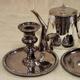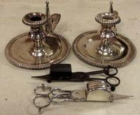 Pair of EPNS chambersticks and an EPNS teapot.