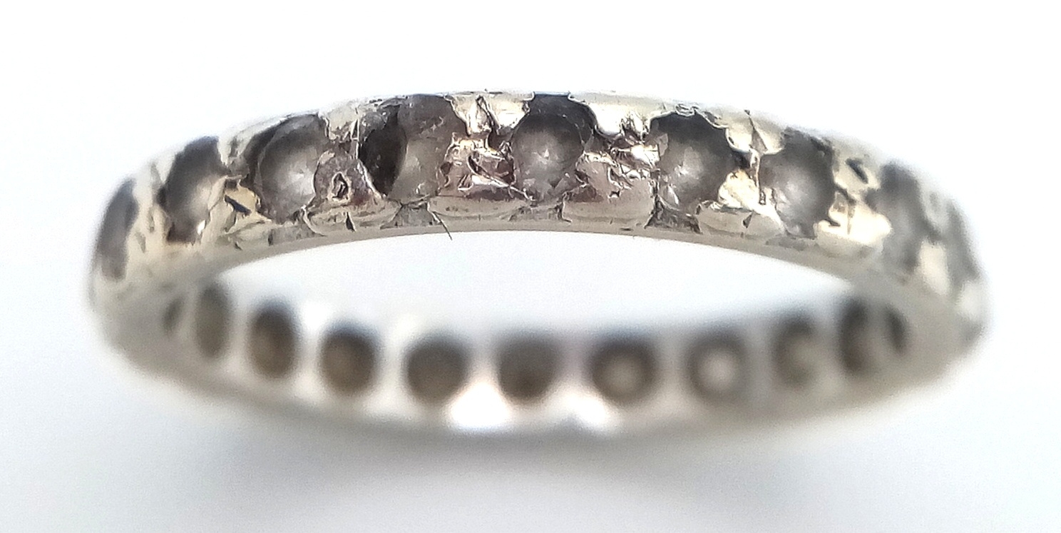 Fully hallmarked 9 CARAT WHITE GOLD ETERNITY RING. 1.73 Grams. Size K - K 1/2. Please see pictures.