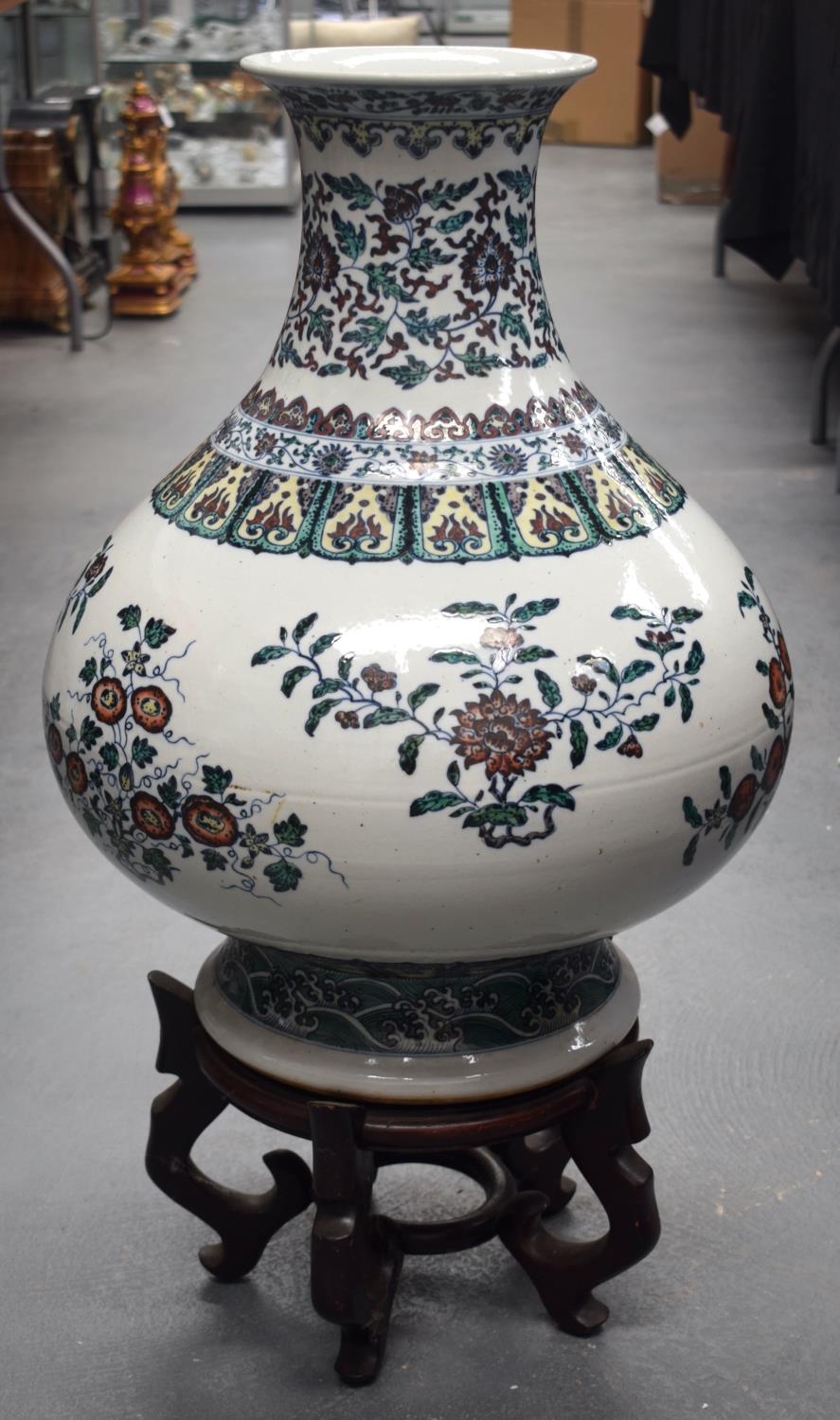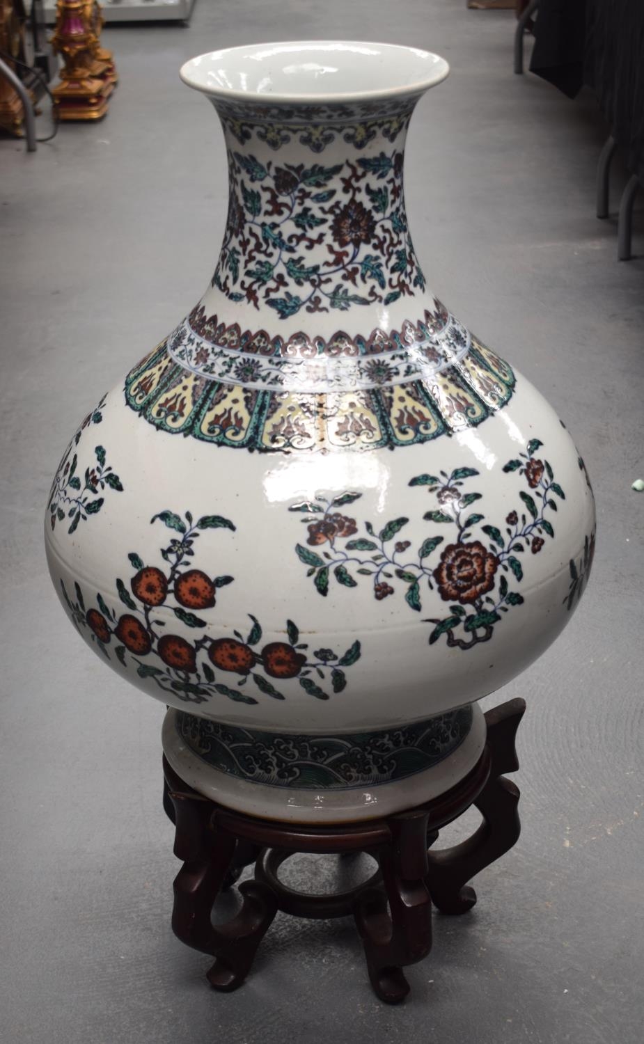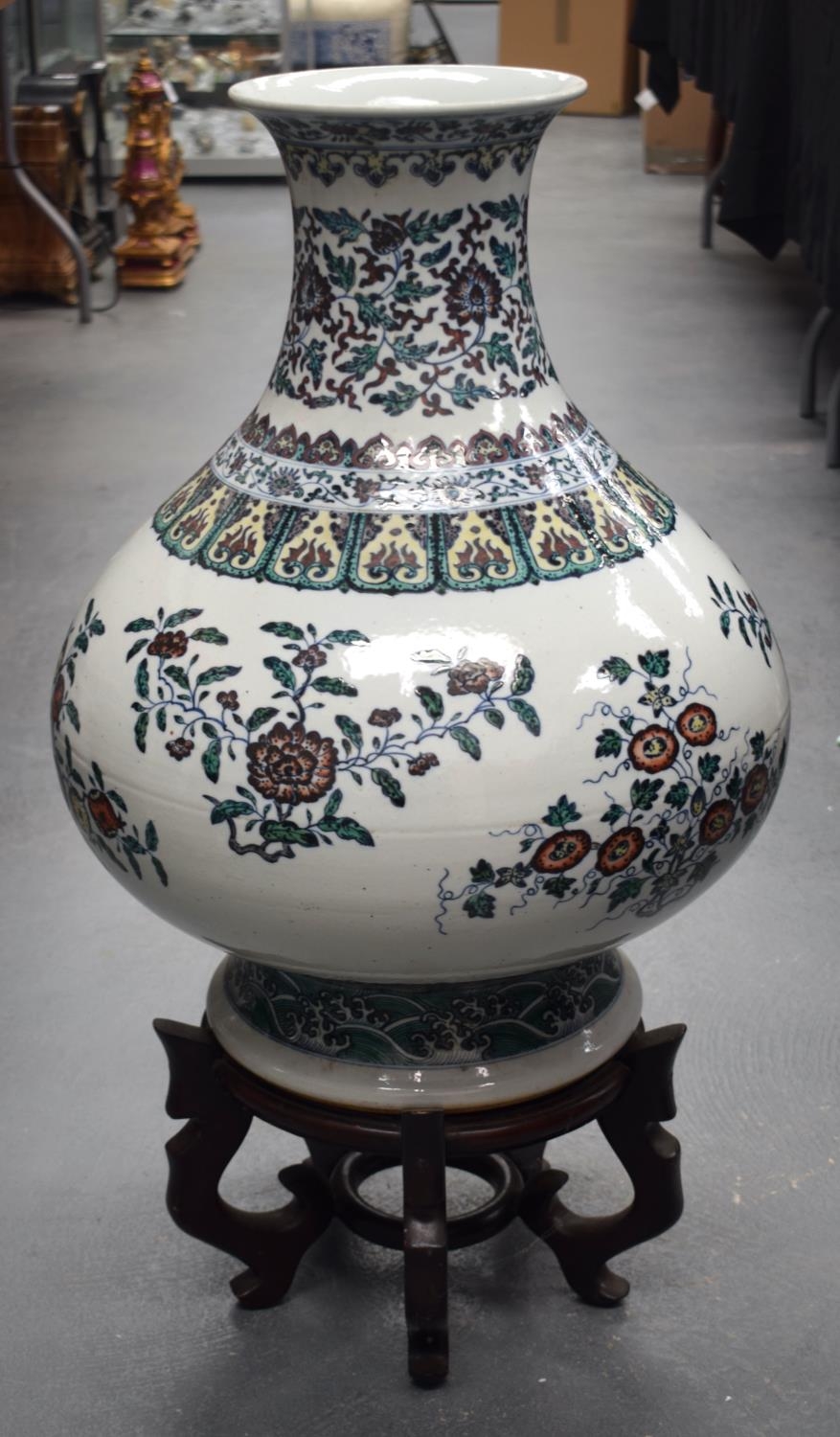 AN EARLY 20TH CENTURY CHINESE DOUCAI PORCELAIN HU VASE Late Qing/Republic, bearing Yongzheng marks to base, painted with floral sprays and vines. Vase 54 cm x 38 cm.
