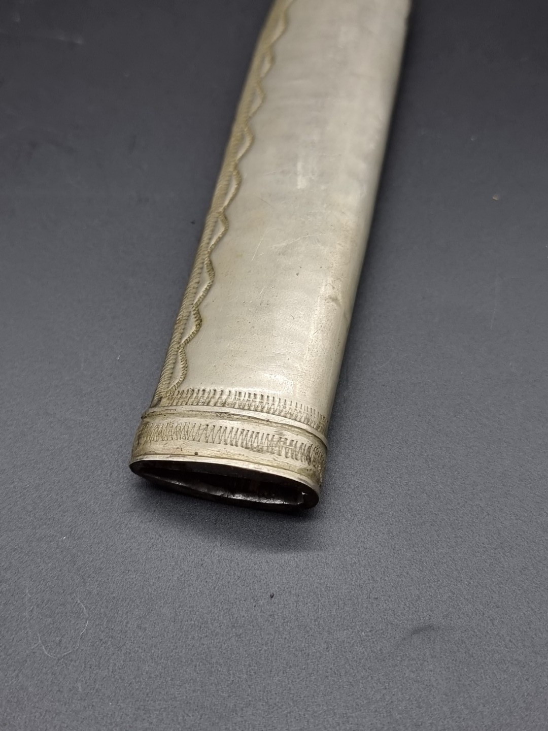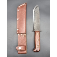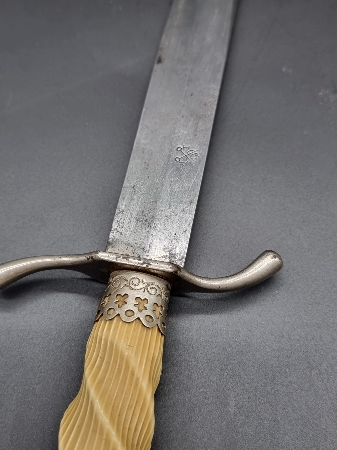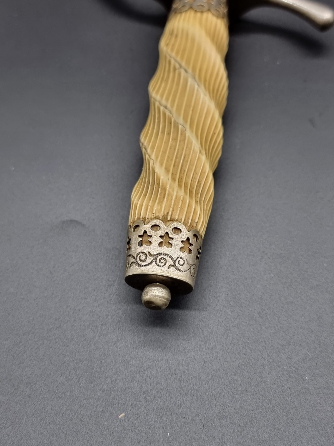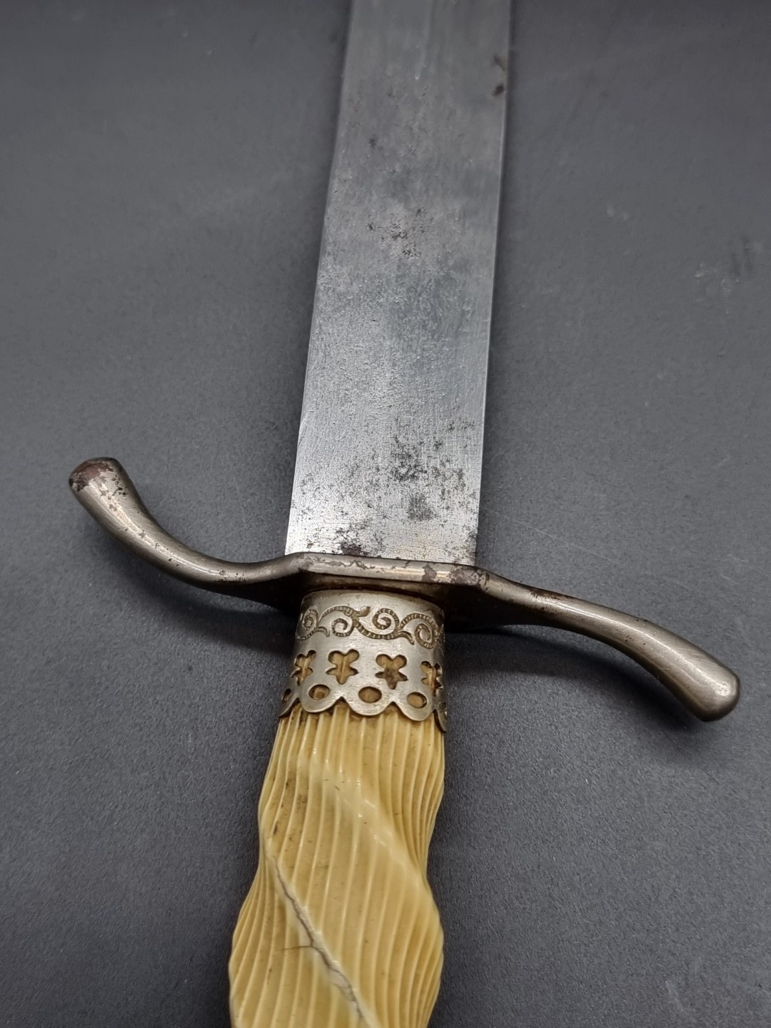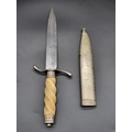 A dagger and sheath, the 14.5cm single edged blade stamped I P, with ivorine twist handle.