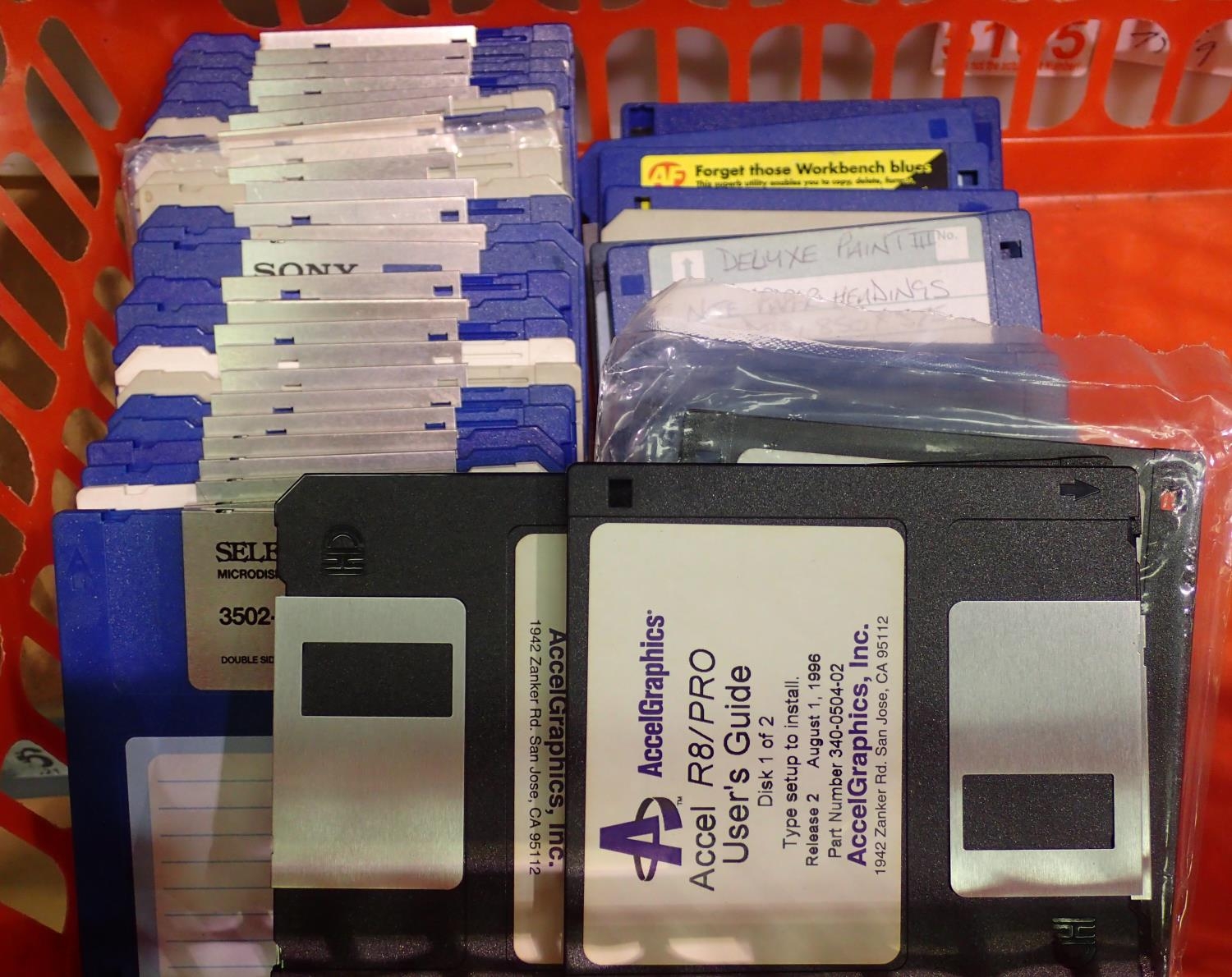 Approximately fifty 3.5 inch floppy discs (contents unknown). Not available for in-house P&P, contact Paul O'Hea at Mailboxes on 01925 659133